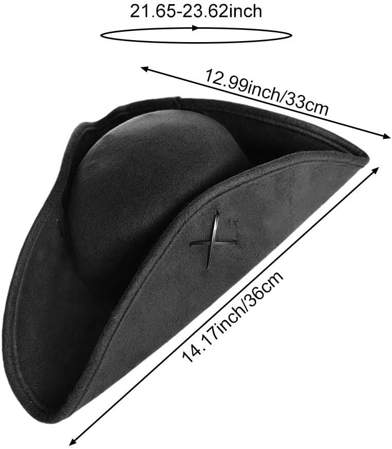 Molteplici occasioni: questo cappello pirata è popolare tra gli appassionati di pirati, gli amanti del cosplay e gli appassionati di storia, adatto a qualsiasi occasione, come festival rinascimentali, feste a tema pirata, costumi di Halloween, spettacoli teatrali scolastici e cosplay. Aggiungi anche un tocco di divertimento guardaroba. Design elegante: questo cappello presenta un classico design triangolare, dettagli intricati e una finitura in similpelle marrone anticata. Aggiungi fascino e dettagli particolari costume. Materiale: il cappello pirata a tricorno è realizzato in similpelle con un aspetto più rugoso e vissuto. Lo stile vintage ti sembrare un vero pirata e ogni ruga sembra registrare innumerevoli avventure. Dimensioni: le dimensioni del cappello pirata sono 14,17*12,99 pollici/36*33 cm, circonferenza della testa misura circa 21,65-23,62 pollici, un buon regalo per maggior parte degli adulti e dei bambini a cui piacciono i pirati. Confezione contiene: Riceverai il cappello pirata in finta pelle, ideale per un costume di Halloween, anche festa di compleanno in maschera o una festa in maschera " cappelli".