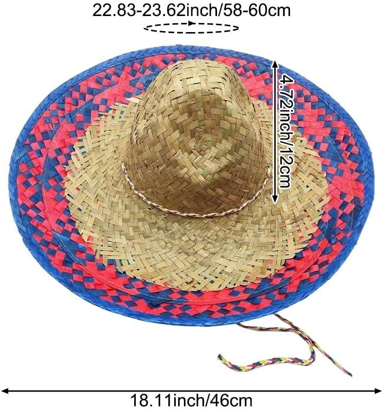 Materiale di qualità: questo grande cappello messicano è realizzato in paglia di alta qualità, robusta, durevole, traspirante, leggera e non facile deformare. Protezione solare: il nostro sombrero con ampia tesa ti terrà fresco ed elegante sotto il sole, perfetto per viaggi, spiaggia, passeggiate e molte altre attività all'aperto. Design raffinato: questo cappello di paglia messicano è caratterizzato una tesa larga e un design in paglia naturale, ed è inoltre impreziosito squisiti bordi colorati. Dettagli sulle dimensioni: le dimensioni di questo sombrero messicano sono 18,11*4,72 pollici/ *12 cm, circonferenza del sombrero è 22,83-23,62 pollici/58-60 cm. Ampia applicazione: che tu stia organizzando una festa a tema messicano o una fiesta party, questo sombrero è l'aggiunta perfetta outfit.