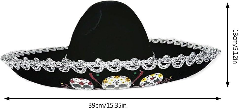 Il motivo del teschio è un simbolo classico e di tendenza, perfetto per creare un look spettrale e cool, molto popolare nella cultura moderna. Realizzato in poliestere 100%, è leggero e resistente, garantendo un utilizzo a lungo termine. Decorazione a treccia conferisce un tocco scintillante e accattivante, facendo sì che indossa si distingua tra folla. Adatto a vari eventi come Halloween, Carnevali, feste a tema e attività di cosplay, consentendoti di immergerti completamente nell'atmosfera festiva Il design a tesa larga non protegge dall'ombra, aggiunge anche un tocco di stile, in con le attuali tendenze della moda.
