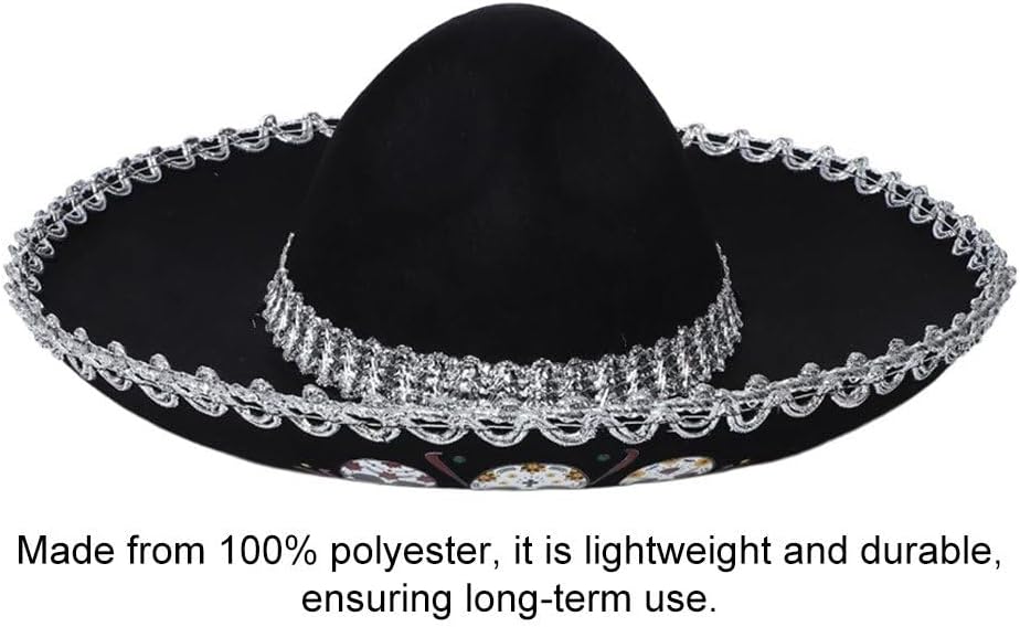 Il design a tesa larga non protegge dall'ombra, aggiunge anche un tocco di stile, in con le attuali tendenze della moda. Decorazione a treccia conferisce un tocco scintillante e accattivante, facendo sì che indossa si distingua tra folla. Adatto a vari eventi come Halloween, Carnevali, feste a tema e attività di cosplay, consentendoti di immergerti completamente nell'atmosfera festiva Il motivo del teschio è un simbolo classico e di tendenza, perfetto per creare un look spettrale e cool, molto popolare nella cultura moderna. Realizzato in poliestere 100%, è leggero e resistente, garantendo un utilizzo a lungo termine.