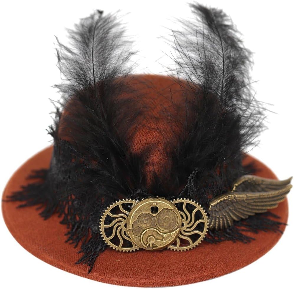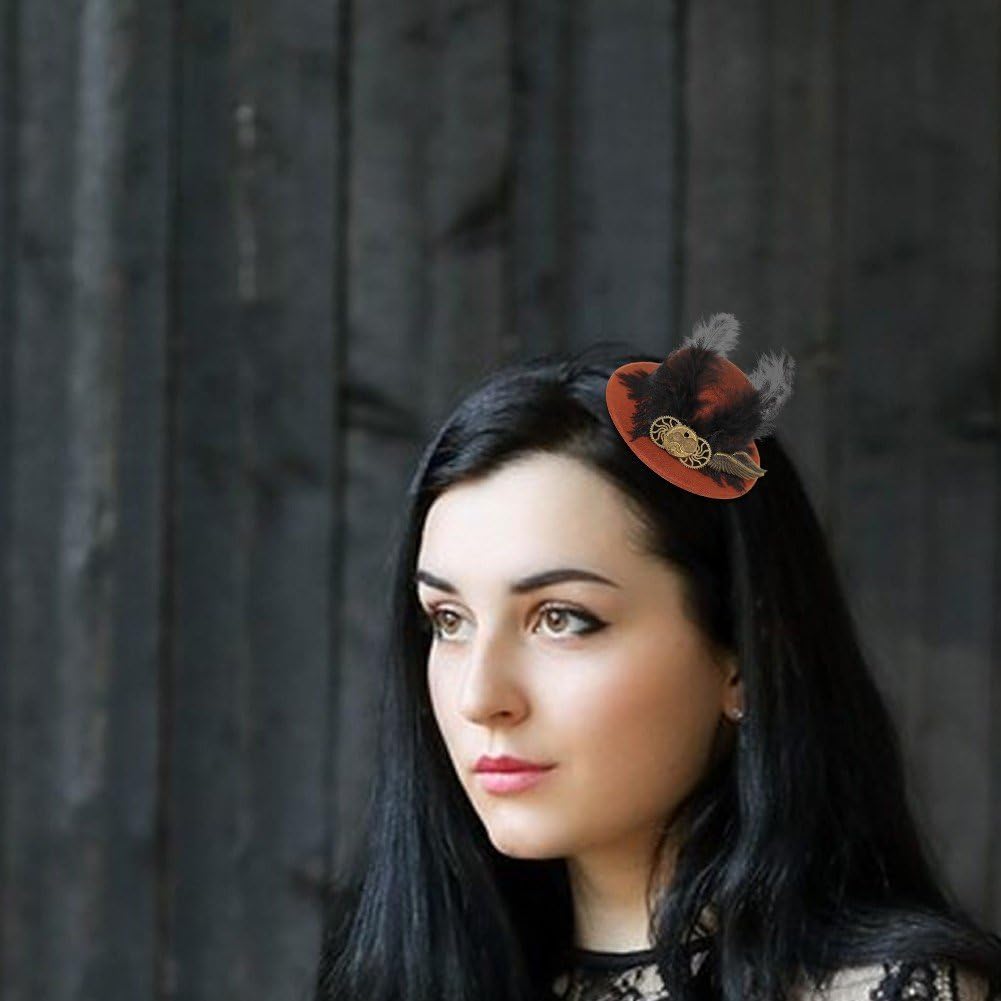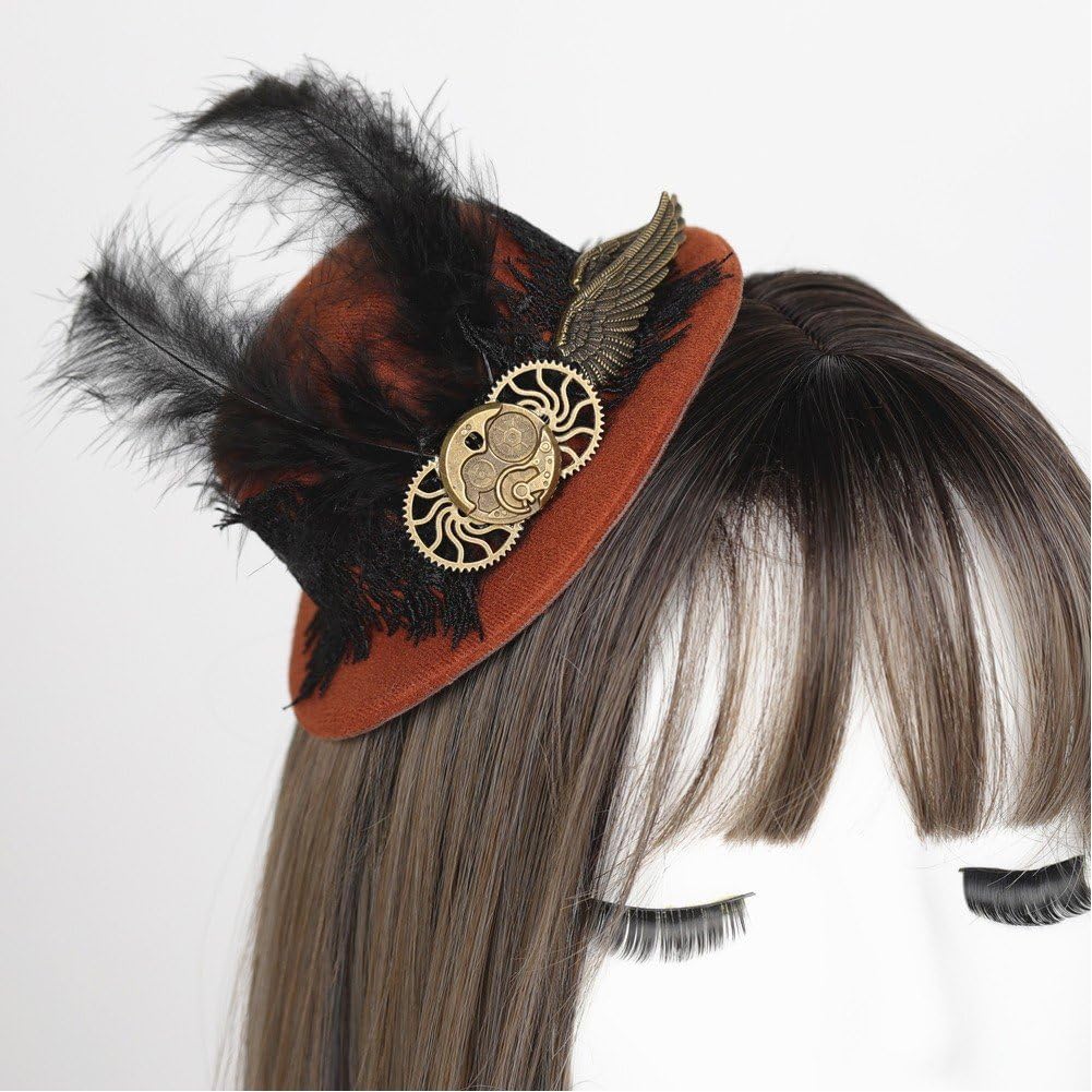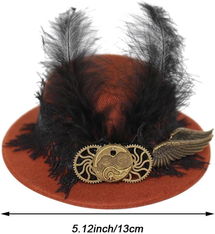 L'accessorio per costume mini cappello in stile vittoriano e le parti del cappello sono ben incollati e sono dotati di fermagli per incorporati che ti consentono di indossarlo senza scivolare . Cappello vintage gotico; Accessorio per copricapo mini topper steampunk occidentale. Cappello Steampunk in feltro, questo cappello è resistente e fresco, dotato di piume/ingranaggi. Abbina i tuoi abiti steampunk per un matrimonio steampunk, una festa in maschera di Capodanno, una festa a tema, un carnevale vintage, una buona scelta come regalo di Natale. Il cappello piccolo ti dà il look iconico, perfetto per i tea party o i temi del Cappellaio con gli accessori della Regina di Cuori