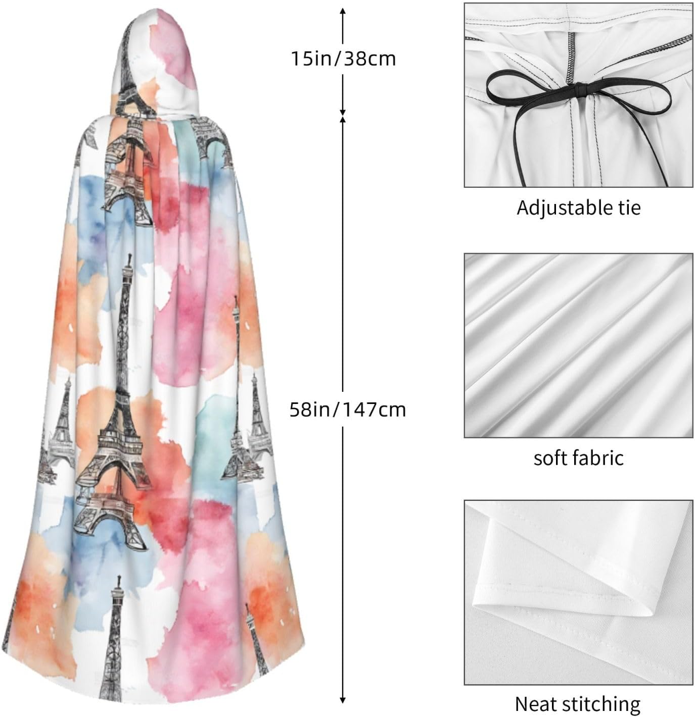 Cappotto con cappuccio per Halloween, mago di Halloween, mantello con cappuccio, per cosplay, per adulti, uomini, donne, vacanze, accessori per feste, vestiti, costume – Tour francese Parigi