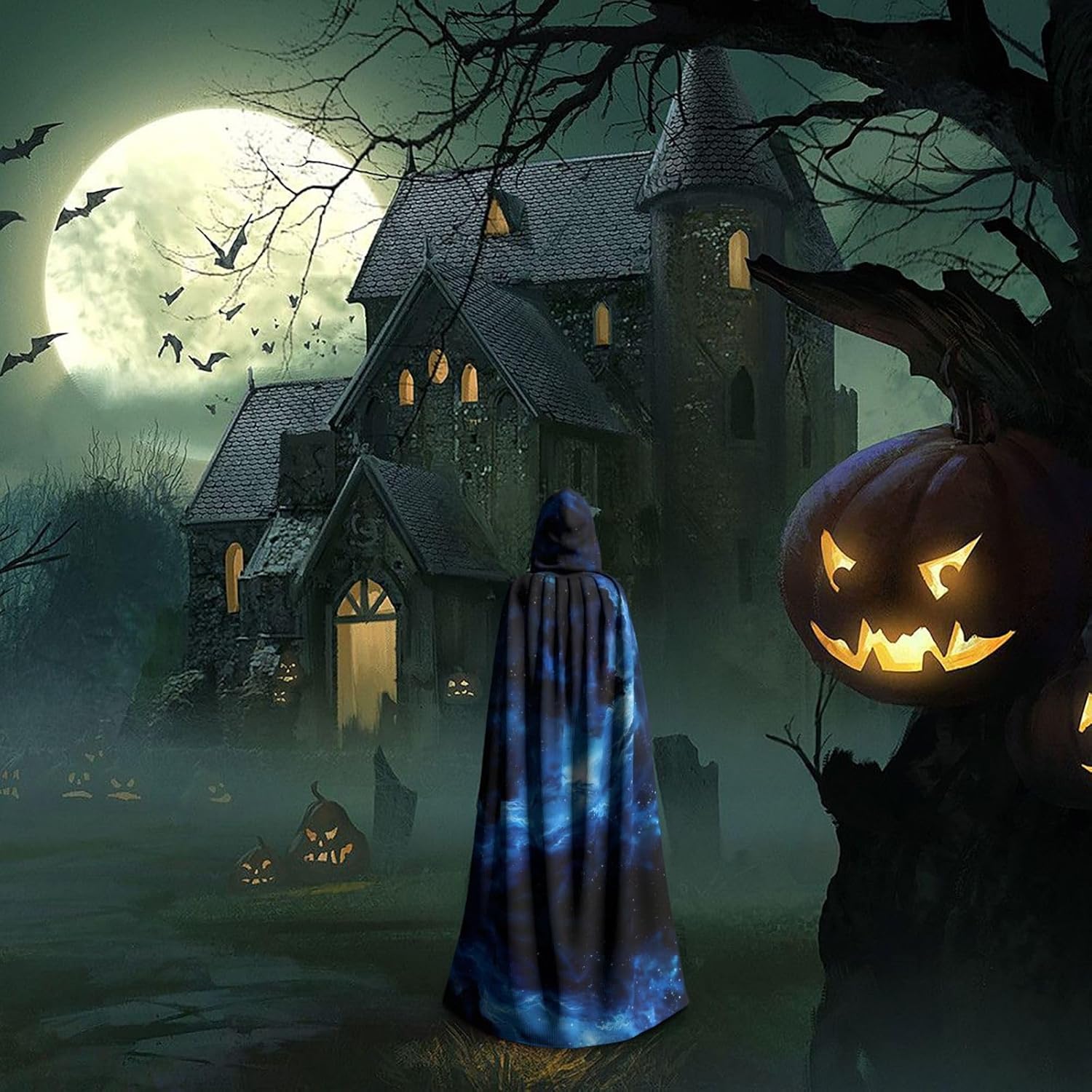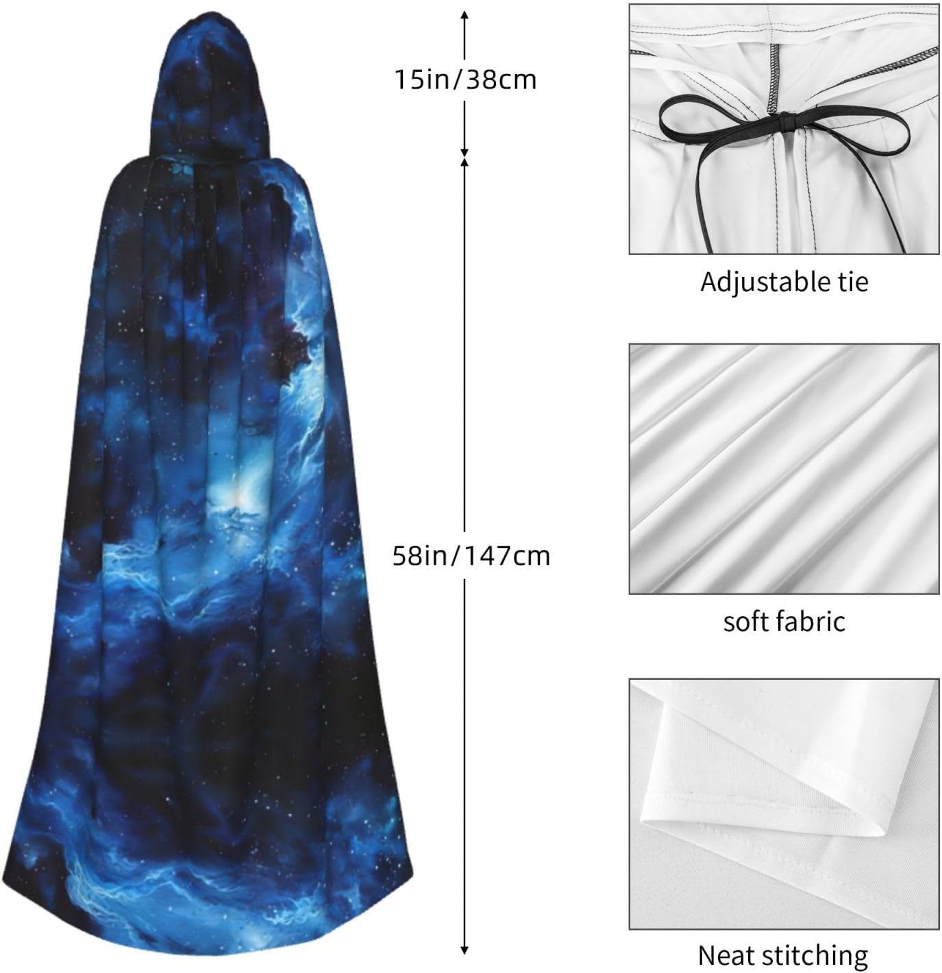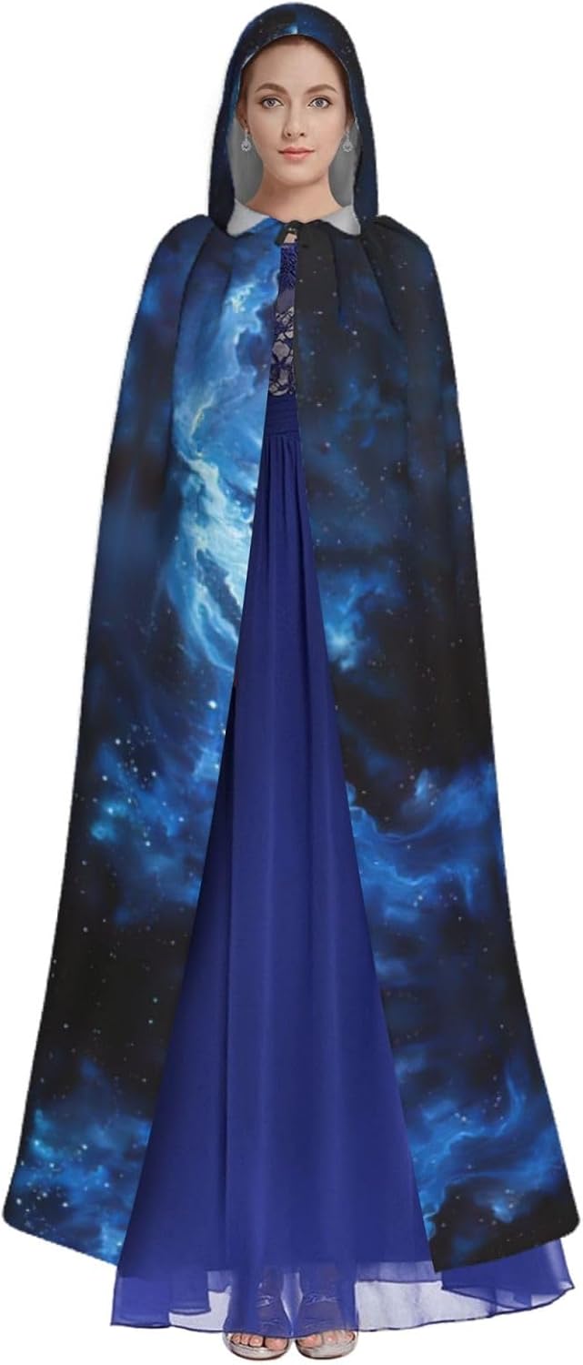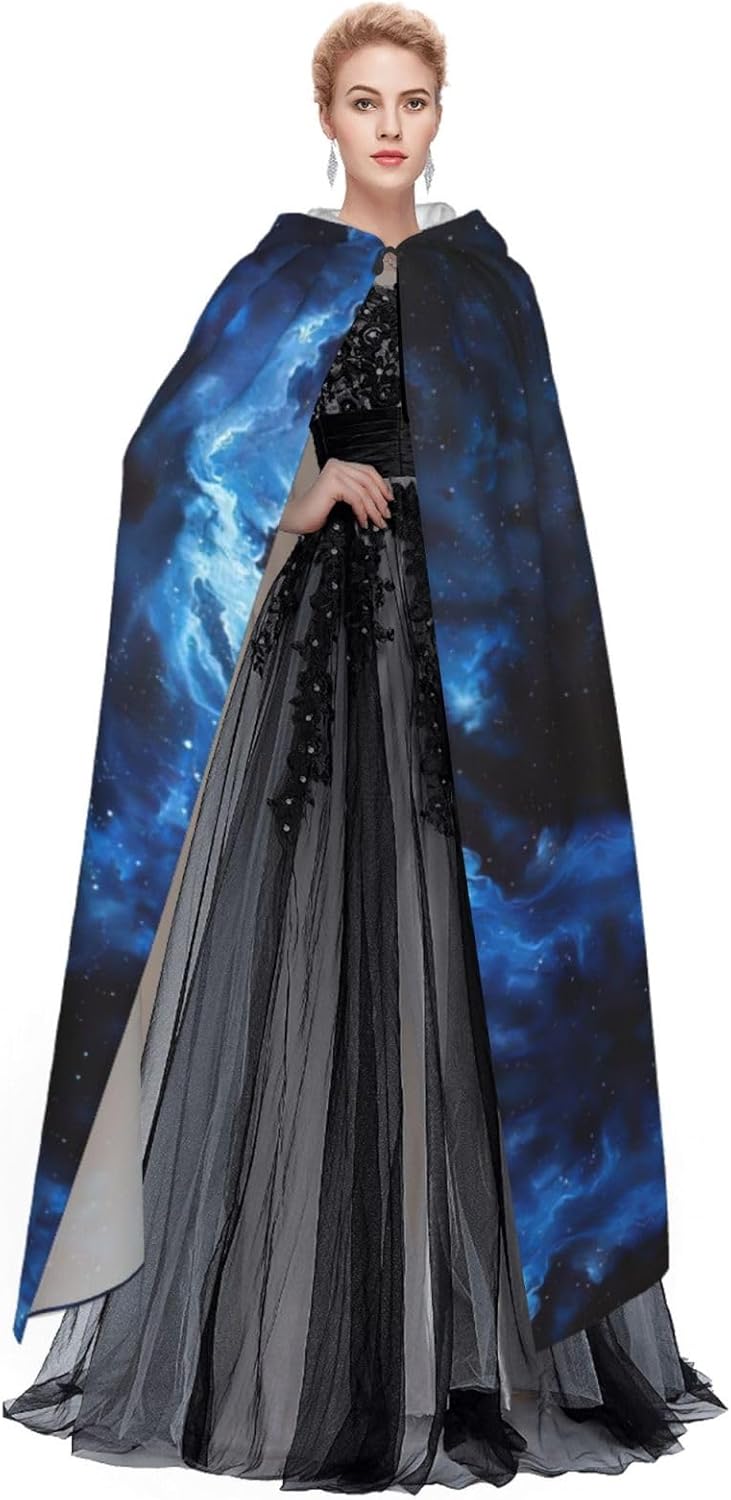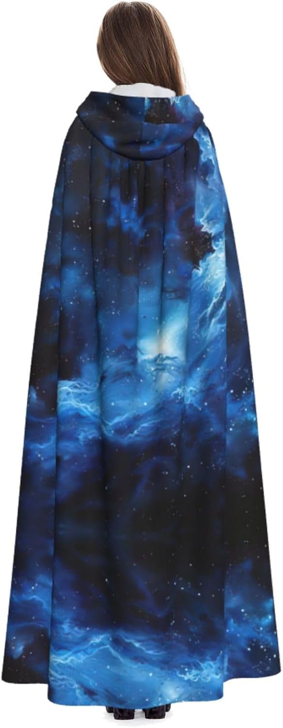 Il design senza cerniera, abbinato a un grande mantello con cappuccio e cravatta al collo, migliora il tuo mistero mantenendoti comodo con il suo tessuto non prurito. Con una lunghezza di 147 cm, larghezza di 154 cm e un'altezza del cappuccio di 38 cm, il nostro mantello con cappuccio con stampa galassia blu offre una copertura completa, assicurandoti di distinguerti in ogni occasione. Vari eventi come Halloween, cosplay, costumi da palcoscenico, feste a tema, balli, convegni di fumetti e molto altro ancora, il nostro mantello è versatile e conveniente. Facile da mantenere e di lunga durata, il nostro mantello con cappuccio con stampa galassia blu è lavabile in lavatrice e lavabile a mano. Con un design neutro, il nostro mantello è perfetto per uomini e donne.