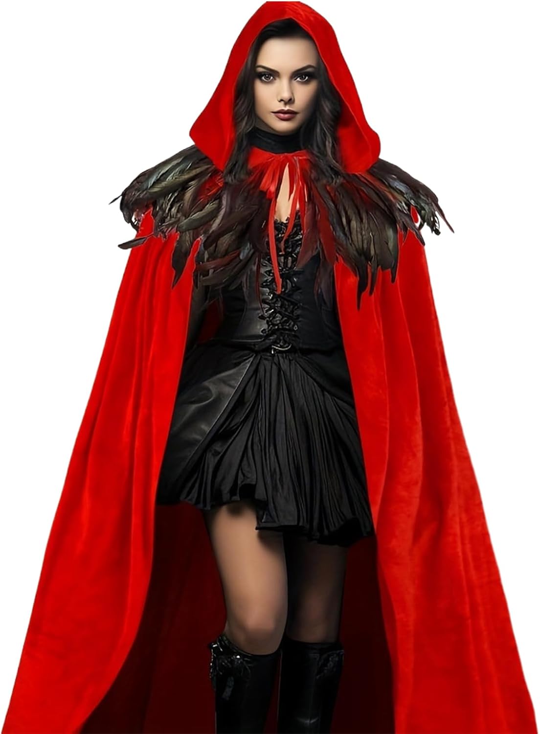 Cappuccio con Mantello da Donna | Costume Mantello Rinascimentale | Vestito in Velluto per Adulti Uomini Donne Streghe Feste Medievali Cosplay