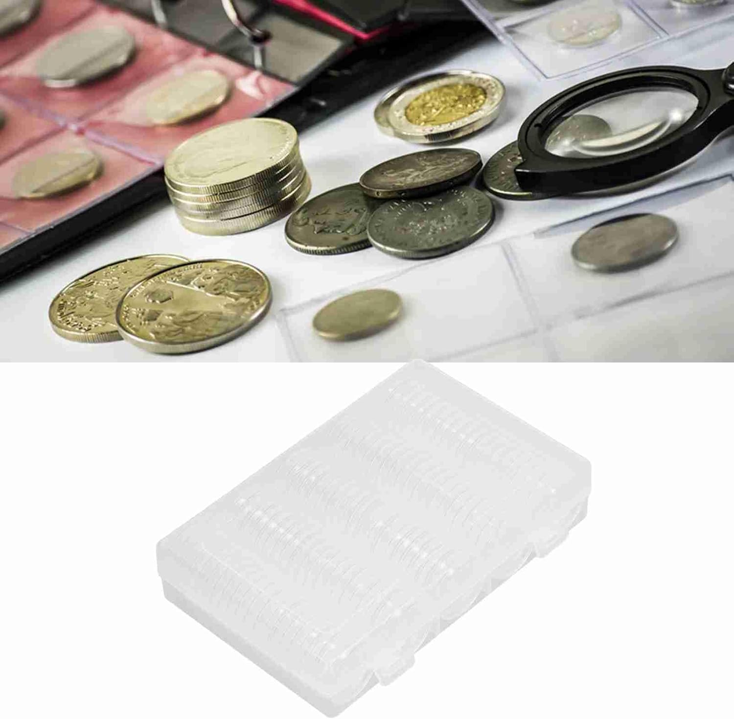 SIGILLATURA PERFETTA: la custodia trasparente per monete facilita la conservazione e lo scambio di monete, coperchio e base si incastrano saldamente, antipolvere e antiossidante, proteggono il contenuto in modo sicuro. ABBASTANZA QUANTITÀ: il set di protezioni per monete include 100 custodie per capsule per monete, 1 scatola di plastica e 100 guarnizioni in schiuma EVA abbinate, che proteggono le tue monete preferite. DIMENSIONI DA 17 A 30 MM: custodia per la raccolta di monete con 5 diverse specifiche per 17 mm, 20 mm, 25 mm, 27 mm e 30 mm, adatta per conservare la maggior parte dei tipi di monete. PASTIGLIE IN SCHIUMA EVA: la scatola di immagazzinaggio è facile da separare gli anelli di schiuma dai cuscinetti in schiuma EVA in base alle dimensioni della tua moneta per evitare che le monete scivolino e si graffino. FACILE DA APRIRE: ogni porta capsule per monete ha un'apertura a mezzaluna sul bordo esterno, che si apre in modo più comodo e senza sforzo.