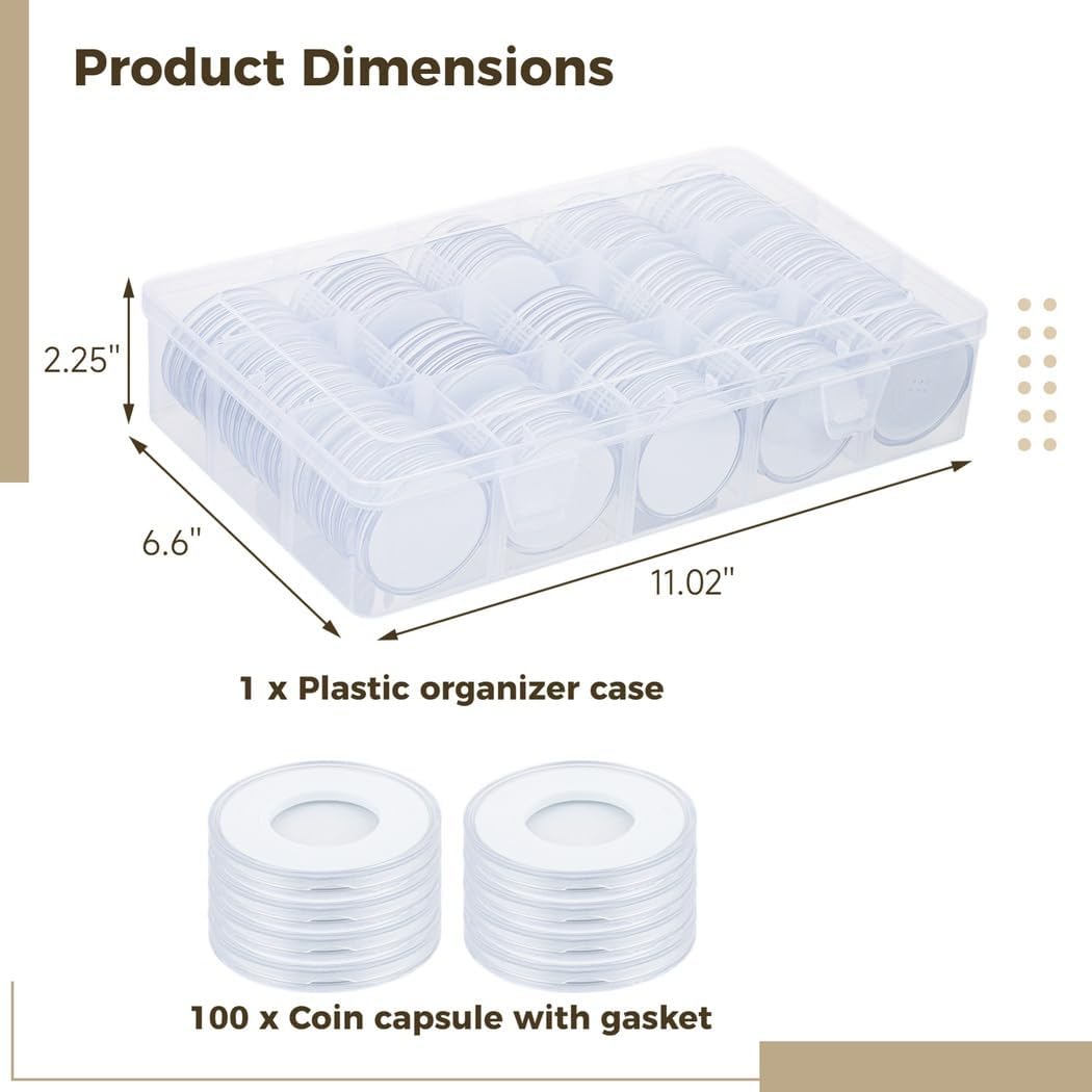 Dimensioni regolabili: guarnizioni in schiuma adatte da 0,66 a 1,81, per una varietà di tipi di monete, comprese monete d'argento e commemorative. Protezione ottimale: protegge la tua collezione di monete da polvere, umidità e ossidazione, mantenendola in ottime condizioni per anni Acrilico cristallino: il materiale trasparente consente di aiutarti a visualizzare e proteggere il tuo portafoglio senza oscurare la visibilità. Design pratico: con un'apertura a forma di mezzaluna, è facile da inserire e rimuovere, mentre il coperchio sicuro si blocca per evitare la perdita di monete