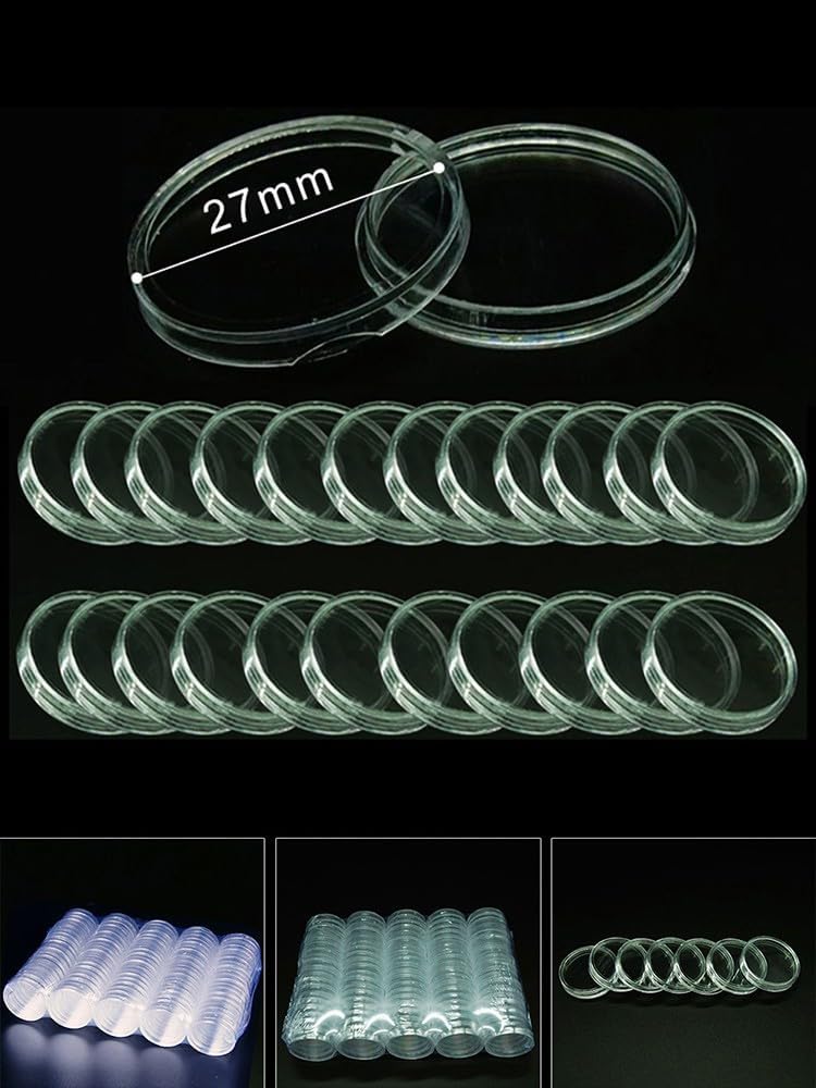 Portamonete in plastica trasparente: il portamonete è realizzato in plastica trasparente, consentendo una chiara visibilità delle monete conservate all'interno Efficace raccolta e protezione delle monete: questo porta monete è molto utile per raccogliere e proteggere le tue preziose monete Materiale robusto: il portamonete è realizzato in materiale plastico, garantendo una lunga durata Varie dimensioni: con un diametro interno di 27 mm, questo portamonete può ospitare monete di diverse dimensioni. Viene fornito con guarnizioni interne ad anello di 18/23/28/33/38 mm, consentendo opzioni versatili di conservazione delle monete Contenuto della confezione: è possibile scegliere tra due opzioni di confezione: 10 capsule per monete o 25 capsule per monete, a seconda delle esigenze