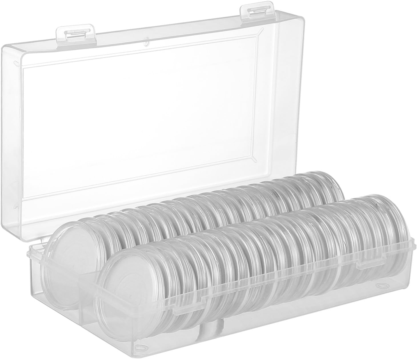 100 monete: la scatola per la raccolta delle monete comprende 100 piccole capsule, che possono contenere monete, monete d'argento e monete commemorative con un diametro ≤ 30 mm. che è facile da trasportare e riporre. Capsula per monete trasparente: la capsula per monete è realizzata in materiale acrilico, è chiara e trasparente senza inclusioni. Non è necessario estrarre la moneta dalla capsula per vedere i dettagli della moneta, in modo che la moneta non si usuri toccandola continuamente Facile da usare: il coperchio della capsula per monete ha una rientranza per l'apertura sul bordo, si aprono facilmente, le due metà si incastrano anche molto bene, con buona ermeticità, resistenza alla polvere, efficace prevenzione dell'ossidazione delle monete Buona protezione: 100 anelli in schiuma inclusi. La schiuma protettiva è pretagliata in diversi diametri. Puoi scegliere la dimensione adatta alla stanza. Questi anelli in schiuma possono aiutare le monete ad adattarsi meglio e impedire loro di scivolare o graffiarsi. Il contenitore per monete smista, organizza e conserva le monete in modo salvaspazio. Portare ordine e protezione nella collezione di monete è molto utile per i collezionisti e gli appassionati di monete