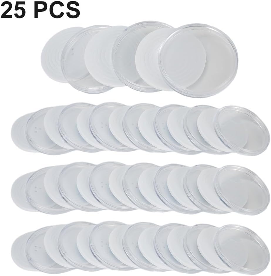 Scatola per collezionare monete: questa scatola porta monete in plastica trasparente è progettata per raccogliere e proteggere efficacemente le monete. Ampia compatibilità: con un diametro interno di 46 mm, questa capsula per monete è compatibile con varie dimensioni di monete. Viene fornito con guarnizioni interne ad anello di dimensioni di 18/23/28/33/38 mm per assicurarsi una vestibilità sicura. Materiale durevole: realizzato in plastica, questo portamonete è robusto e di lunga durata, fornendo una protezione affidabile per le tue monete. Pratico e versatile: che tu sia un collezionista di monete o semplicemente stai cercando di organizzare i tuoi spiccioli, questa scatola per la raccolta di monete è una soluzione pratica. Può essere utilizzato anche per esporre o conservare monete preziose. Confezione conveniente: scegli tra una confezione di 10 capsule per monete con 10 set di guarnizioni ad anello interne o una confezione di 25 capsule per monete con 25 set di guarnizioni interne ad anello, a seconda delle tue esigenze.