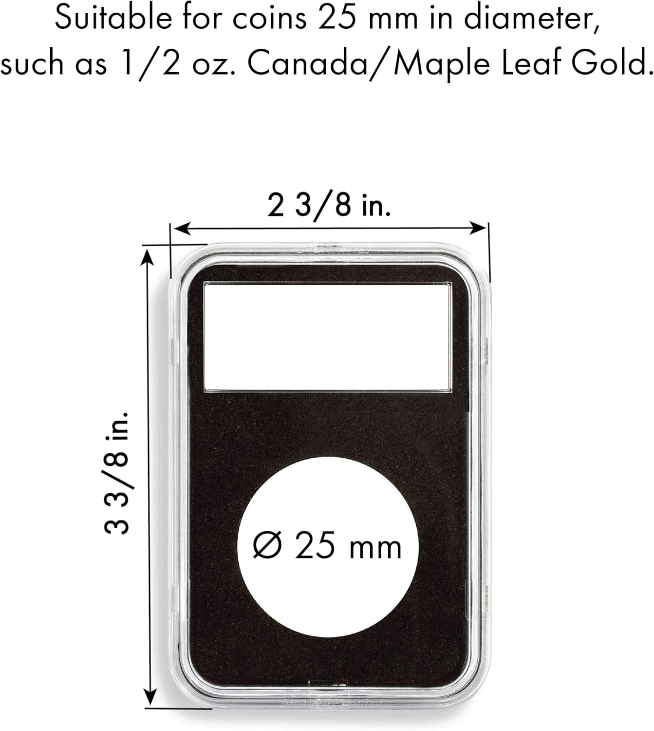 Capsule per medaglie rettangolari con inserto in schiuma nera con apertura esatta per le monete. L'inserto in schiuma è privo di acidi e di plastificanti chimici. Include informazioni per l'etichettatura di carte e capsule terreno in plastica trasparente e resistente ai graffi. Chiusura sicura. Dimensioni complessive: 59 x 85 x 10 mm.