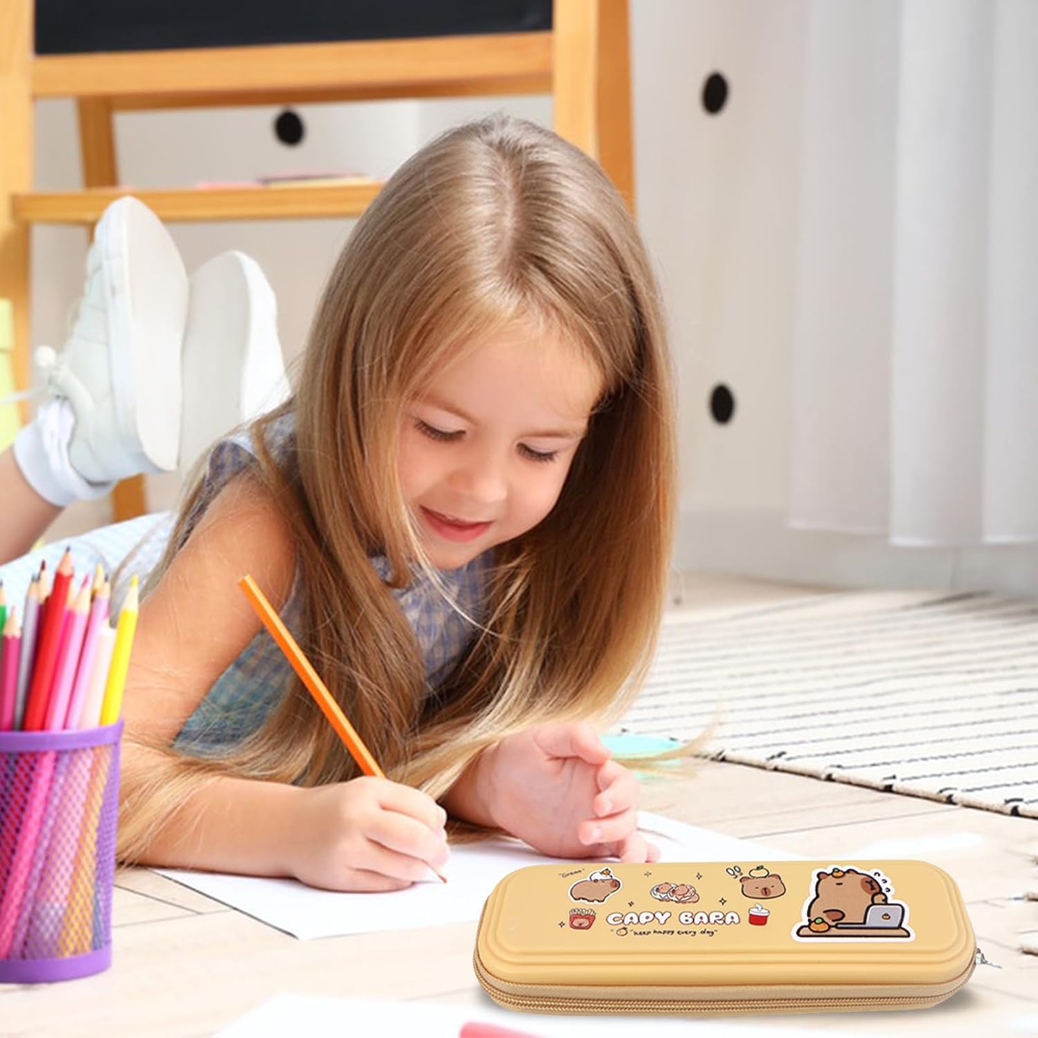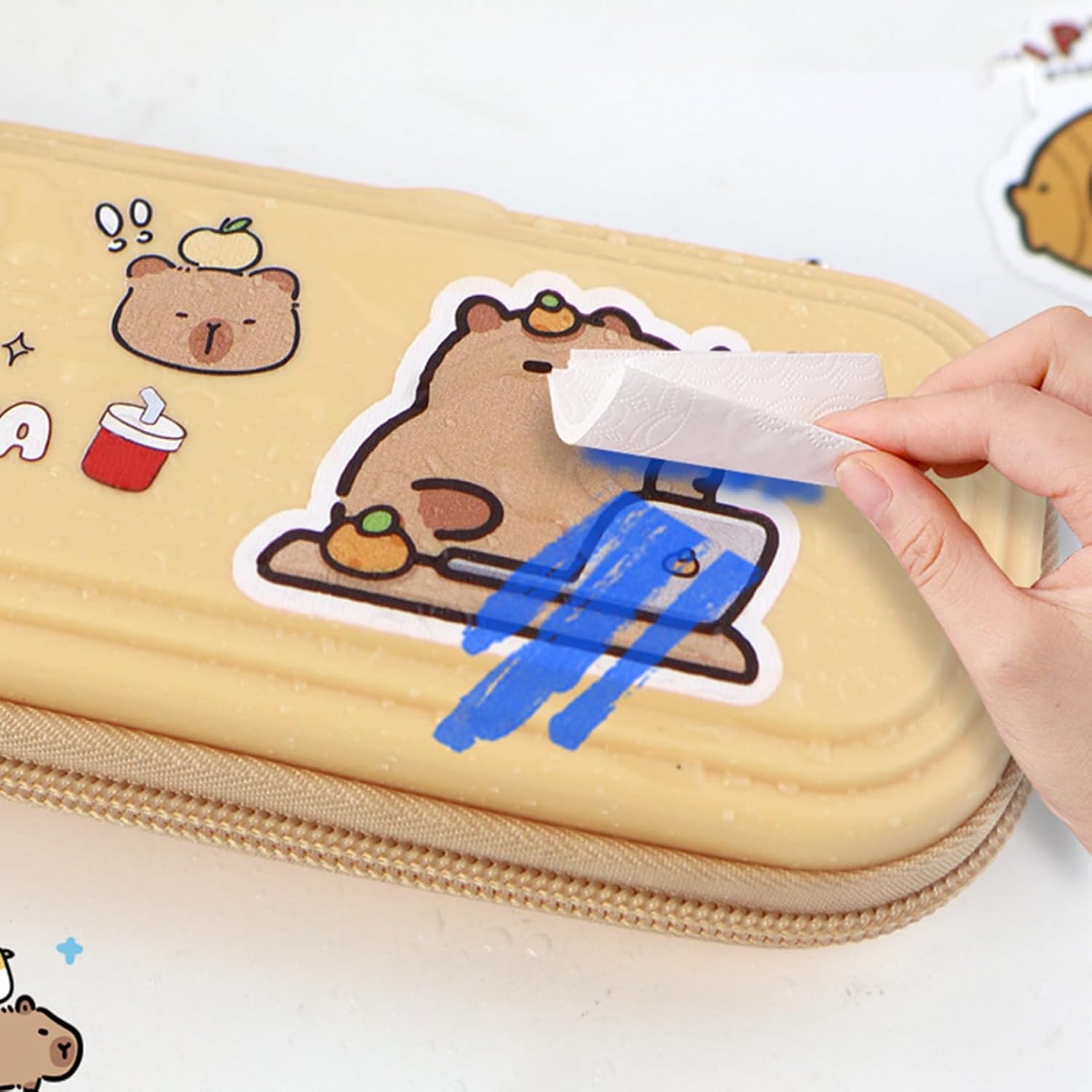 Materiale durevole: realizzato in materiale ABS di alta qualità, questa custodia per penne offre una buona durata, garantendo che sia resistente all'usura quotidiana mantenendo le penne al sicuro Grande capacità: il nostro astuccio Capybara è progettato con un design spazioso. Questa borsa può contenere una quantità significativa di forniture per soddisfare le vostre esigenze scolastiche, l'ufficio o artistico. Pulizia pratica: mantieni il tuo astuccio Capybara impeccabile senza sforzo, pulendo sporco o macchie con un panno umido o salviettine umidificate. Risparmia tempo e fatica garantendo una pulizia assoluta ai tuoi strumenti di creazione Capybara dal design carino: con un design a cartone animato, questa custodia per penne capybara è interessante e creativa, rendendolo una deliziosa aggiunta alla tua collezione di articoli di cancelleria Ampia gamma di applicazioni: perfetto per schizzi quotidiani, avventure all'aperto o viaggi; questo astuccio Capybara è vario e si adatta a molteplici esigenze, anche come astuccio per il trucco o accessori