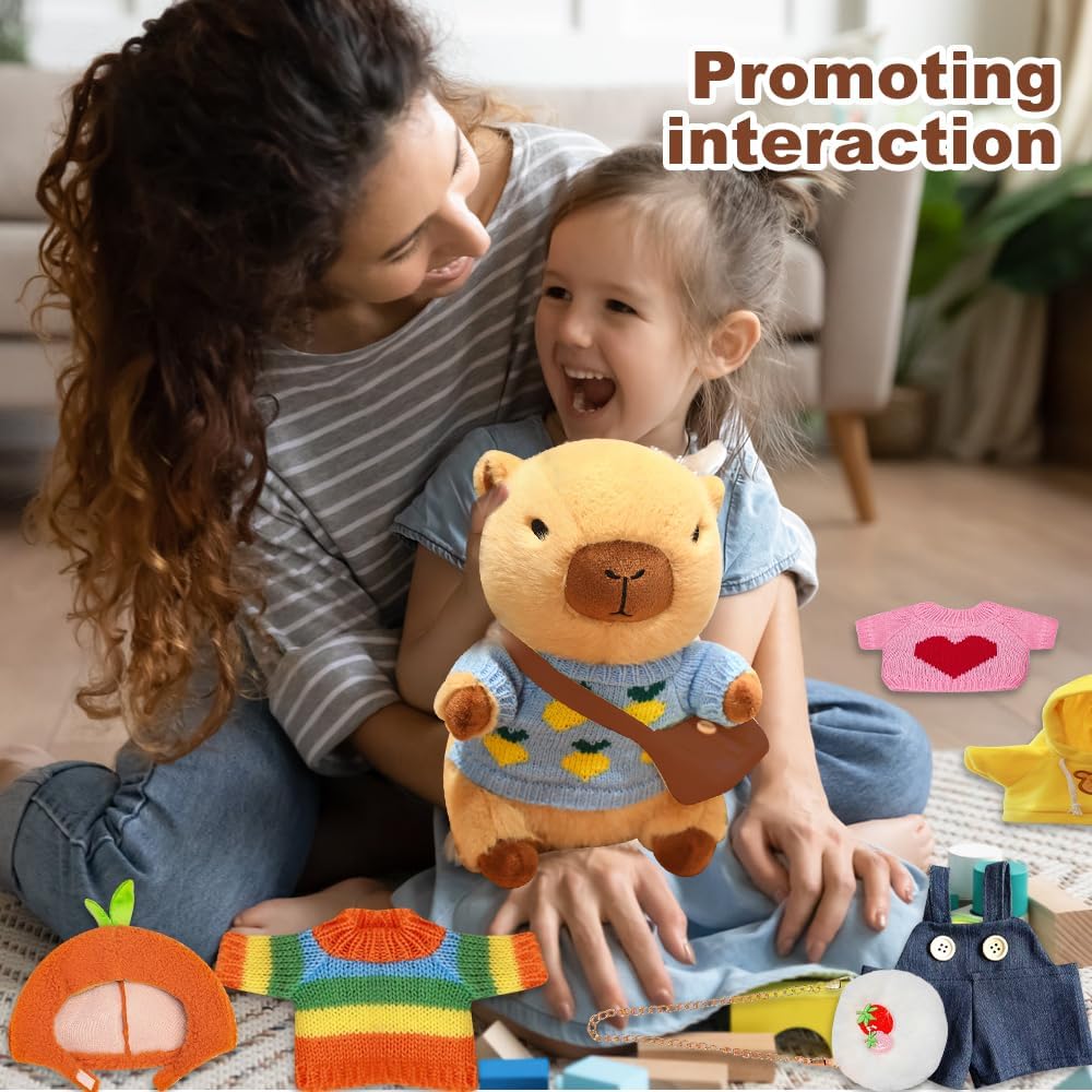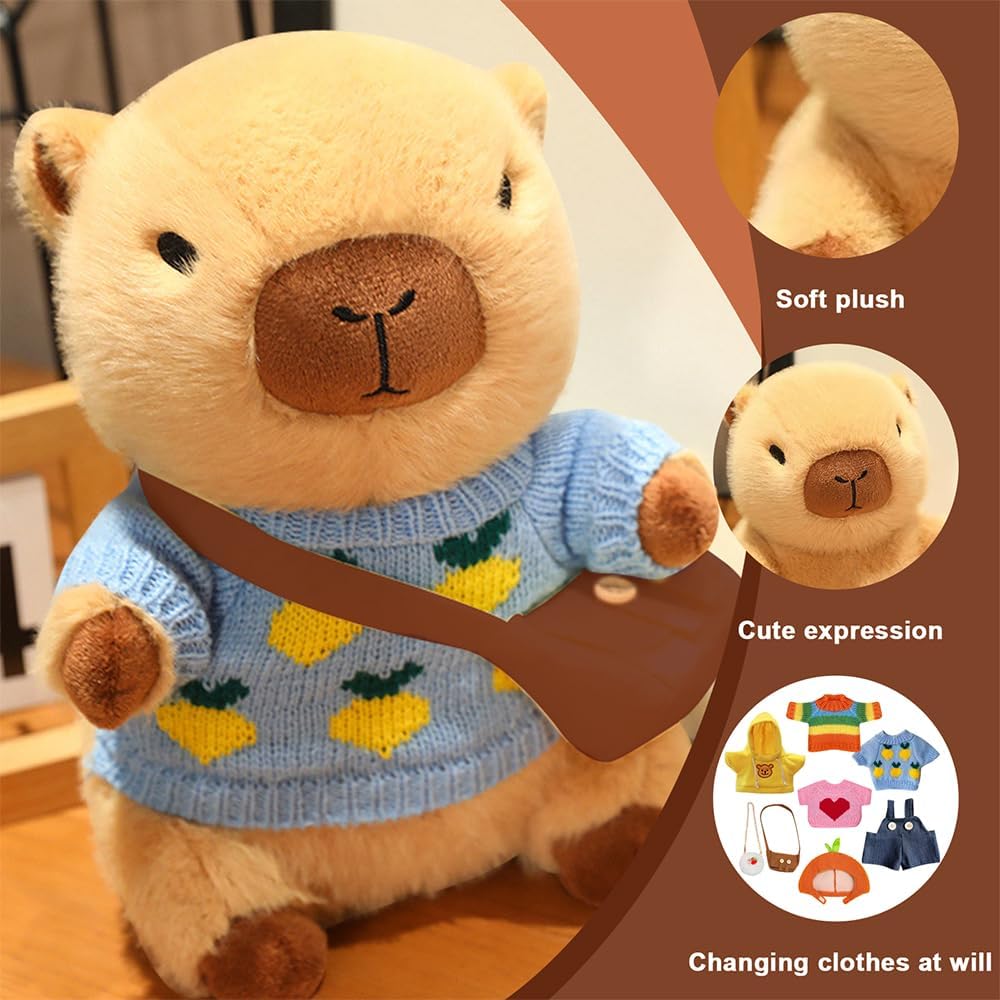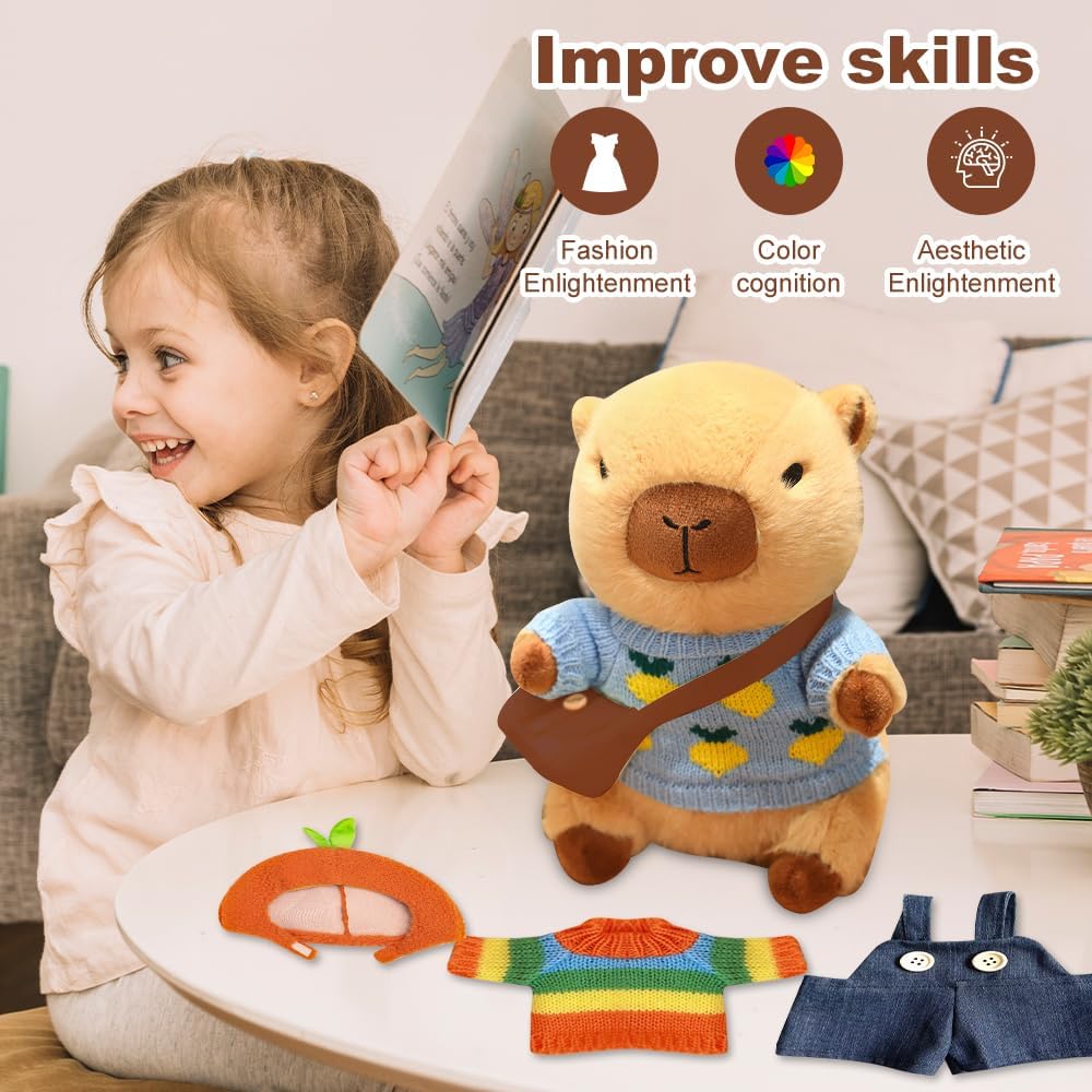 Set di abbigliamento versatile: questo peluche Capybara contiene 4 abiti alla moda, 2 tasche, 1 berretto e 1 bretelle, con cui il tuo bambino può creare look creativi. Ideale per travestire e giocare Materiale morbido di alta qualità: questo peluche Capybara è realizzato in tessuto robusto, morbido, sicuro e durevole che adulti e bambini adoreranno! Stimola la creatività e la motorizzazione fine: i bambini possono indossare accessori per allenare la loro abilità e sviluppare un senso di moda giocoso! Perfetto per un gioco interattivo: questo peluche Capybara promuove un gioco di ruolo fantasioso e rafforza le abilità sociali. Ideale per giocare insieme! Fantastico regalo per ogni occasione: che si tratti di un regalo di compleanno, una sorpresa di Natale o semplicemente un abbraccio, questo peluche Capybara entusiasma a tutte le età!