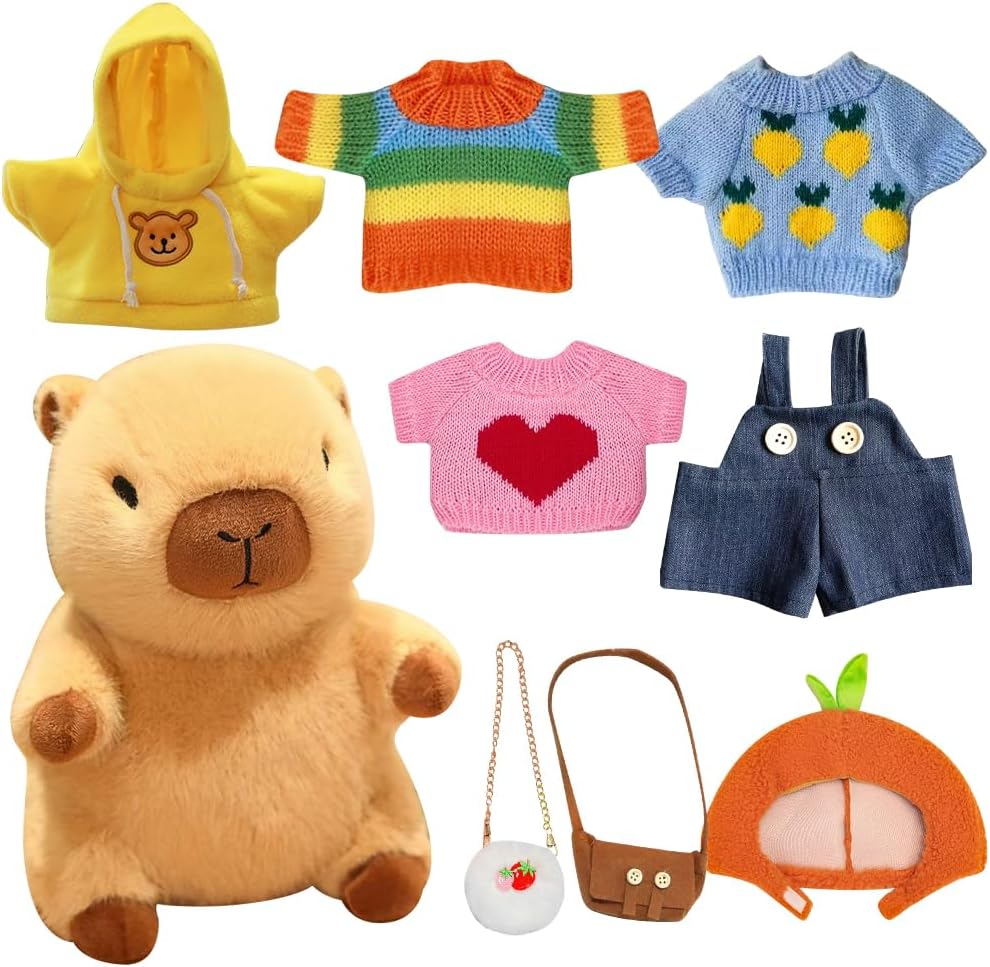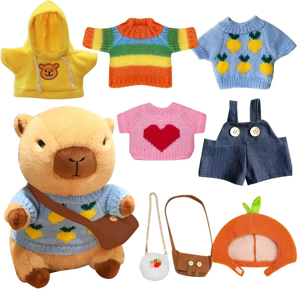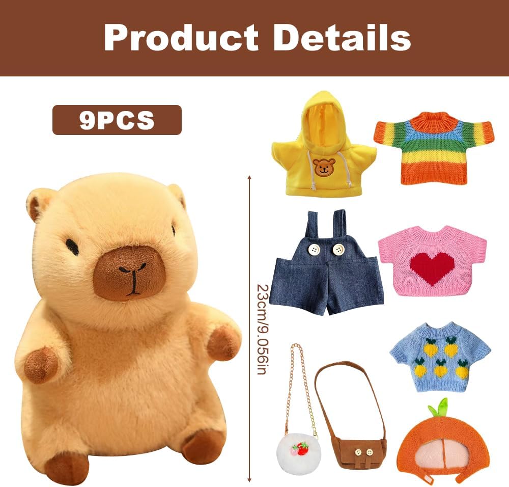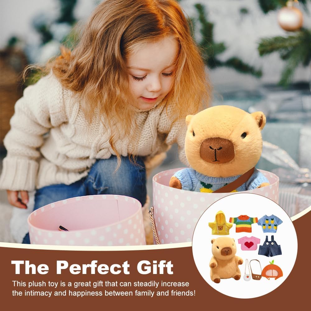 Set di abbigliamento versatile: questo peluche Capybara contiene 4 abiti alla moda, 2 tasche, 1 berretto e 1 bretelle, con cui il tuo bambino può creare look creativi. Ideale per travestire e giocare Materiale morbido di alta qualità: questo peluche Capybara è realizzato in tessuto robusto, morbido, sicuro e durevole che adulti e bambini adoreranno! Stimola la creatività e la motorizzazione fine: i bambini possono indossare accessori per allenare la loro abilità e sviluppare un senso di moda giocoso! Perfetto per un gioco interattivo: questo peluche Capybara promuove un gioco di ruolo fantasioso e rafforza le abilità sociali. Ideale per giocare insieme! Fantastico regalo per ogni occasione: che si tratti di un regalo di compleanno, una sorpresa di Natale o semplicemente un abbraccio, questo peluche Capybara entusiasma a tutte le età!