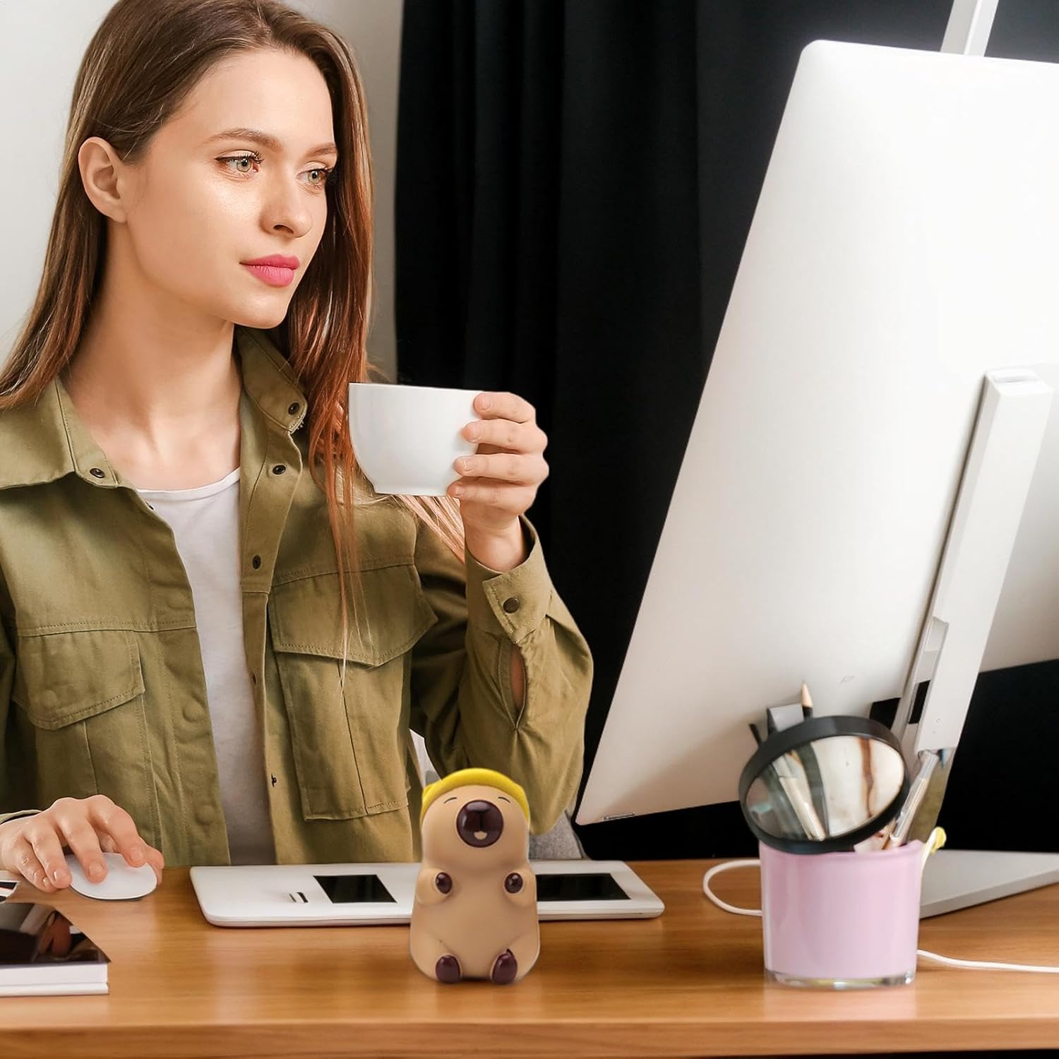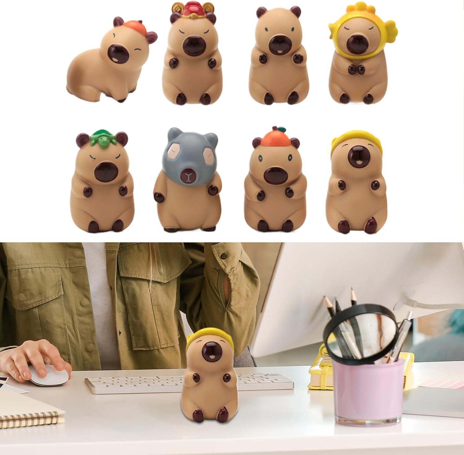 Capibara stravagante: aggiungi un tocco di fascino unico al tuo arredamento con questa statua, che vanta un simpatico design capibara completo di dettagli intricati e accessori Costruzione robusta: realizzate in PVC sicuro, le nostre statuette di capibara vantano un design sicuro e innocuo. Sono morbidi al tatto, resistenti all'usura e non si rompono facilmente, rendendoli una scelta ecologica per qualsiasi collezione Decorazione versatile indispensabile: ottimo per ravvivare occasioni festive come feste di compleanno e celebrazioni festive. Ampiamente usato in molte impostazioni: adorna il tuo comodino, visualizzalo su una libreria o come centrotavola attraente sul tuo tavolo da pranzo Rinnova gli interni della tua casa: l'aggiunta di figure di statue Capybara all'arredamento della tua casa eleva l'estetica creando un'aggiunta carina e stravagante a scrivanie, scaffali e altro ancora Piccolo ed elegante: circa 10,2 cm di altezza, può facilmente abbellire lo spazio; piccolo e squisito, facile da posizionare e spostare, sia esposto da solo che utilizzato in combinazione