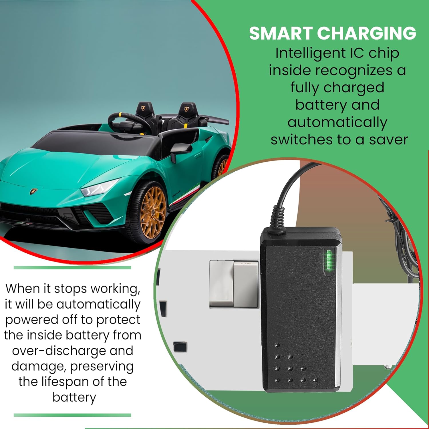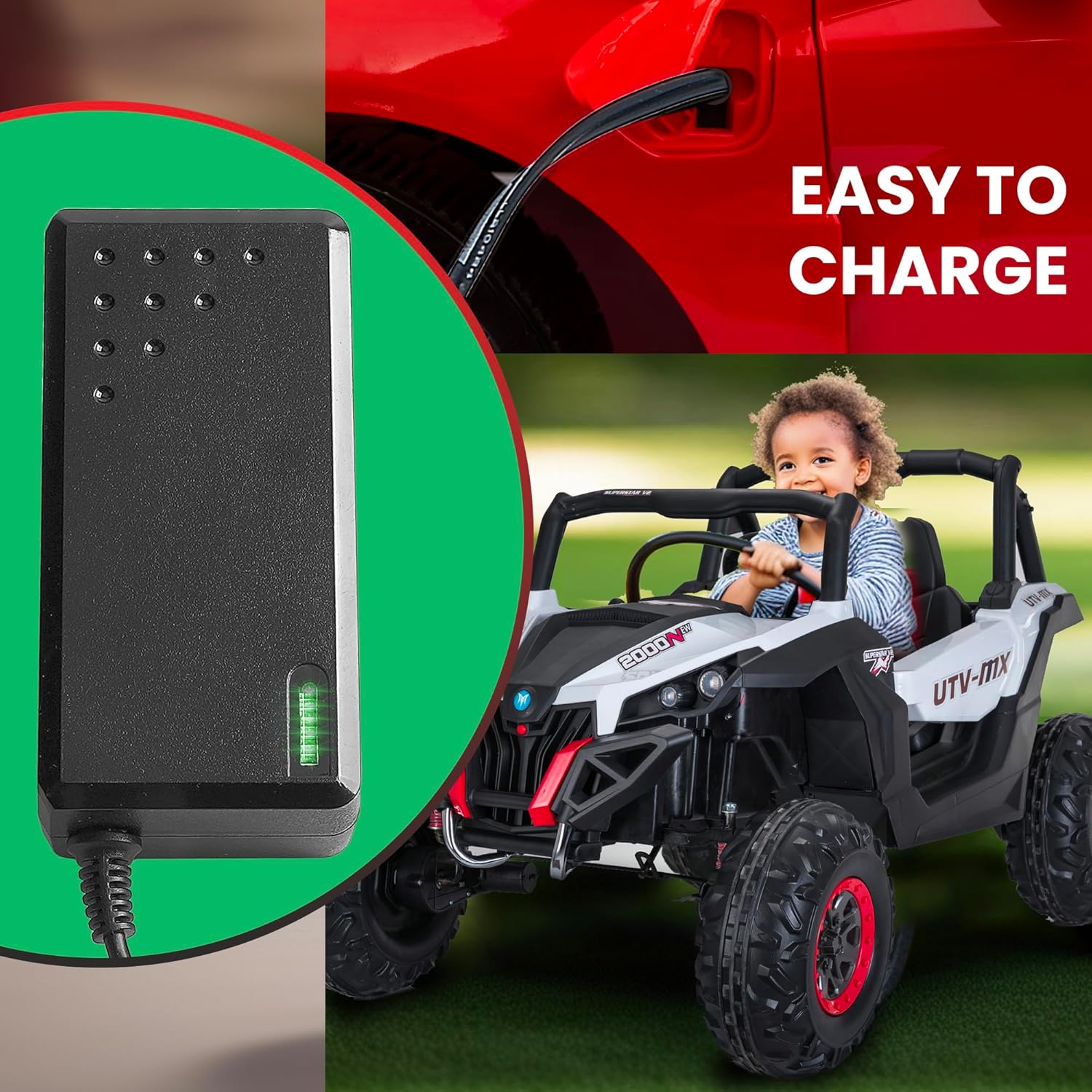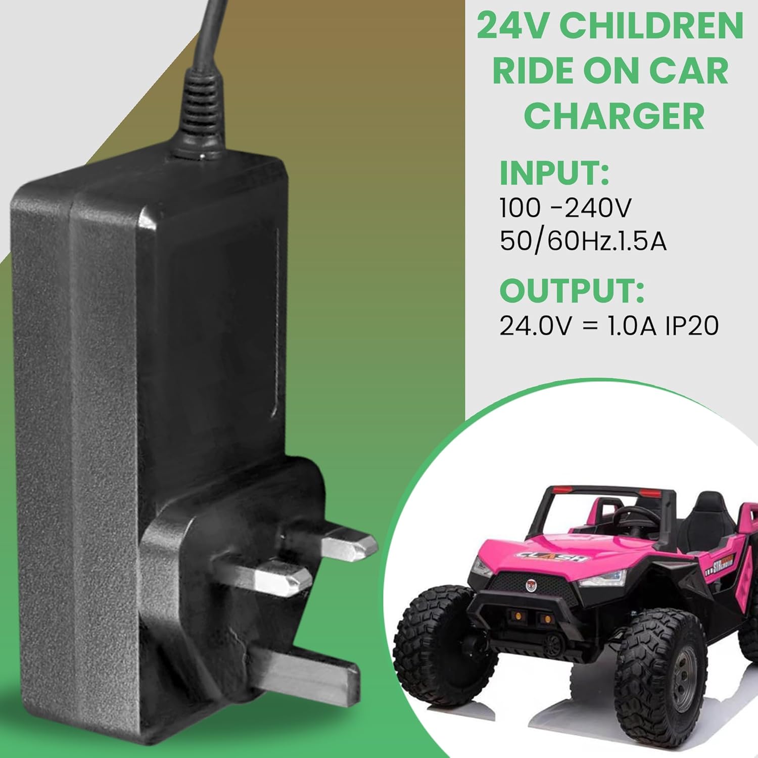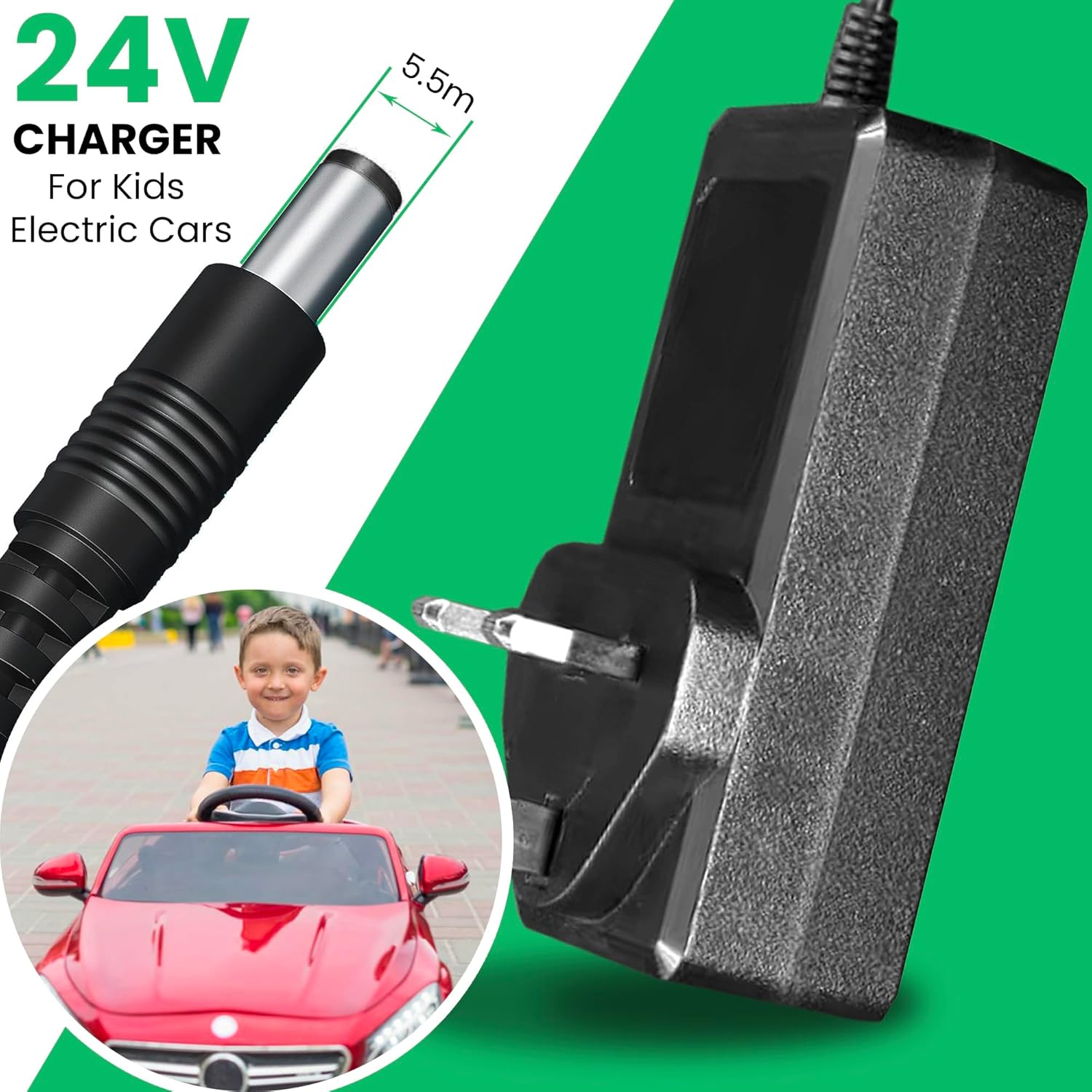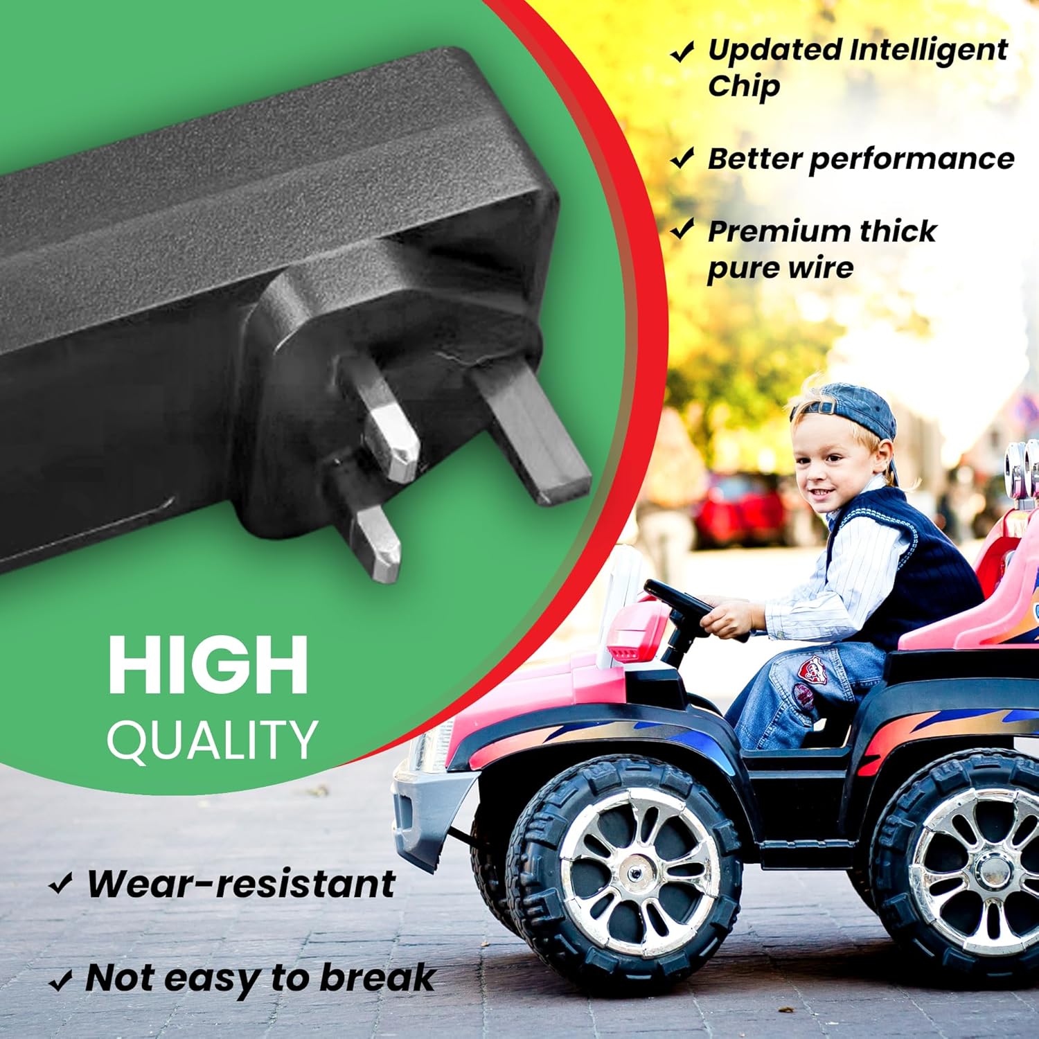 Caricabatterie elettrico da 24 V per bambini, con indicatore di luce verde. Adatto al 99% dei modelli, Drift kart, quad, auto, SUVs INPUT - 100-240VAC 0.36A OUTPUT 28.8V DC 55V 00 MA, CON. NECTION PIN 5.5MM ALL CARICABATTERIE TESTATO PRIMA DELLA !.Leading suppiler di bambini elettrico giro su giocattoli e parti di nel Regno Unito e Irlanda