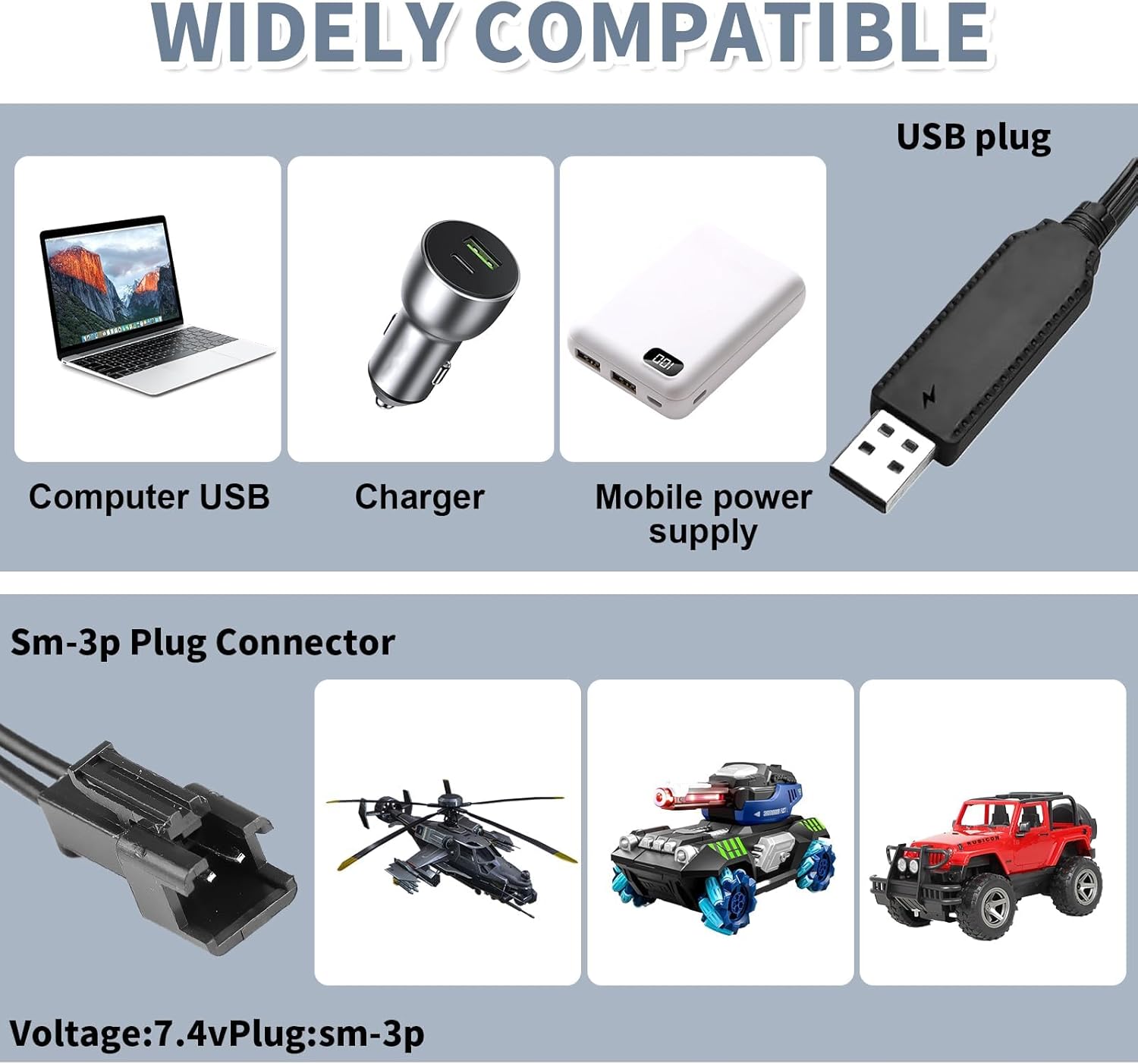 Ricarica Efficiente e Sicura: Questo caricabatteria usb 3.7v è progettato per batterie NiCd, NiMH e LiPo da 3.7V, con protezione integrata contro sovratensioni, sovracorrenti e sovraccarichi. Garantisce una ricarica rapida e sicura, prolungando la durata e le prestazioni delle batterie dei tuoi dispositivi RC. Design Compatto e Portatile: Con un ingresso DC 5V e una corrente di uscita di 500mA, questo cavi caricabatteria rc è leggero, compatto e facile da trasportare. Ideale per ricaricare le batterie dei tuoi giocattoli telecomandati ovunque tu sia, sia a casa che in viaggio. Compatibilità Universale: Compatibile con una vasta gamma di dispositivi RC, tra cui auto telecomandate, droni FPV, quadricotteri, elicotteri e altri giocattoli telecomandati. Questo caricabatterie rc lipo è una soluzione affidabile e versatile per tutti gli appassionati di modellismo. Indicatore LED Intelligente: Durante la ricarica, la luce verde lampeggia e la luce rossa rimane accesa. Quando la batteria è completamente carica, entrambe le luci verde e rossa si accendono. Se la luce rossa lampeggia velocemente, segnala un problema, garantendo un monitoraggio sicuro e intuitivo. Protezione Intelligente e Automatica: Dotato di un circuito di controllo IC intelligente, questocaricabatterie usb spina sm-2p regola automaticamente la carica a tensione e corrente costante. Quando la tensione raggiunge il livello prestabilito, interrompe automaticamente la ricarica, prevenendo danni alla batteria e garantendo una lunga durata.