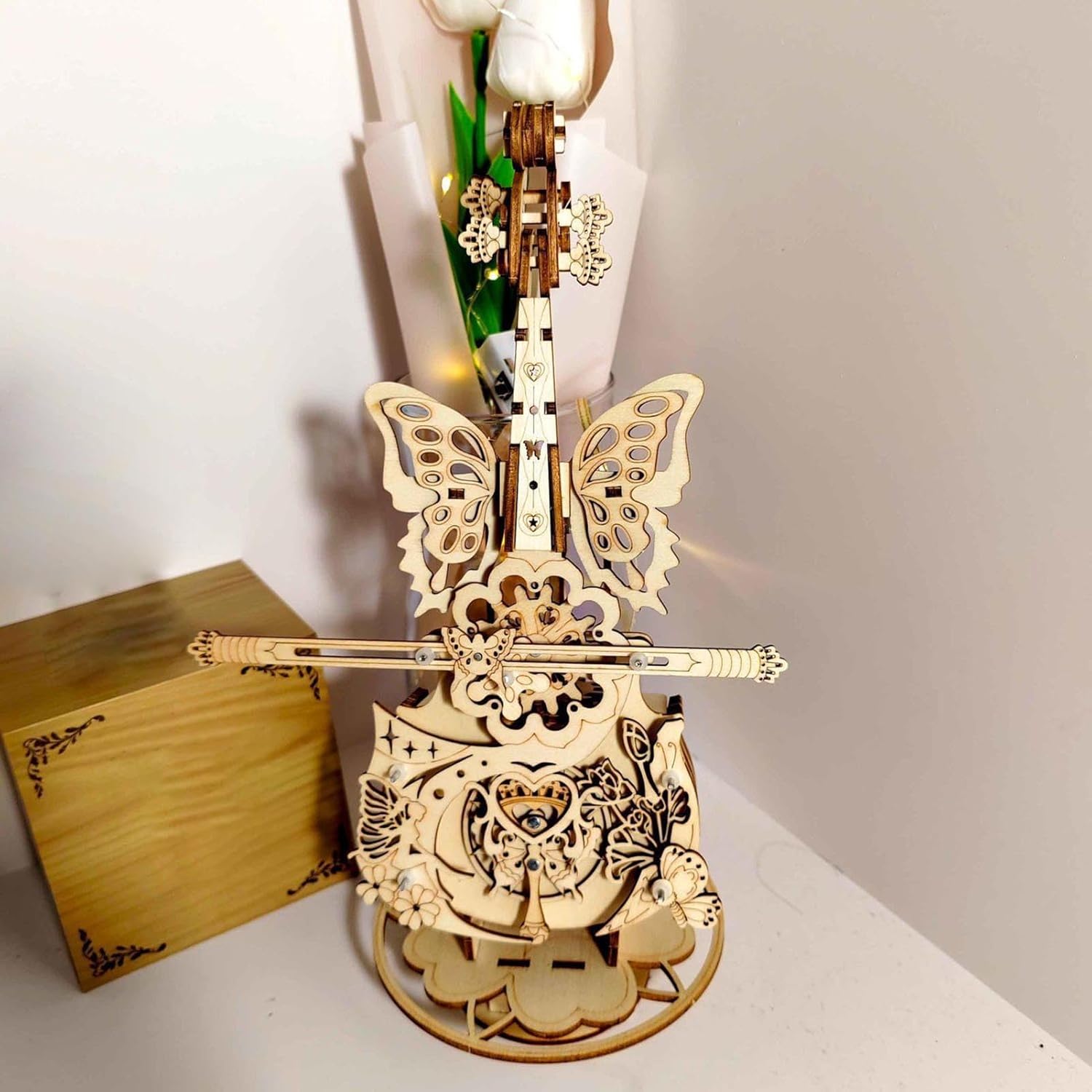 Esperienza di successo artigianale: fasi di montaggio logiche con componenti di alta qualità garantiscono un divertimento fluido con il puzzle 3D che regala momenti di orgoglio di successo durante il montaggio Estetica Funzione: curve dinamiche e caratteristiche naturali del materiale si fondono in questo puzzle 3D - il suono è creato dall'interazione del design delle ali di farfalla e della classica tastiera del violino Imparare attraverso il gioco: il puzzle del carillon unisce divertimento artigianale e valore educativo: i bambini sviluppano capacità motorie e pazienza durante il montaggio La melodia offre momenti di felicità dopo la realizzazione. Piacere di ascolto dinamico: il meccanismo musicale realizzato a mano produce sequenze di toni cristallini attraverso la trasmissione della potenza puramente meccanica. Senza elettronica si creano sfumature sonore naturali che combinano armoniosamente l'esperienza del carillon e del puzzle. Ampia gamma di applicazioni: può essere integrato armoniosamente come elemento decorativo nelle aree di lavoro, negli scaffali espositivi o nelle accoglienti zone giorno. Grazie alle sue versatili opzioni di posizionamento, trasforma qualsiasi stanza in uno spazio di esperienza elegante
