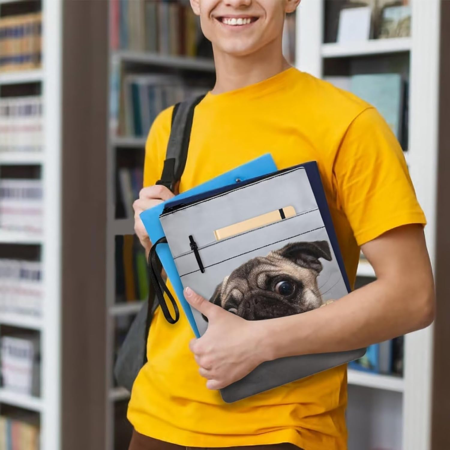 Carino Pug School Book Pouch per libro in brossura copertina rigida stampa animale borsa protettiva per libri con manico per gli amanti dei libri in tessuto lavabile copertine libro in brossura