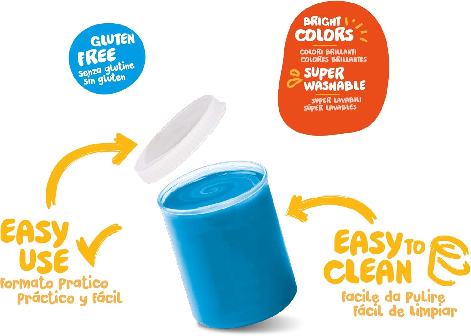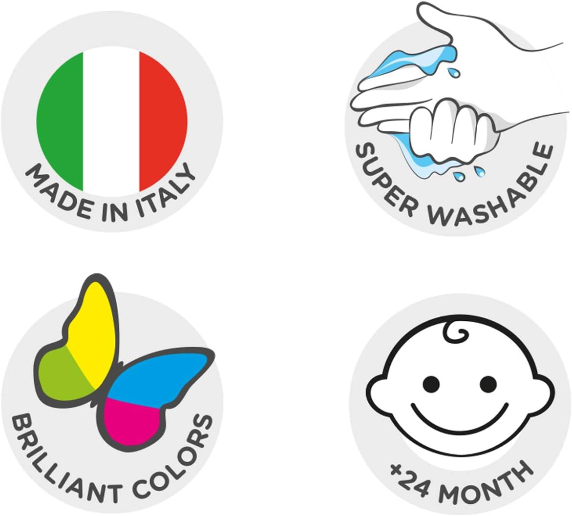 Contenuto: la confezione contiene 6 barattoli da 80 ml di tempere a dita, ideali per bambini di età superiore ai 24 mesi, ideali per stimolare la loro fantasia Baby Finger Paints: set di tempere a dita con colori assortiti, brillanti e super lavabili dalla pelle e dai tessuti, senza lasciare macchie Tempere a dita: tempere ideali per i bambini più piccoli, utilizzabili senza pennello direttamente con le dita, facili da pulire e nel pratico formato da 6 barattolini Lavabili: le tempere a dita Baby Finger Paints sono super lavabili, studiate per liberare la creatività dei tuoi bambini senza paura delle macchie Extra: prodotti dermatologicamente testati, realizzati con pigmenti di alta qualità, non tossici, inodore e senza glutine
