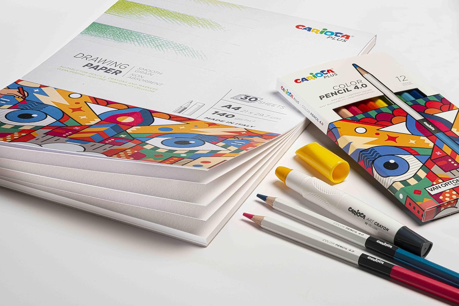 CONTENUTO: Carta specifica per lo schizzo e il disegno con matite colorate: spessa e a grana fine ALBUM DA DISEGNO: L’album è in formato A4 e include 30 fogli da disegno CARATTERISTICHE: Si cancella facilmente, non assorbe, ed è costituita di cellulosa di alta qualità IDEALE PER: Adatta per utilizzo con acquerelli e tecniche umide, con una superficie ottimale per tutti i tipi di acquerelli CARIOCA PLUS: Una nuova linea di prodotti Carioca per il disegno e la pittura, made in Italy, con standard qualitativi che garantiscono un risultato professionale
