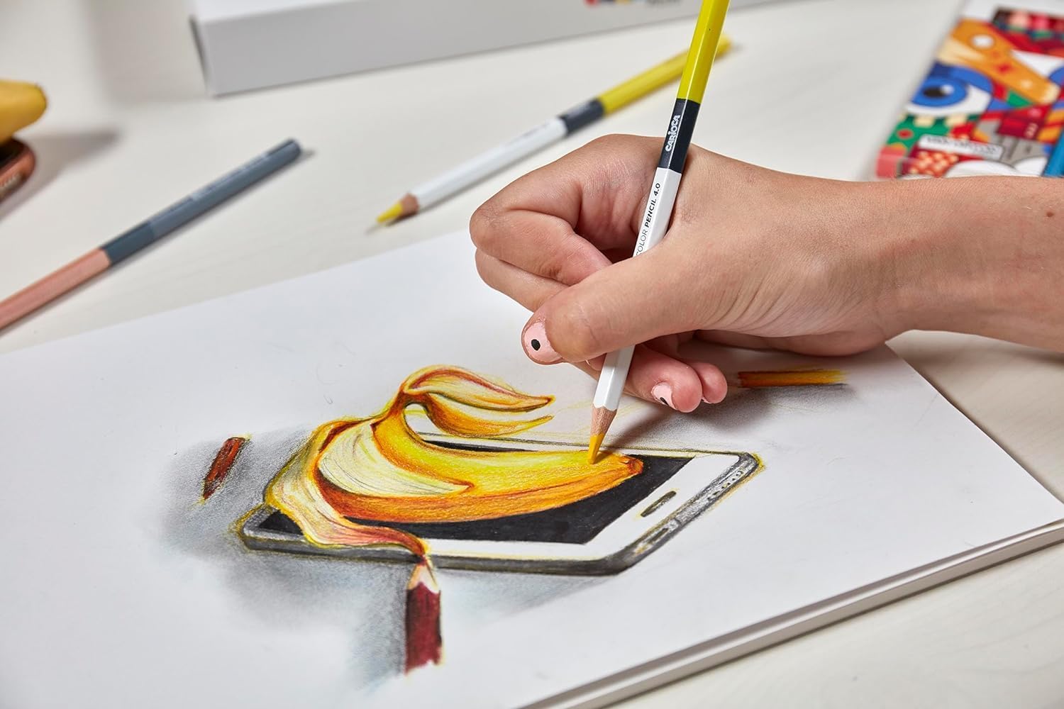 CONTENUTO: La confezione contiene 18 matite colorate in legno, che garantiscono un'ottima tenuta su carta, con pochissimo fall-out MATITE COLORATE 4.0: Matite dai colori intensi, vibranti e resistenti alla luce, realizzate in legno 100% FSC CARATTERISTICHE: Le matite hanno una mina di qualità superiore, spessa e morbida ad alta pigmentazione Ø 4.0 mm IDEALE PER: Facile da sfumare e dedicate a chi desidera esplorare nuove tecniche artistiche, attraverso la creazione di disegni e sperimentando diverse modalità di espressione CARIOCA PLUS: Una nuova linea di prodotti Carioca per il disegno e la pittura, made in Italy, con standard qualitativi che garantiscono un risultato professionale