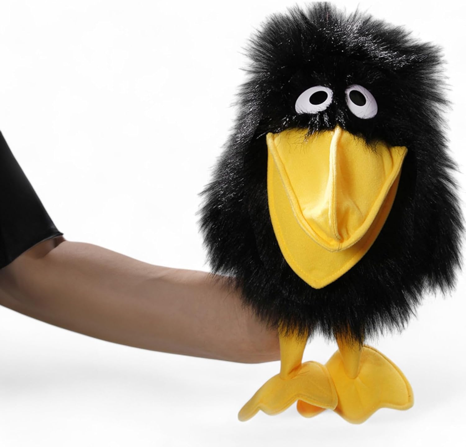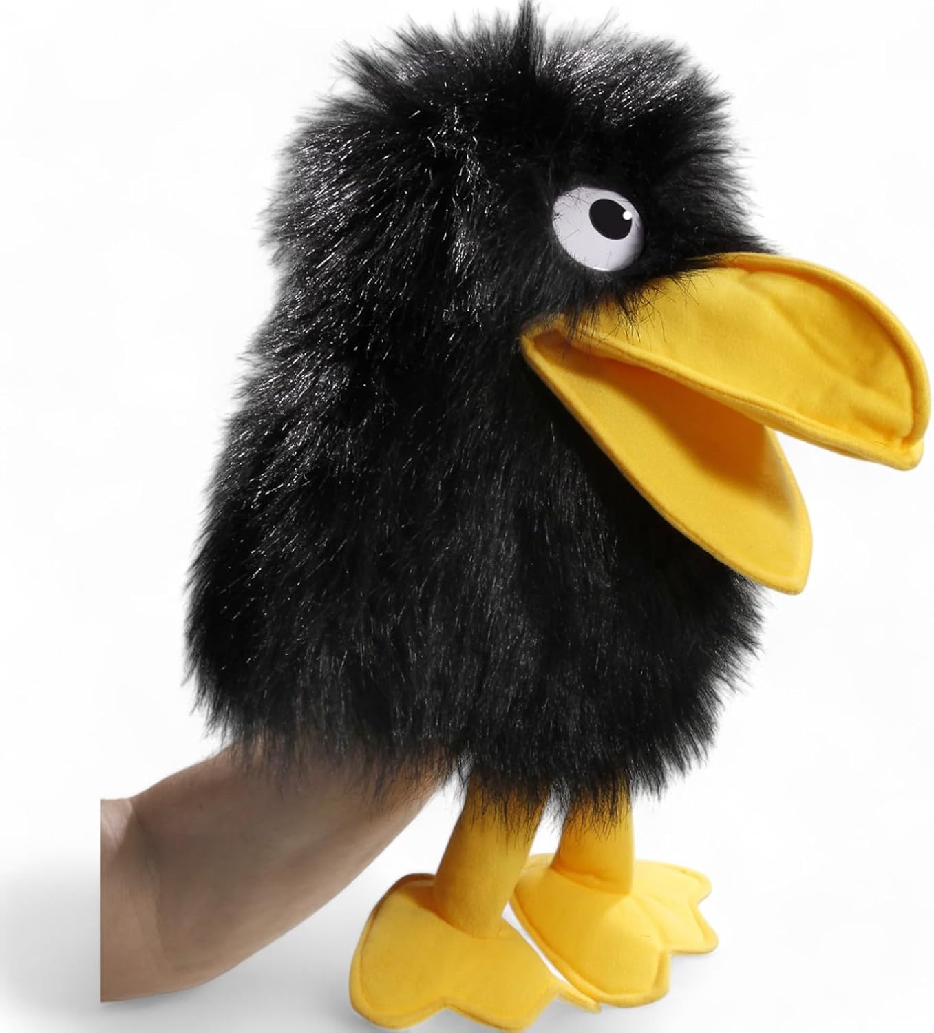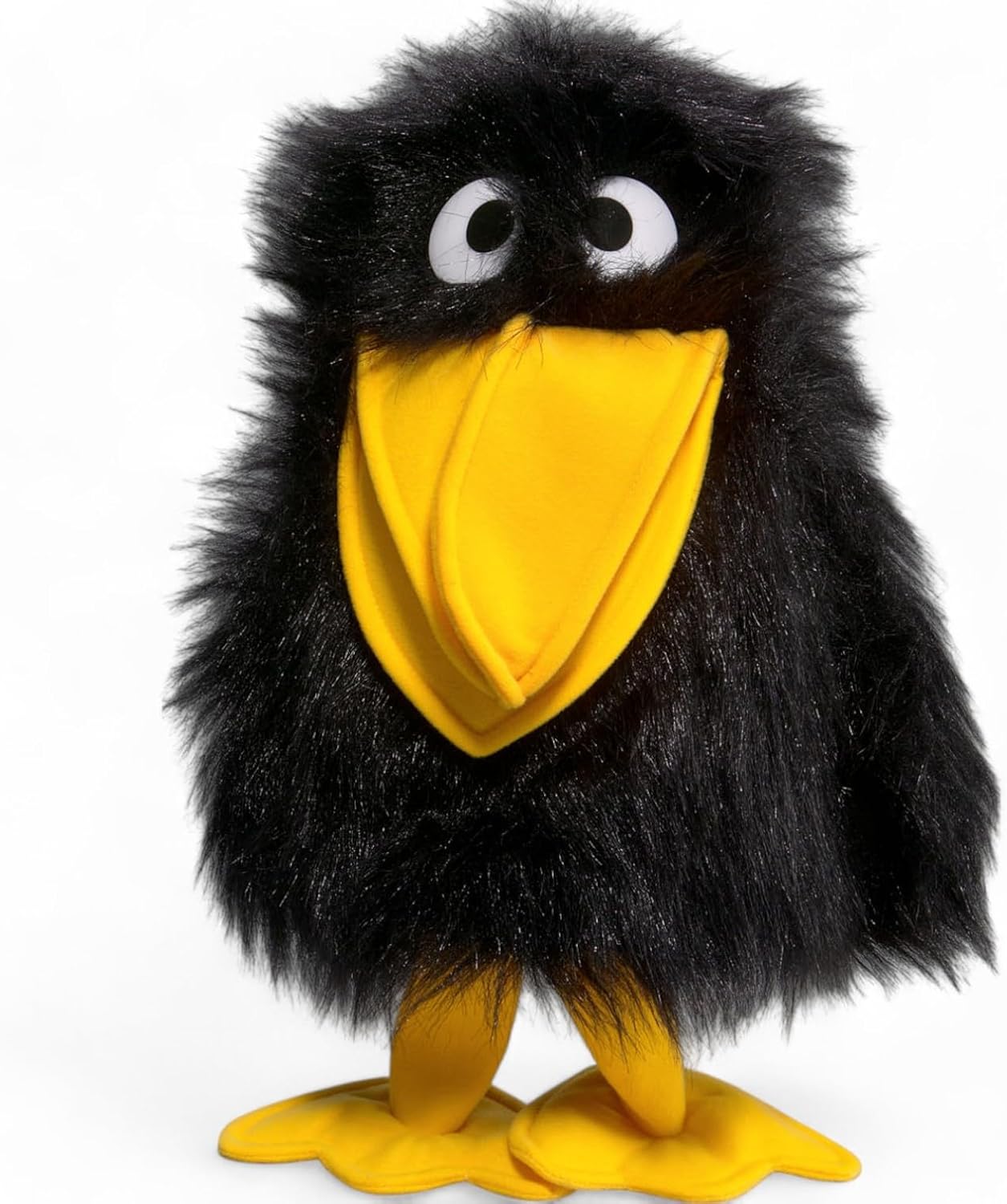 Burattino da mano di alta qualità che rappresenta un buffo corvo. Ideale per giocare e per dimostrazioni. Il pollice si inserisce nel becco inferiore, quattro dita muovono la parte superiore. Il pupazzo di peluche è alto circa 30 cm. Con i piedi misura circa 40 cm. Il corvo ha gli occhi da cartone animato. Il peluche ha una sensazione molto piacevole dentro e fuori. Il peluche ha una pelliccia nera come il piumaggio. Il becco e le zampe sono gialli e realizzati in tessuto. Si consiglia il lavaggio a mano per la cura. Il materiale peluche è ignifugo, anallergico e prodotto secondo i più alti standard di sicurezza. Un prodotto della collezione Carl Dick. Il marchio tradizionale è presente con successo sul mercato da oltre 30 anni ed è specialista in peluche. La sede è a Garmisch-Partenkirchen, in Germania.