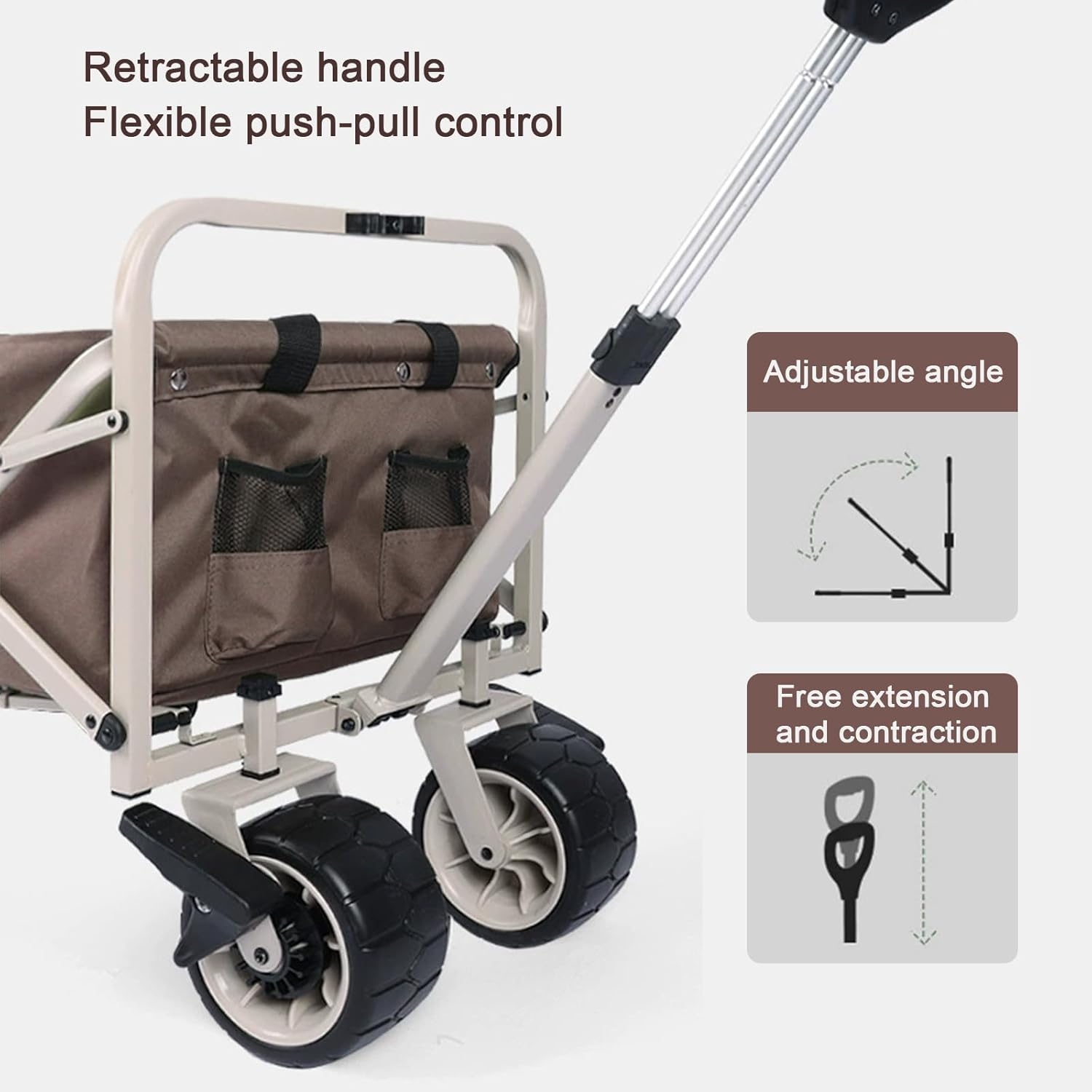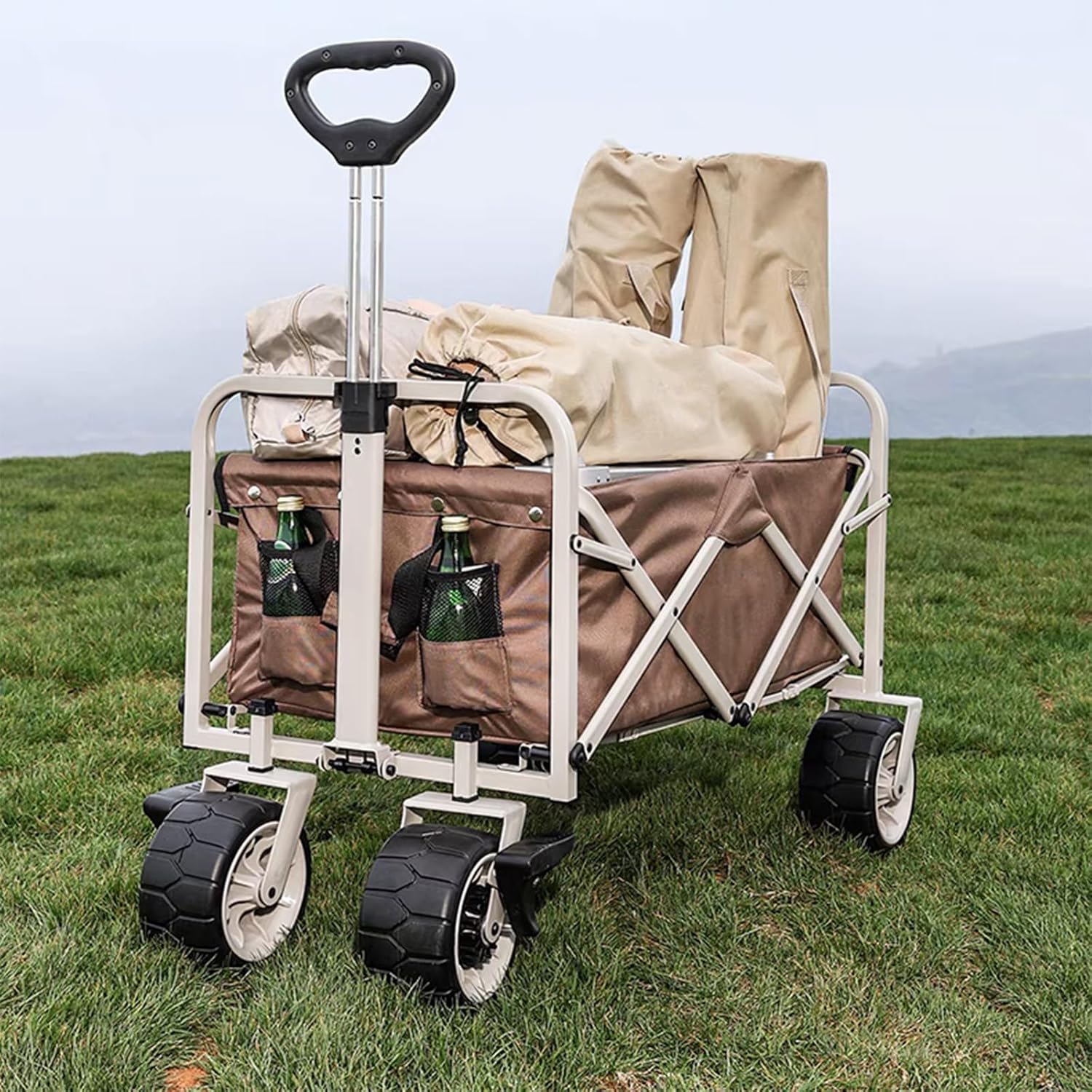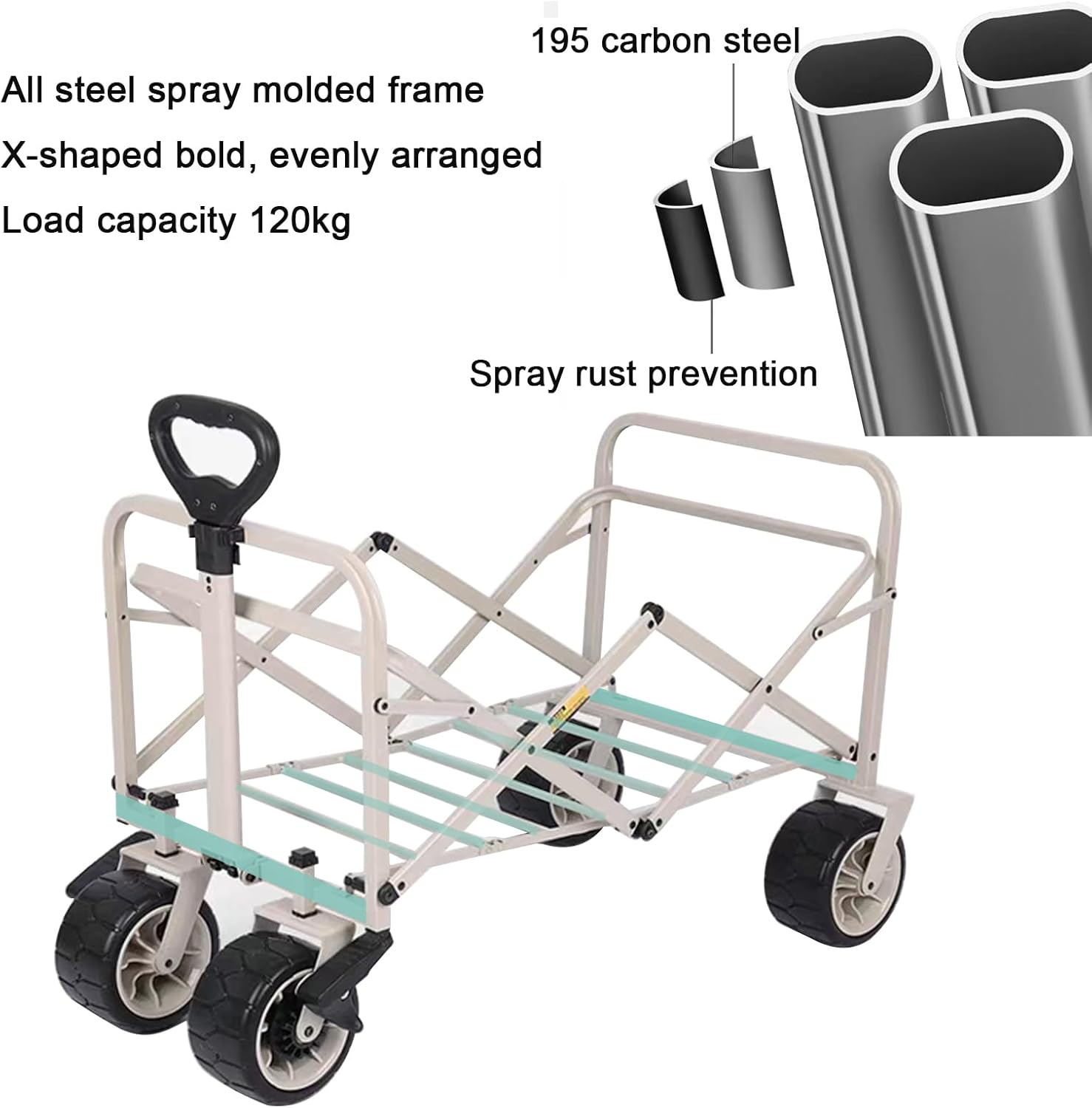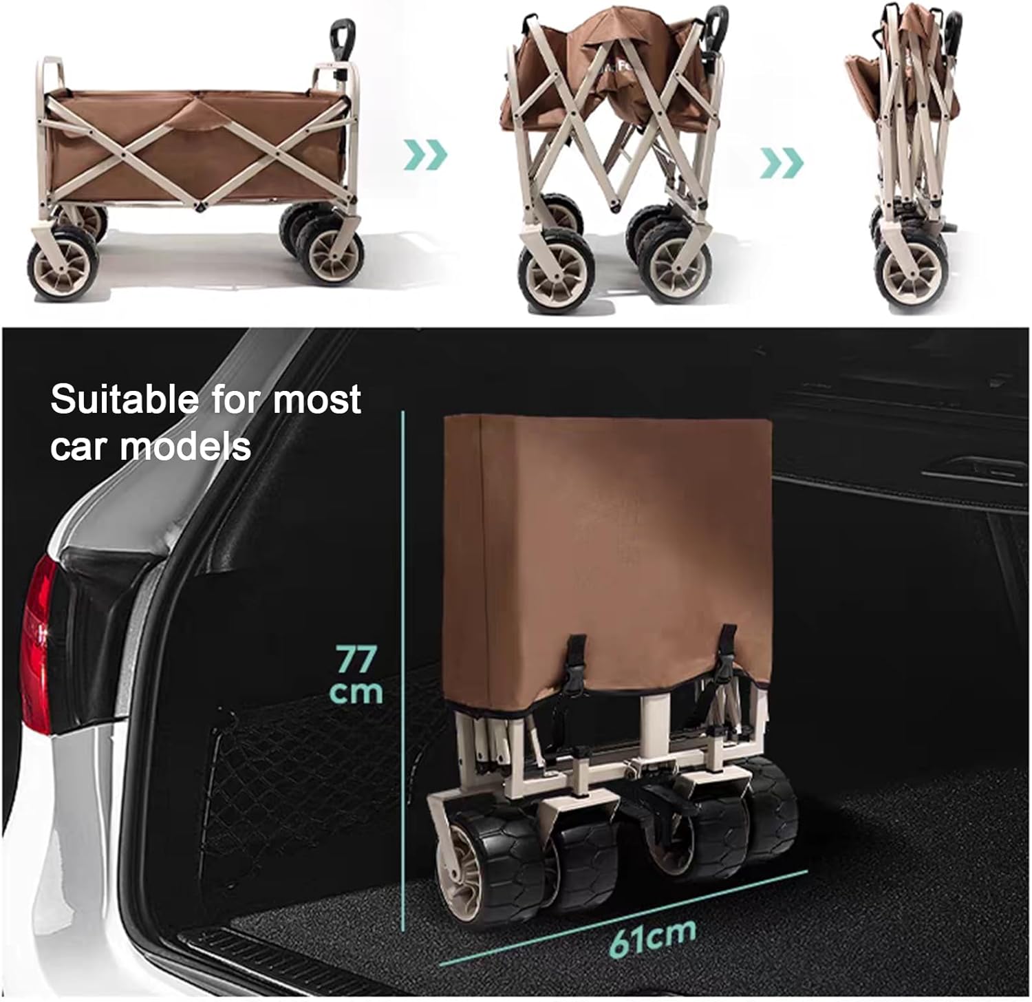 GRANDE CAPACITÀ: Con una capacità estesa di 150 litri, questo carrello da campeggio all'aperto offre spazio sufficiente per trasportare tutte le forniture e le attrezzature da campeggio, rendendolo perfetto per lunghi viaggi in campeggio o avventure all'aria aperta. Costruzione robusta: il carrello è dotato di un telaio in acciaio verniciato a spruzzo robusto e durevole che garantisce una capacità di carico massima di 260 libbre. Puoi trasportare in sicurezza oggetti pesanti senza doverti preoccupare della stabilità del carrello. Ruote fuoristrada: dotato di ruote fuoristrada per carichi pesanti, questo camper affronta facilmente vari terreni, inclusi sentieri irregolari, spiagge sabbiose e superfici irregolari. scivola senza sforzo attraverso qualsiasi ambiente esterno. Tessuto Oxford ad alta resistenza: questo carrello è realizzato in tessuto Oxford 600D ad alta resistenza ed è altamente resistente agli strappi, all'abrasione e alle condizioni atmosferiche avverse. Garantisce che i tuoi effetti personali rimangano al sicuro e protetti durante i tuoi viaggi in campeggio. COMPATTO E PORTATILE: nonostante la sua grande capacità, questo camper è compatto e facile da riporre. Grazie al suo design pieghevole, puoi facilmente ripiegarlo e riporlo nel bagagliaio o nel vano portaoggetti della tua auto, rendendo il trasporto senza problemi.