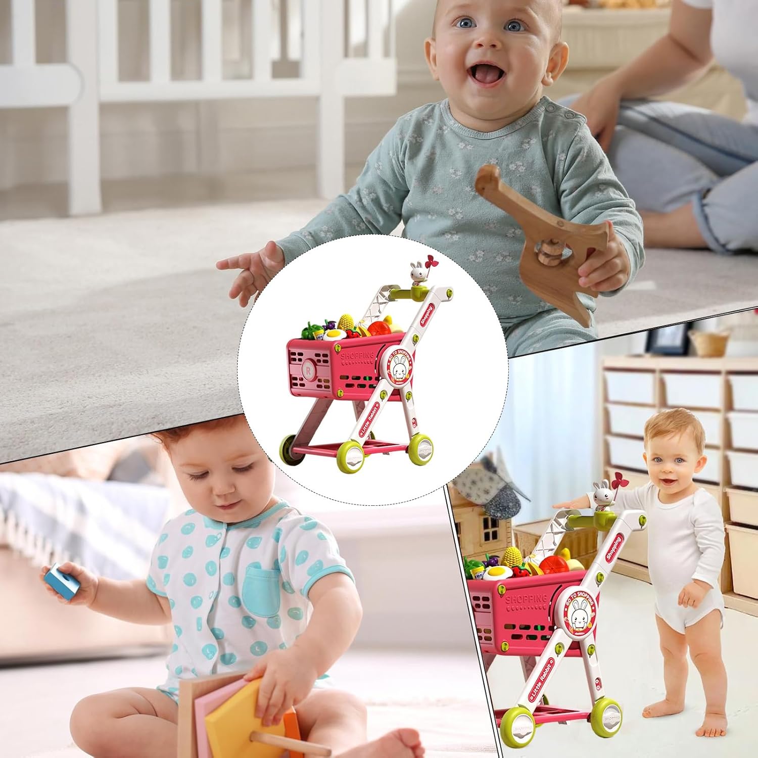 Uso esterno sicuro: il design antiribaltamento e il design antiscivolo consentono un gioco sicuro anche su superfici irregolari. Il telaio adattabile offre un supporto bilanciato durante e un'esperienza di gioco ad alta intensità di esplorazione grazie ai bordi lisci e agli angoli arrotondati. Materiale ABS durevole: realizzato in robusto materiale ABS, questo carrello della spesa per bambini garantisce stabilità antiurto per tempi di gioco prolungati e accompagnamento di gioco a lungo termine, si adatta alle fasi di sviluppo del bambino grazie alla maniglia regolabile in altezza e offre un'utilizzabilità duratura grazie al triplo rinforzo. Esplorazione del gioco creativo: promuove lo sviluppo del bambino attraverso il gioco interattivo in famiglia con accessori realistici per il riconoscimento della frutta, capacità di denominazione e apprendimento del gioco di ruolo, stimolando al contempo l'esplorazione creativa e attività educative divertenti per i giovani esploratori. Divertimento per il gioco di ruolo al supermercato: la struttura di stoccaggio a doppio strato offre molto spazio per gli accessori giocattolo e insegna abilità pratiche di vita simulando le attività del supermercato. Idee di gioco creativo: il carrello della spesa incoraggia il gioco di ruolo fantasioso con personaggi dei cartoni animati rimovibili che incoraggiano la narrazione creativa e supportano l'interazione sociale e il gioco esplorativo.