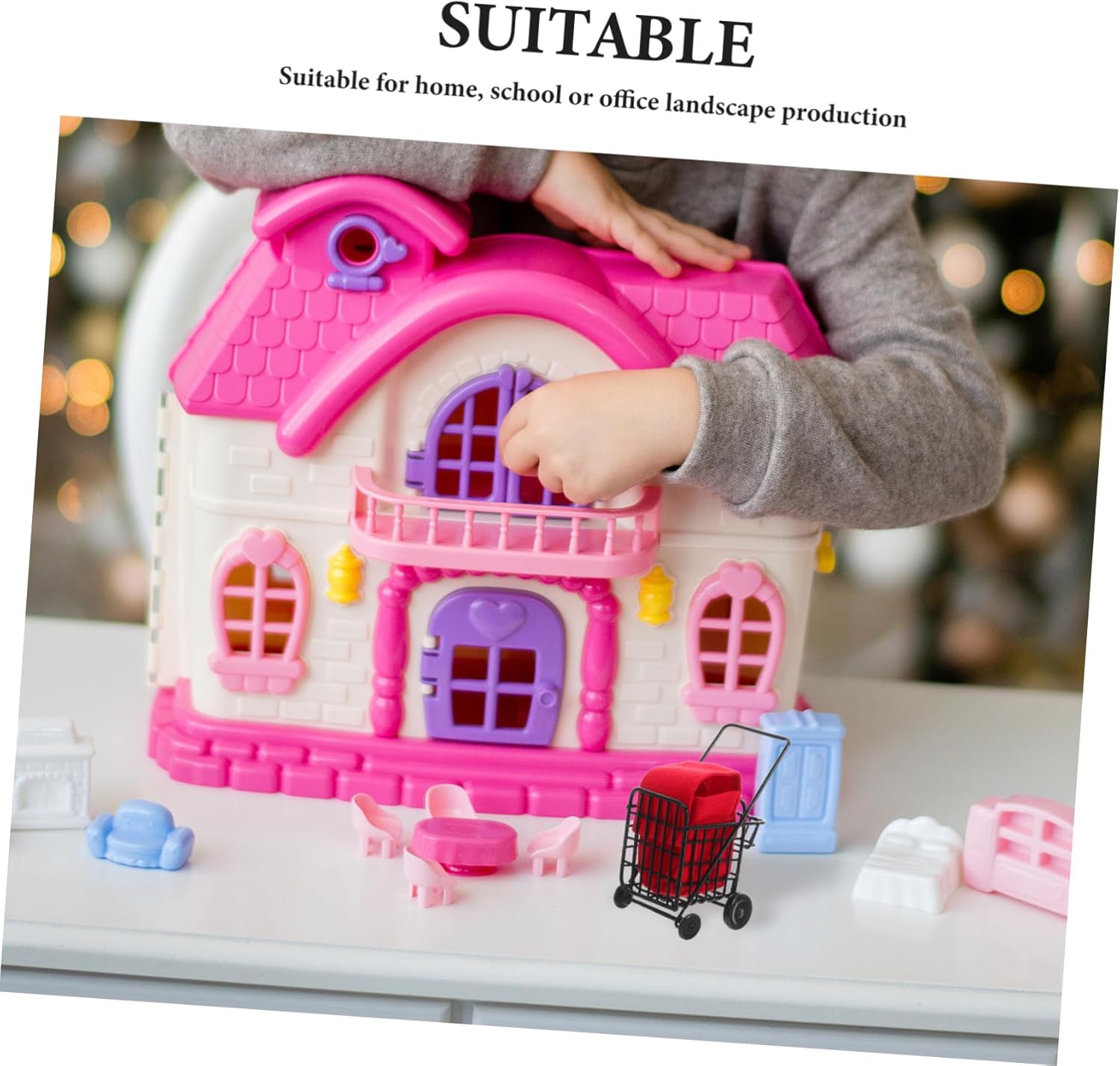 Robusta struttura in metallo: questo mini carrello della spesa in metallo nero è robusto, assicurando che rimanga un'aggiunta affidabile agli accessori in miniatura della tua casa delle bambole, al carrello della spesa per i più piccoli, al piccolo carrello della spesa Incoraggia la creatività: questo carrello della spesa ispira a creare i tuoi giochi di ruolo del negozio di alimentari, migliorando la tua immaginazione e le capacità di risoluzione dei problemi Robusto ed elegante: realizzato in robusto metallo nero, questo mini carrello della spesa è sia funzionale che visivamente accattivante e completa qualsiasi collezione di giocattoli del negozio di alimentari Autentico look in miniatura: il carrello della spesa in miniatura è progettato per assomigliare a un vero carrello della spesa del supermercato, che lo rende un complemento alle cucine in miniatura delle case delle bambole, mini carrelli della spesa e carrelli della spesa per l'esposizione di generi alimentari Applicazione versatile: dagli accessori in miniatura della casa delle bambole ai giocattoli del carrello della spesa per i più piccoli, questo è il mini carrello della spesa, un'aggiunta versatile a qualsiasi collezione o struttura di gioco, carrello della spesa, carrello in metallo con ruote