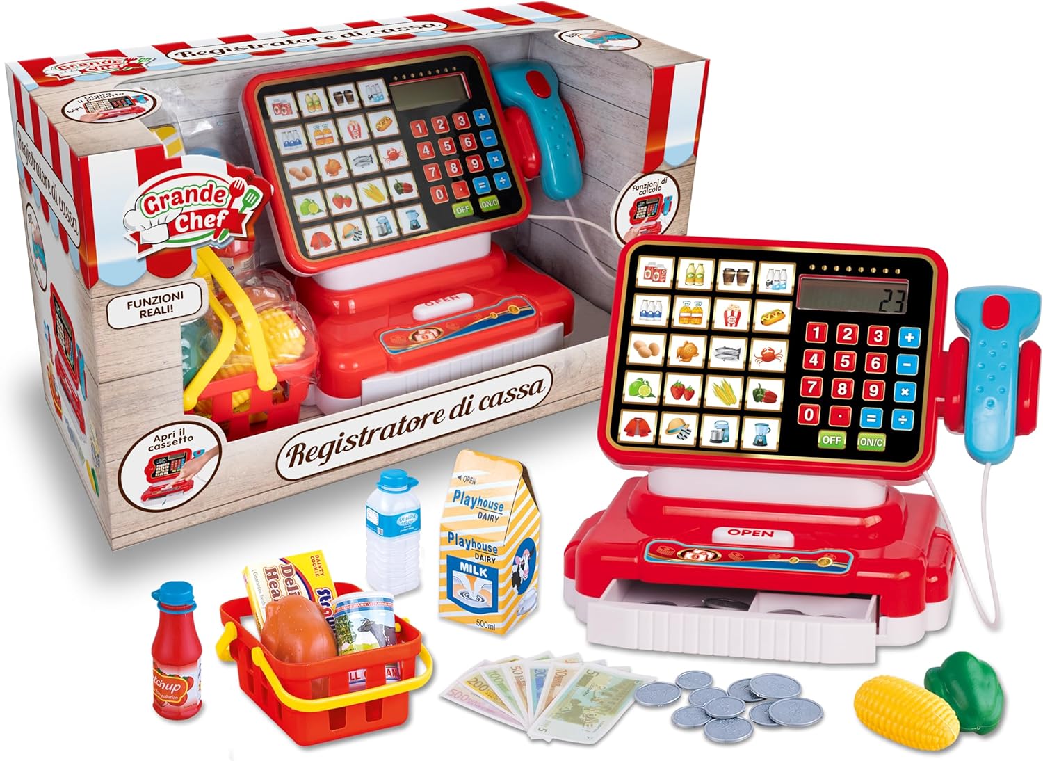 Divertimento sicuro: incoraggia il gioco di ruolo creativo con cibo realistico e giocattoli smontabili che stimolano la curiosità e l'immaginazione dei bambini. Avventura interattiva al supermercato: ispira il gioco di ruolo al supermercato con un'interazione coinvolgente, dotato di spazio di archiviazione a due livelli per una migliore organizzazione e più divertimento nel carrello della spesa dei bambini. Gioco adatto all'età: il robusto passeggino con ruote antiscivolo garantisce stabilità e divertimento durante le attività di sviluppo. Giocattolo didattico per migliorare il linguaggio: progettato per i piccoli esploratori, questo set di giochi di ruolo educativo combina un carrello della spesa con i giocattoli della spesa. Crea un ambiente stimolante per lo sviluppo del linguaggio naturale e lo sviluppo cognitivo attraverso scenari fantasiosi da supermercato. Giocattolo per le abilità quotidiane: consente ai bambini di mettere in pratica le abilità della vita attraverso il gioco di ruolo, il che lo rende l'idea regalo perfetta per i compleanni dei bambini e insegna giocosamente la responsabilità in modo da promuovere lo sviluppo