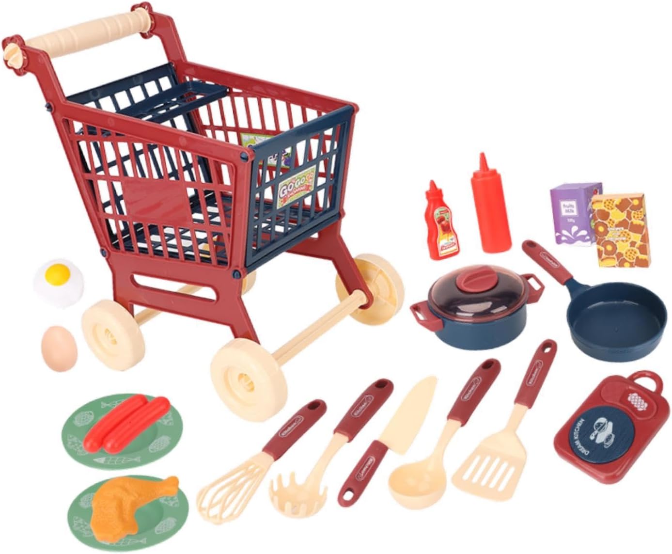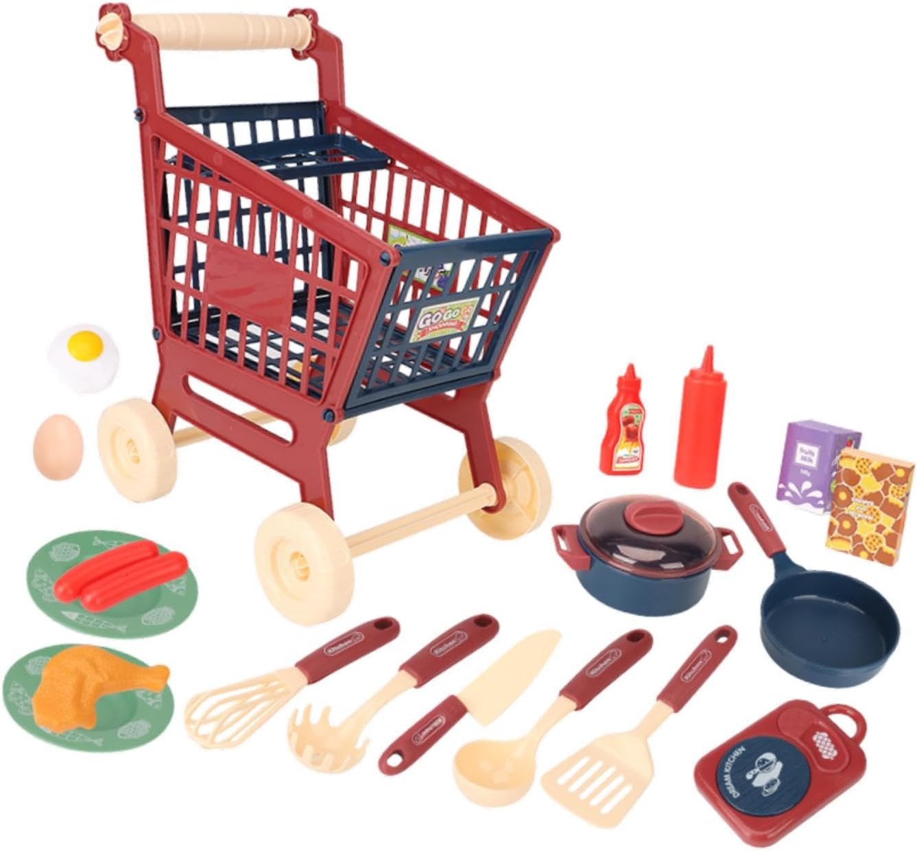 【Strumento educativo】: il nostro set da gioco per carrello della spesa per bambini è un'ottima risorsa per i bambini per apprendere le abilità di acquisto essenziali, rendendolo sia divertente che educativo 【Design unico】: realizzato con materiali in polipropilene resistenti, questo giocattolo da cucina è un regalo ideale per i compleanni, garantendo ore di apprendimento e gioco gioiosi per i bambini 【Decorativo】: Dotato di accessori da cucina realistici, questo set da gioco da cucina può anche essere utilizzato come un incantevole oggetto di scena fotografico, aiutando le foto del tuo bambino a distinguersi con creatività 【Soluzione di archiviazione】: il giocattolo educativo offre l'opportunità di riporre e organizzare piccoli oggetti, fungendo anche da supporto fotografico creativo 【Gioco fantasioso】: questo giocattolo per carrello della spesa per bambini offre una deliziosa esperienza di gioco di ruolo, fungendo sia da coinvolgente attività di gioco che da aggiunta a qualsiasi casetta da gioco, migliorandone e il realismo