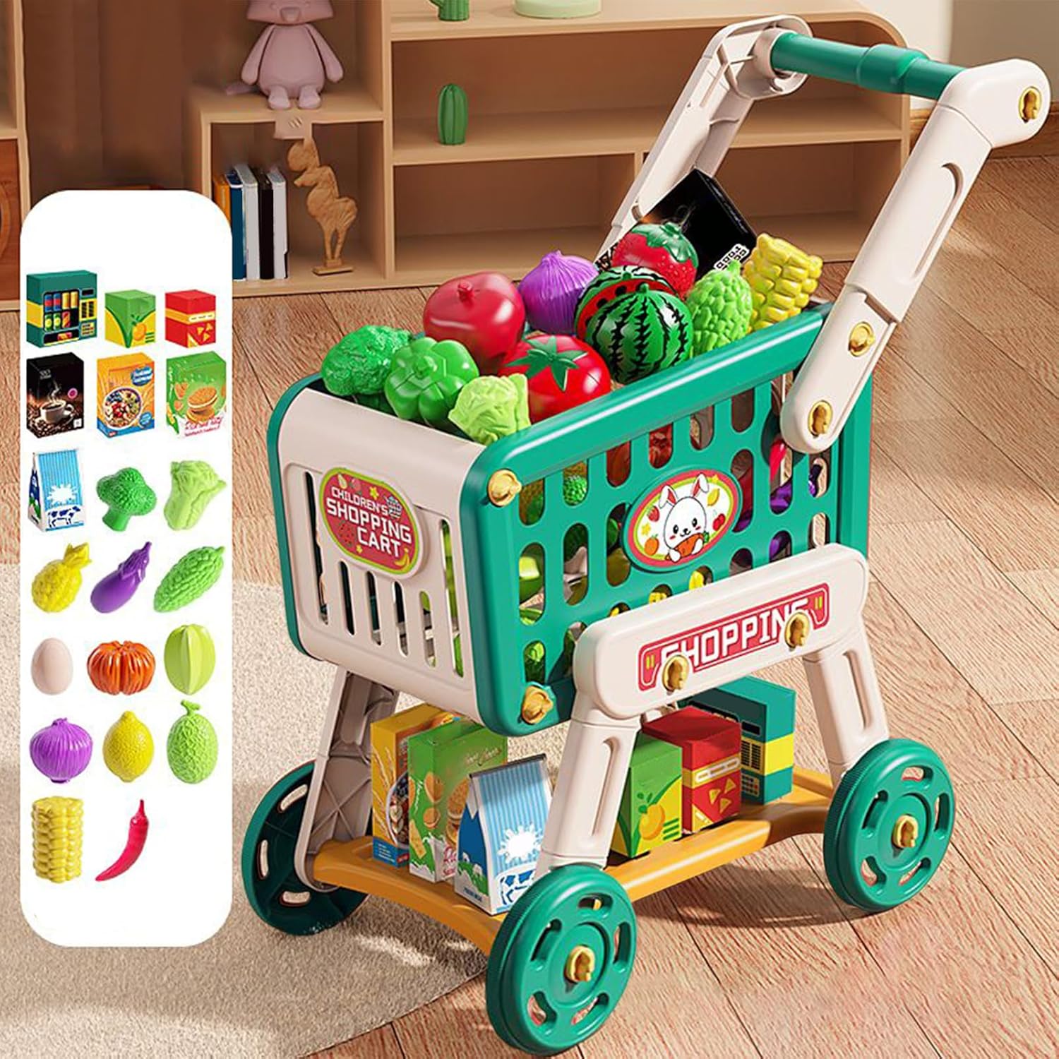 Sicurezza Assoluta: Carrello giocattolo bimbi con base ultra stabile e ruote antiscivolo per totale sicurezza, ideale per esperienze di gioco autonomo 18 in su Avventura Interattiva al Supermercato: Ispira giochi di simulazione da supermercato focalizzati sul gioco di ruolo, dotato di doppio piano per migliorare l'organizzazione e il divertimento con il carrello spesa bambini Esperienza Gioco Interattivo:Accende la creatività e supporta l'educazione precoce con questo carrello giocattolo, progettato per ispirare attività di ruolo che migliorano le competenze verbali tramite avventure simulate nel mercato con realistici. Divertimento Simbolico: Favorisce abilità pratiche e responsabilità attraverso il carrello giocattolo, offrendo un'idea regalo compleanno speciale che unisce esperienza educativa e gioco evolutivo per l'apprendimento delle competenze fondamentali nella prima infanzia con approccio coinvolgente Interesse Apprendimento Giocoso: Progettato per la sicurezza, garantisce ore di divertimento con cibi giocattolo realistici e frutta tagliabile, incoraggiando creatività e divertimento duraturo senza preoccupazioni