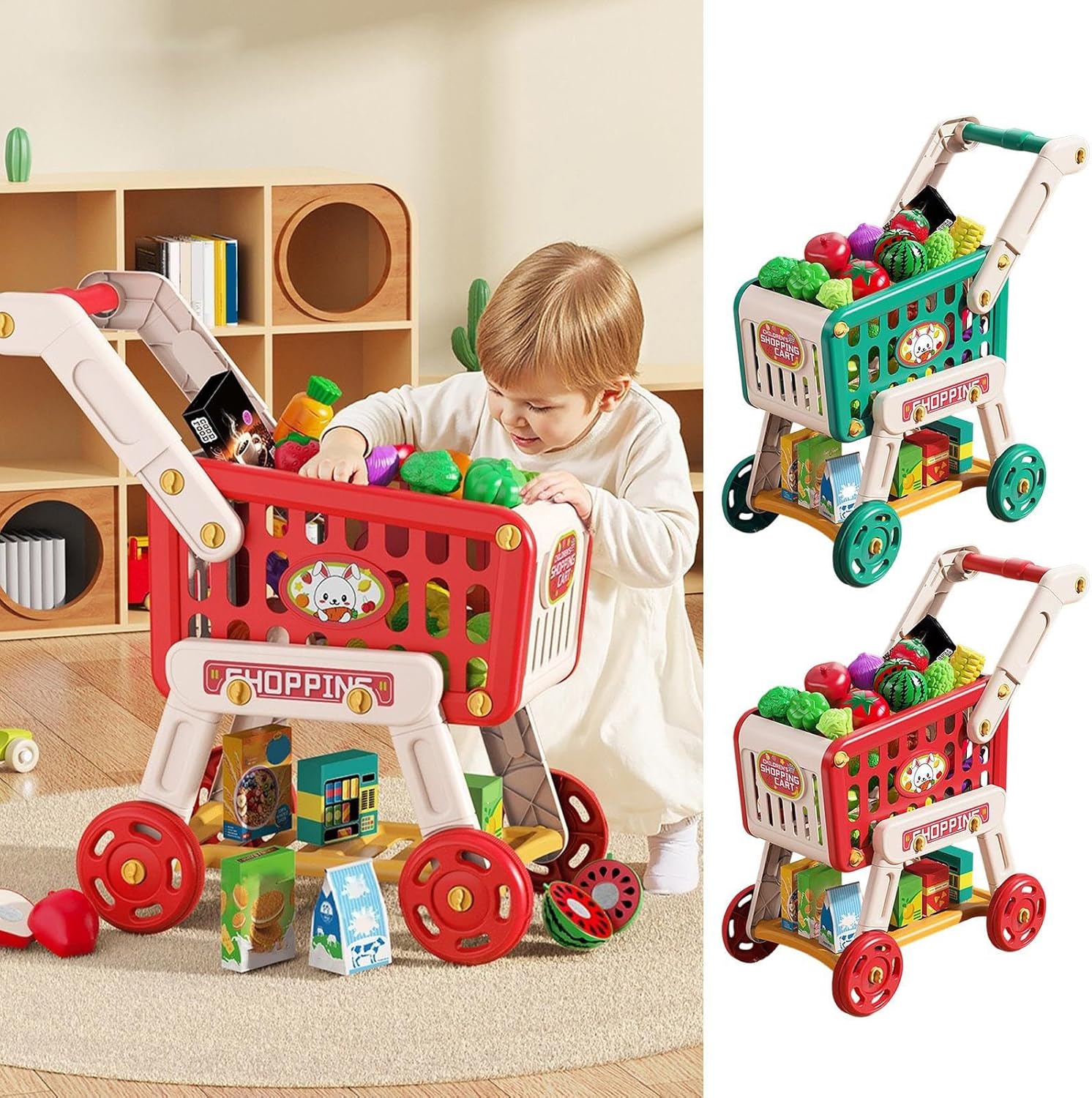 Carrello per la spesa per bambini Safe Toddler: Play appropriato all'età, il carrello offre una base stabile, ruote non slip e stoccaggio di smistamento, garantendo un'esperienza sicura e divertente per il bambino Fai finta di il divertimento dello shopping: supporta un gioco di ruolo coinvolgente e fa finta il divertimento del supermercato, fornendo un design da gioco e negozio che mantiene i giocattoli accessibili e lo shopping gioca eccitante Materiali giocattoli di lunga durata: il carrello per bambini è dotato di giocattoli di frutta slittabile e cibo realistico da gioco, promuovendo l'esplorazione pratica per suscitare interesse per l'apprendimento durante le attività di gioco di ruolo Life Skills Toy: incoraggia i bambini ad imparare le abilità della vita attraverso la finzione di shopping, rendendolo un'idea del regalo di compleanno perfetta e giocattolo di sviluppo per i bambini per esplorare la responsabilità in modo divertente Esperienza di gioco interattivo: scintilla creatività e supporta l'educazione precoce con questo carrello per bambini, realizzato per ispirare il gioco educativo e migliorare le abilità linguistiche attraverso avventure divertenti e coinvolgenti