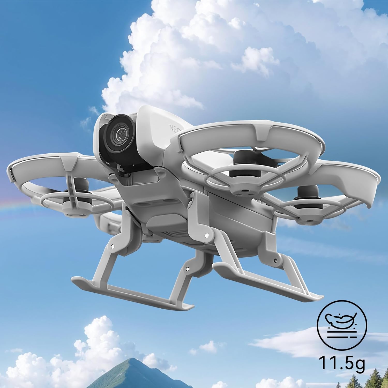 Accessori Neo Drone: questo kit per carrello di atterraggio è compatibile con DJI Neo Aumenta l'altezza: aumenta efficacemente l'altezza tra il drone DJI Neo e il terreno (circa 25 mm), proteggendo il corpo del drone, il giunto cardanico e le eliche, rendendo il decollo e l'atterraggio del drone più sicuri Carrello di atterraggio portatile: questo accessorio DJI Neo adotta un design pieghevole e a sgancio rapido, facile da trasportare, riporre, installare o smontare senza attrezzi Design leggero: il peso del carrello di atterraggio è di soli 11,5 g, che non aumenta il carico della fusoliera, non comprometterà la resistenza di volo del tuo DJI Neo Pacchetto incluso: 1 x carrello di atterraggio per DJI Neo (drone non incluso)