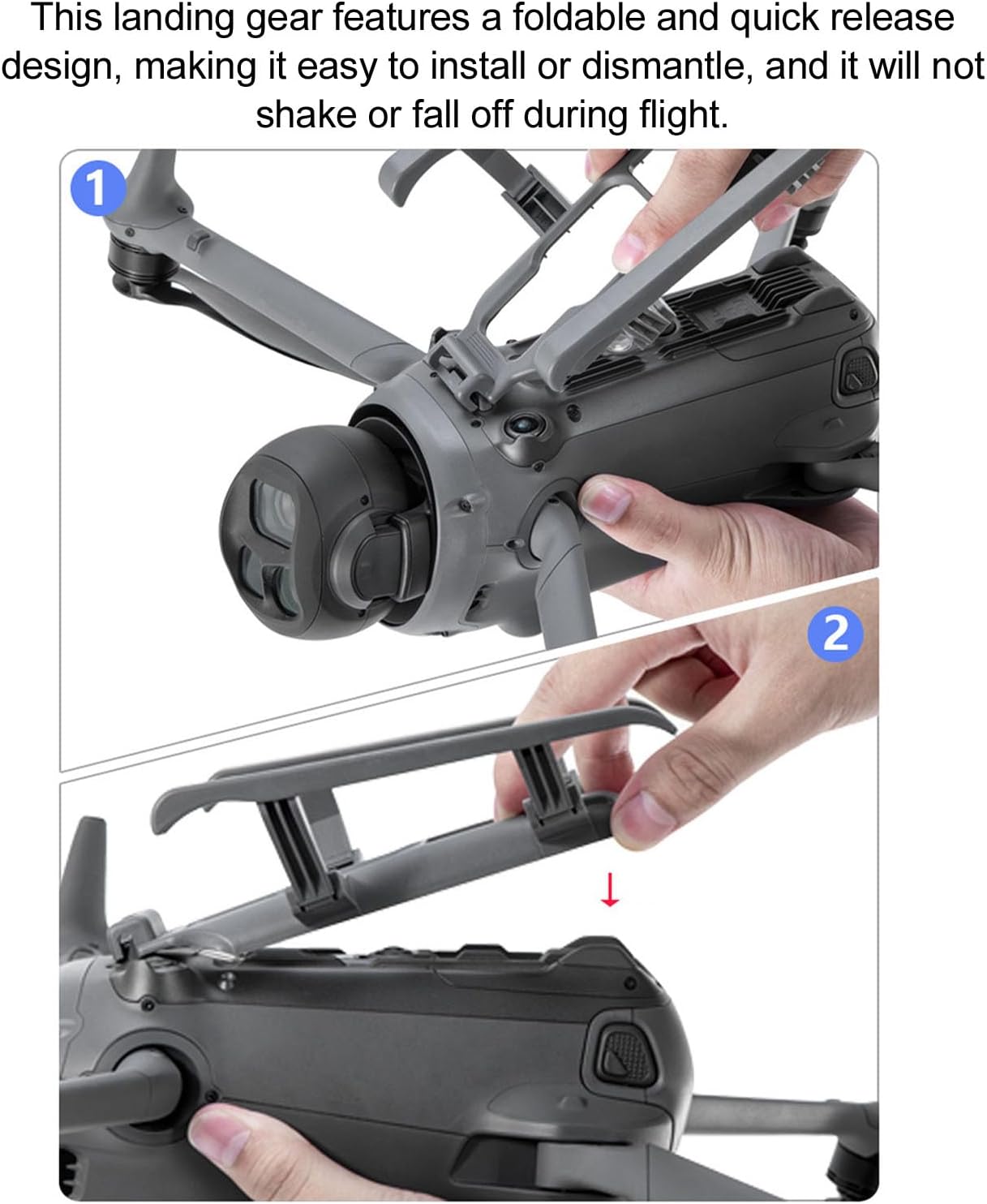 Design leggero: questo carrello di atterraggio è realizzato in addominali, materiale per PC, robusto e leggero, non aggiungere un onere extra al volo dei droni, un uso stabile per un volo a lungo tempo, garantendo che il tuo drone rimanga agile e la sua velocità di volo non è influenzata. Riduzione dell'impatto: aumentare la distanza tra il drone e il terreno di 30 mm, il che riduce la forza di impatto quando si toglie o l'atterraggio su superfici irregolari. Può proteggere per il corpo dei droni per prevenire danni. Design pieghevole: la nostra gamba di carrello di atterraggio drone presenta un design a rilascio pieghevole e rapido, è conveniente da trasportare e facile da installare o smontare, non danneggia il drone. Compatibilità: il carrello di atterraggio è progettato per adattarsi a 4 Pro, garantendo la compatibilità e un adattamento sicuro. Non ostruisce le luci degli indicatori, le prese d'aria di raffreddamento, i sensori inferiori e il di visione. La batteria può essere rapidamente sostituita senza smontaggio. Stabilità protettiva: il design simile a SLED non contribuisce alla stabilità del drone durante il funzionamento del terreno, ma funge anche da guardia per i componenti sensibili del drone contro superfici ruvide e potenziali impatti.
