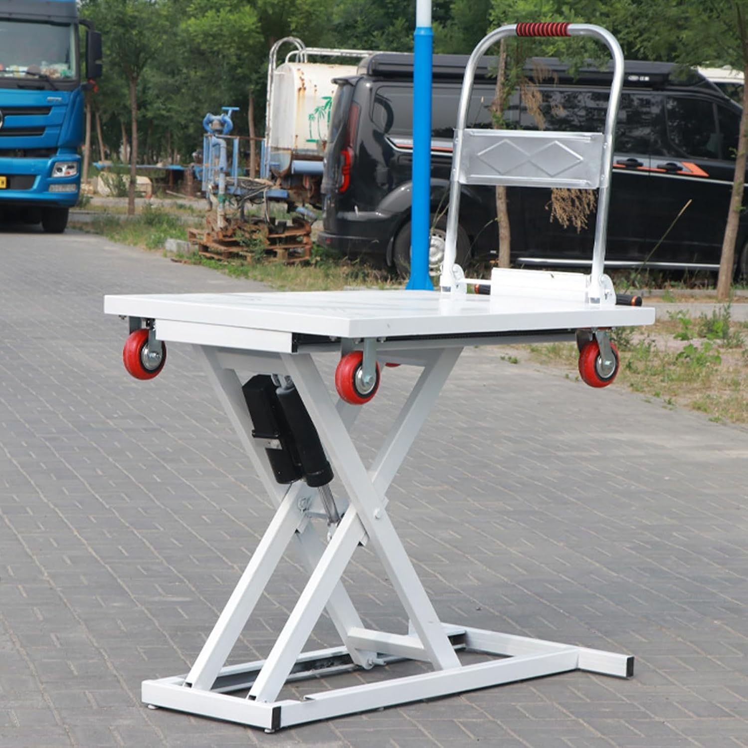 – Niente più fatica per l’operatore! Il nostro carrello con tavolo elevabile idraulico è dotato di una comoda maniglia operativa e di un freno a pedale, che facilitano la regolazione dell'altezza durante il lavoro. – Trasporto senza preoccupazioni! Grazie alle ruote piroettanti a scorrimento fluido, questo tavolo elevatore elettrico a forbice è progettato per una comoda mobilità, consentendoti di trasportare facilmente strumenti e materiali. – Versatile e affidabile: questo sollevatore idraulico è perfetto per una varietà di applicazioni, sia che tu stia sollevando macchinari pesanti o eseguendo la manutenzione ordinaria: si adatta alle tue esigenze! – Realizzato con materiali durevoli, il nostro carrello elevatore a 4 ruote garantisce stabilità e sicurezza durante la movimentazione di carichi pesanti. Investi in una qualità che duri a lungo e ti permetta di lavorare in modo efficiente. – Sosteniamo il nostro prodotto! Goditi la tranquillità del nostro servizio clienti di supporto, che risponderà prontamente a tutte le domande e dubbi sulla tua piattaforma elevatrice idraulica.