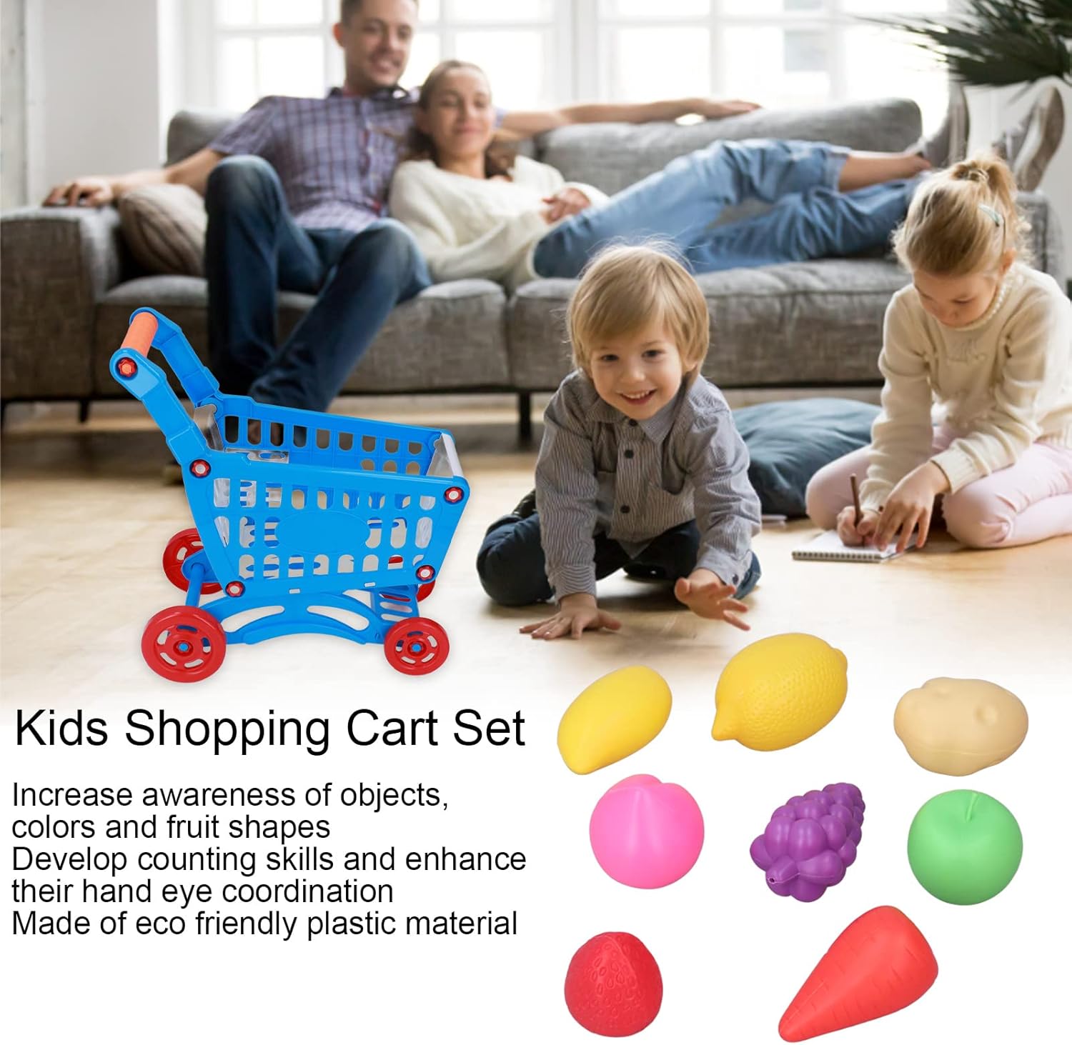 [Giocattolo educativo ideale]: impegnarsi nell'educazione alla prima infanzia con questo carrello interattivo, sviluppando abilità di conteggio e migliorando il coordinamento degli occhi. [Sviluppo dell'apprendimento]: migliorare la consapevolezza degli oggetti, i colori e le forme di frutta con questo giocattolo di carrello dei supermercati simulati per i bambini. [Materiale durevole]: realizzato in plastica ecologica, questo set di carrelli comprende frutta, cestino e accessori tagliati per il gioco di lunga durata. [Play interattivo]: tieni i bambini lontani dall'elettronica mentre si legano con i genitori attraverso il gioco fantasioso con questo giocattolo del carrello per la spesa. [Incoraggia l'immaginazione]: stimolare la creatività e le capacità di gioco di ruolo con questo carrello della spesa super realistica, promuovendo il gioco costruttivo per i bambini.