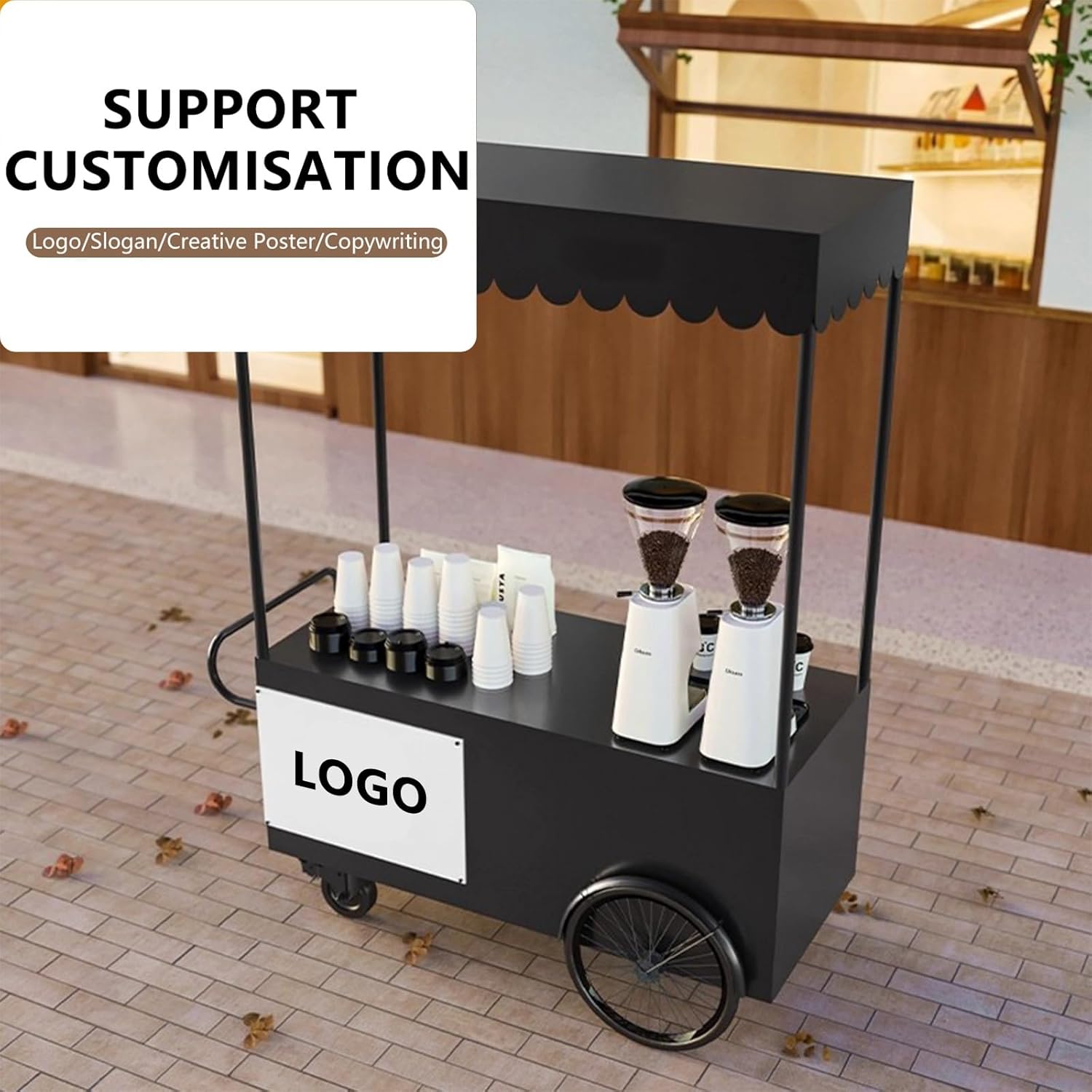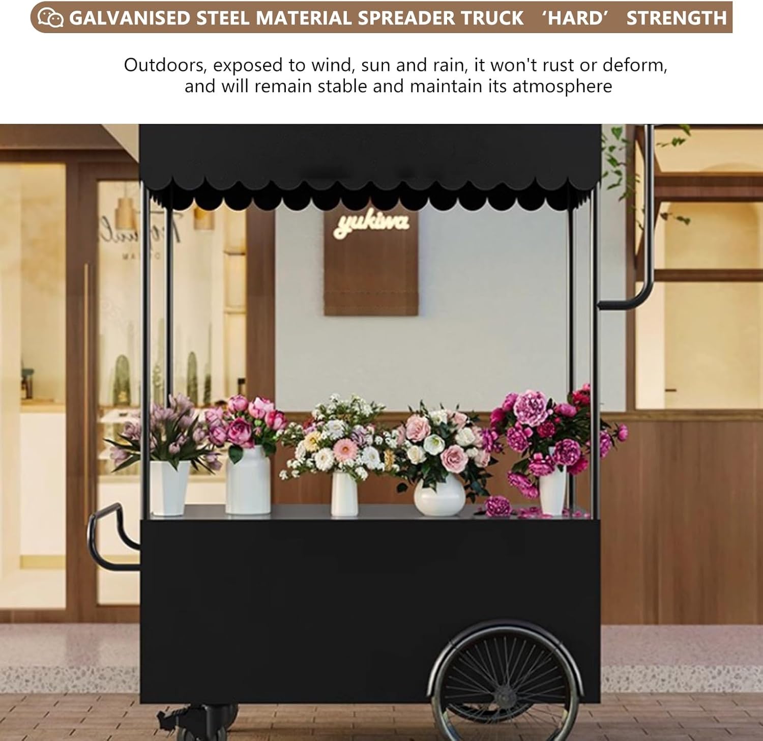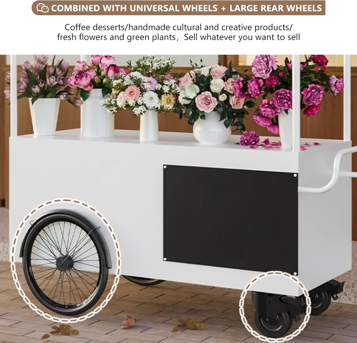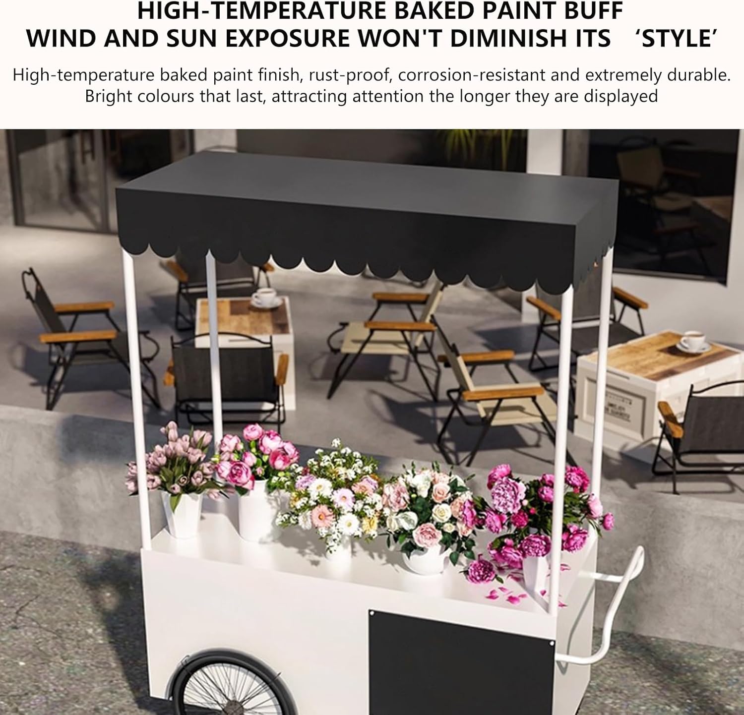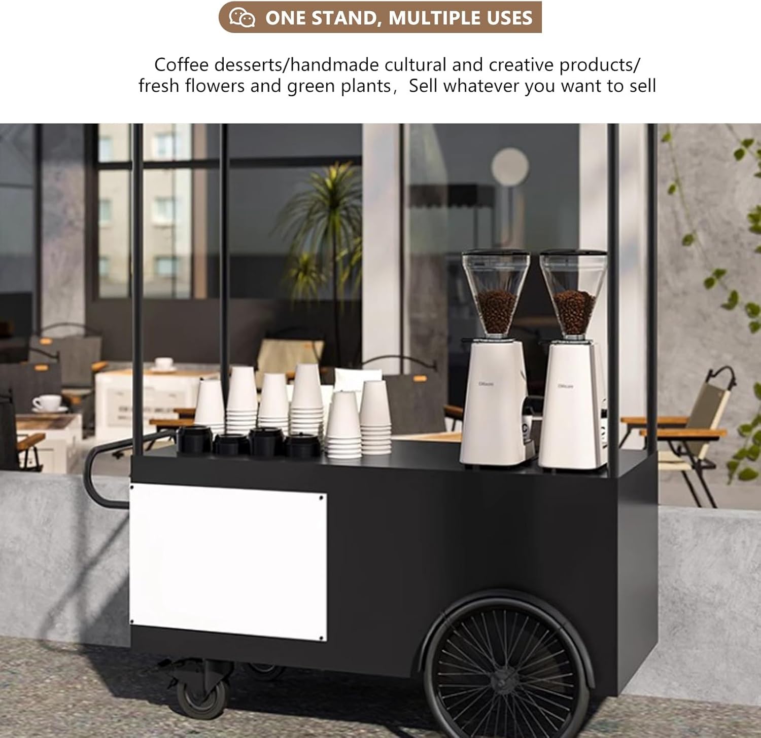 PERSONALIZZABILE: Aggiungi il tuo logo, slogan o design creativo al carrello. Rendi unico il tuo stand e attrai i clienti. Se hai bisogno di personalizzazioni, contattaci ACCIAIO ZINCATO RESISTENTE: Il carrello è realizzato in acciaio zincato, resistente alla ruggine, alle deformazioni e ai danni causati dagli agenti atmosferici. Molto adatto for l'uso esterno, la luce solare, la pioggia o il vento non ne comprometteranno la stabilità o l'aspetto FACILE DA SPOSTARE: Dotato di ruote universali e ruote posteriori di grandi dimensioni. Anche su terreni irregolari, il carrello può essere spostato agevolmente nelle aree ad alto traffico. Facile da spostare for massimizzare le opportunità di vendita VERNICE for FORNO AD ALTA TEMPERATURA: La vernice for forno ad alta temperatura mantiene la superficie lucida e resistente. La prevenzione di ruggine, corrosione e scolorimento garantisce che il tuo carrello di vendita abbia un aspetto attraente for molti anni e attragga i clienti a lungo termine DISTRIBUTORE AUTOMATICO MULTIUSO: Vende di tutto, dal caffè ai dolci, dall'artigianato ai fiori. Un unico stand può soddisfare tutte le esigenze della tua attività, adattandosi a diversi prodotti ed eventi