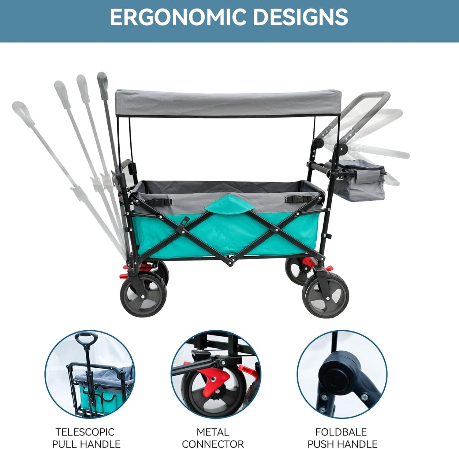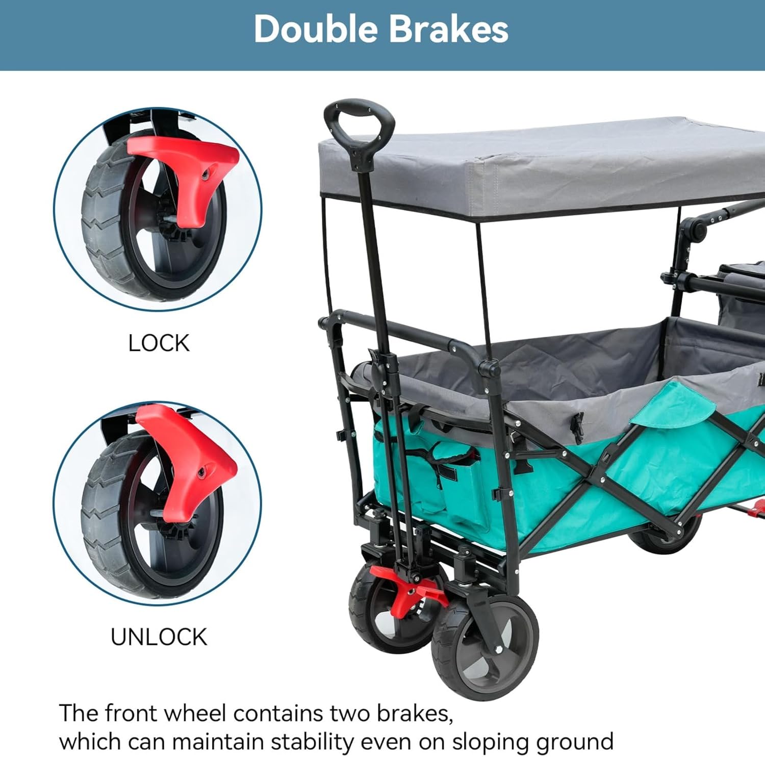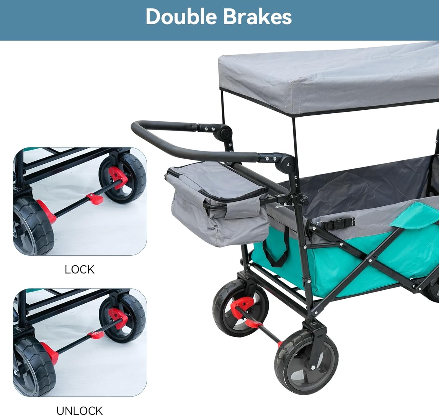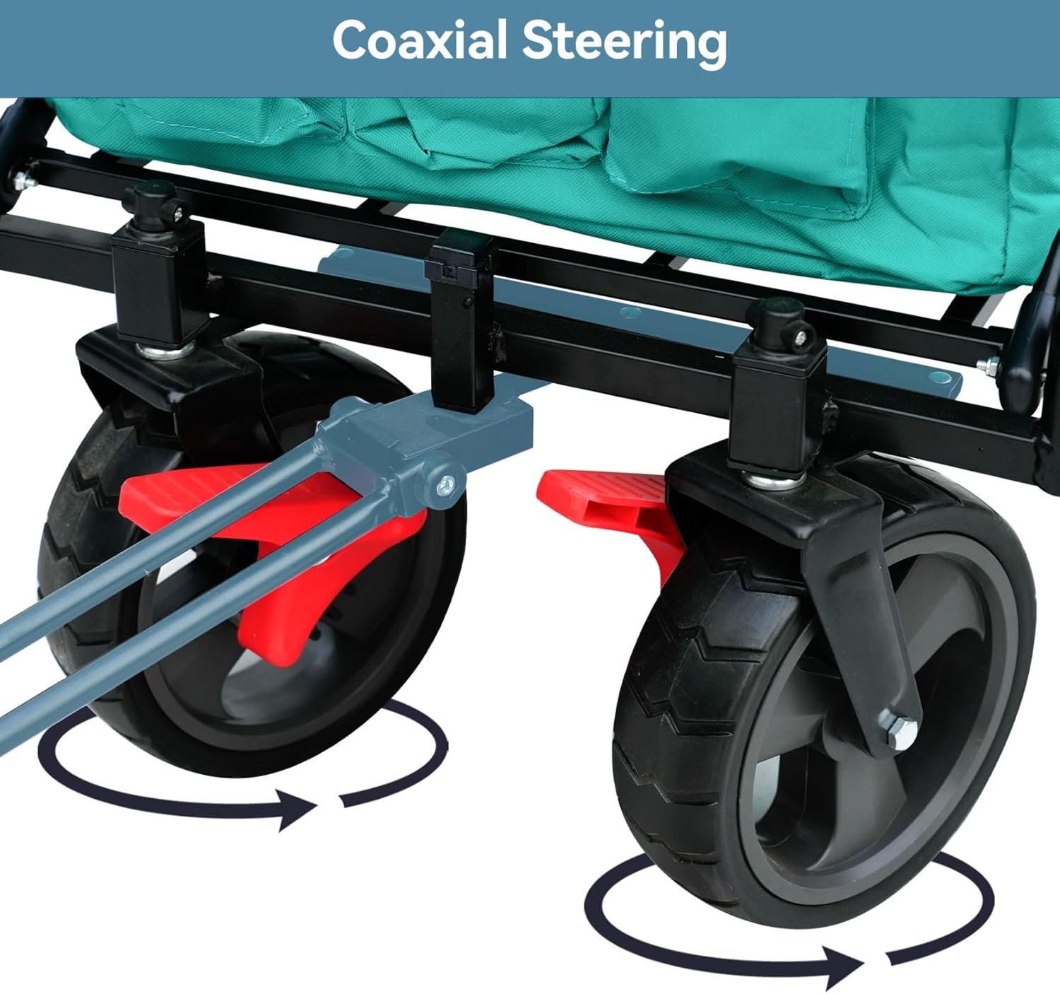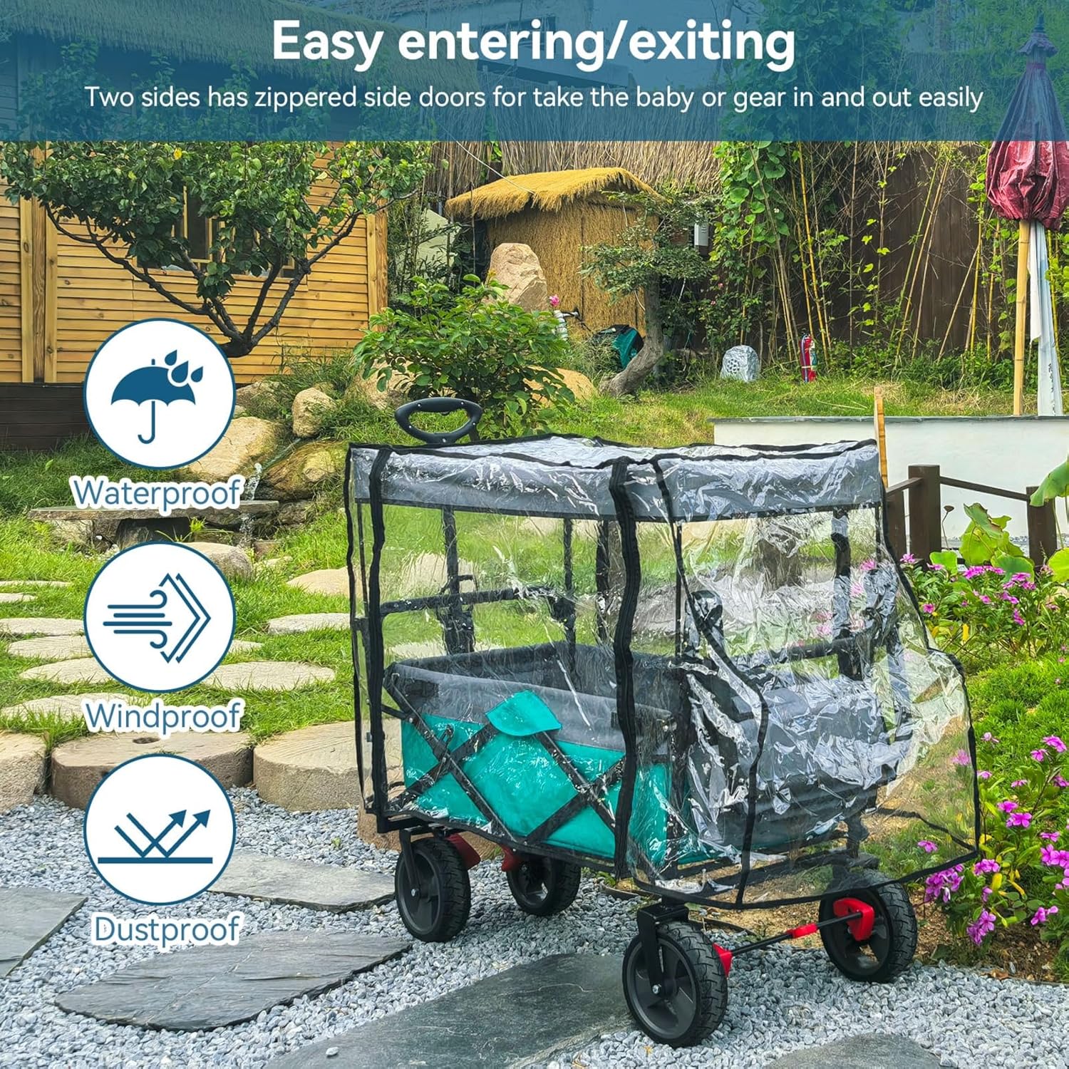 Multifunzionale e salvaspazio: il carretto si piega in pochi secondi e si ripone facilmente - ideale per il campeggio, le gite, lo shopping o il giardino. Attrezzato per i massimi standard di sicurezza nell'utilizzo quotidiano. Robusto e resistente: i materiali di alta qualità e la robusta struttura in acciaio consentono un'elevata resilienza, adatto a carichi pesanti. Tetto e accessori comodi: il tetto rimovibile protegge dal sole e dalla pioggia, mentre pratiche tasche e supporti forniscono bevande e accessori. Ruote XXL sterzanti: le grandi ruote anteriori ruotano con il manubrio, per un controllo preciso e una facile manovrabilità su qualsiasi superficie come sabbia, prato o ghiaia. Include copertura antipioggia: il carretto è dotato di un tettuccio aggiuntivo realizzato su misura che protegge in modo affidabile dalla pioggia.