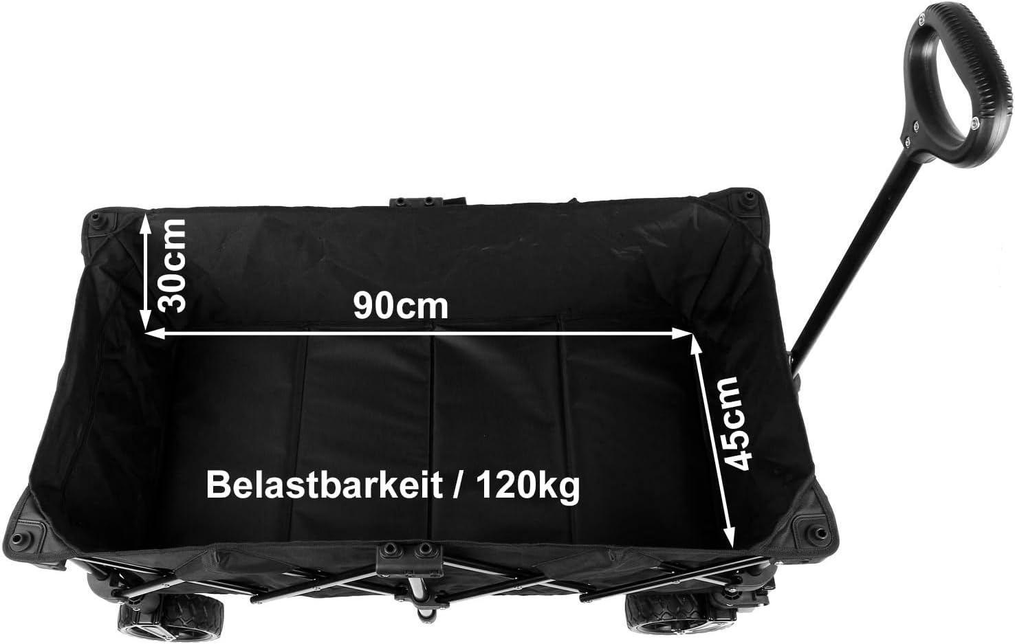 Questo grande carretto pieghevole offre spazio e molto comfort grazie all'imbottitura del telaio. Con stabile telaio tubolare in acciaio max. Peso del carico utile 120 kg. Grandi dimensioni: da aperto il carretto misura L95 x L50 x H100 cm, mentre da chiuso le dimensioni sono solo H70 x L36 x L23 cm. Ruote robuste: le ruote in PU da 17 x 5,5 cm garantiscono una guida fluida e stabile, anche su terreni irregolari. Pneumatici anteriori girevoli a 360 gradi con freno. Il carretto può essere ripiegato e riposto per risparmiare spazio in pochi semplici passaggi. Leggero: con un peso netto di 10 kg, questo carretto è facile da trasportare e trasportare.