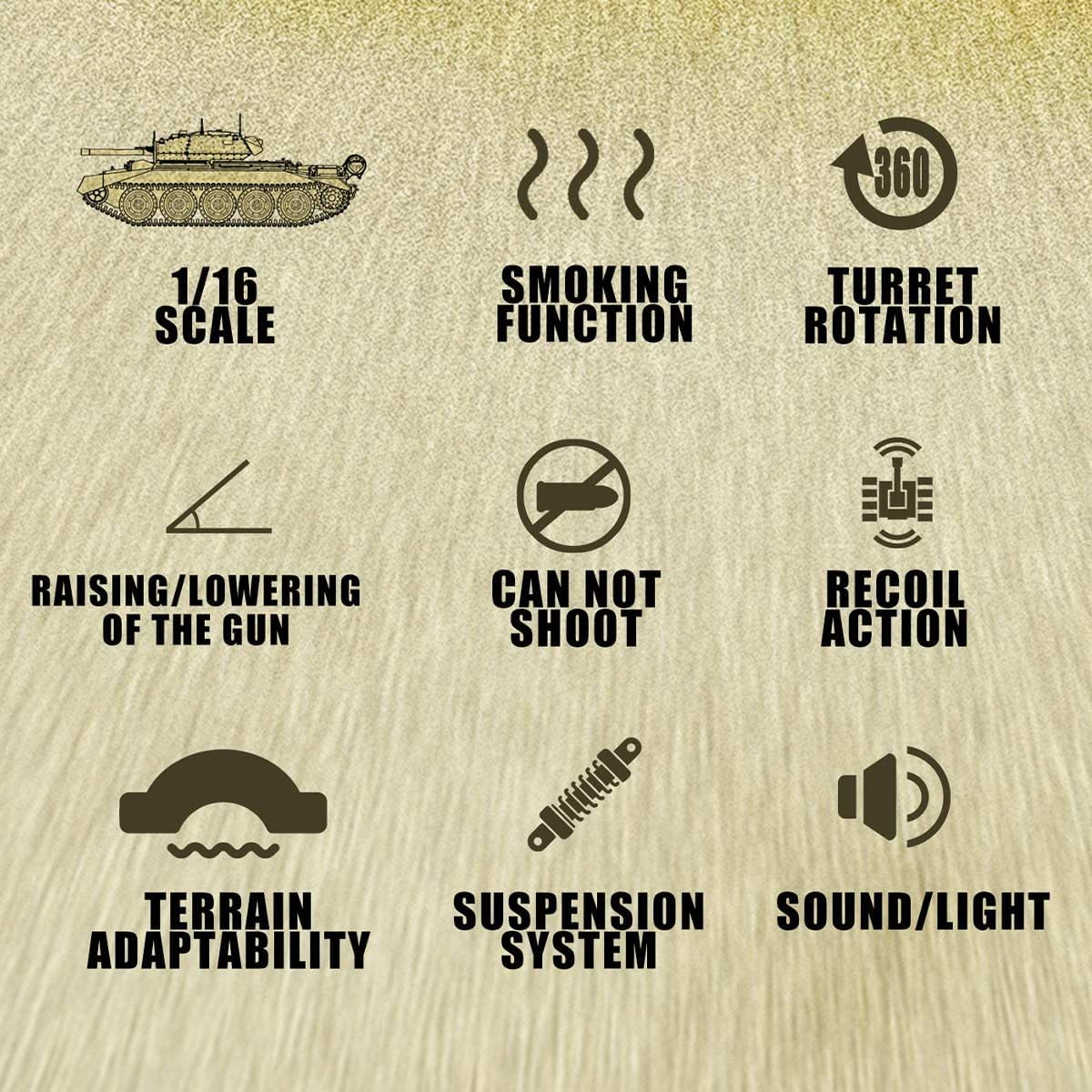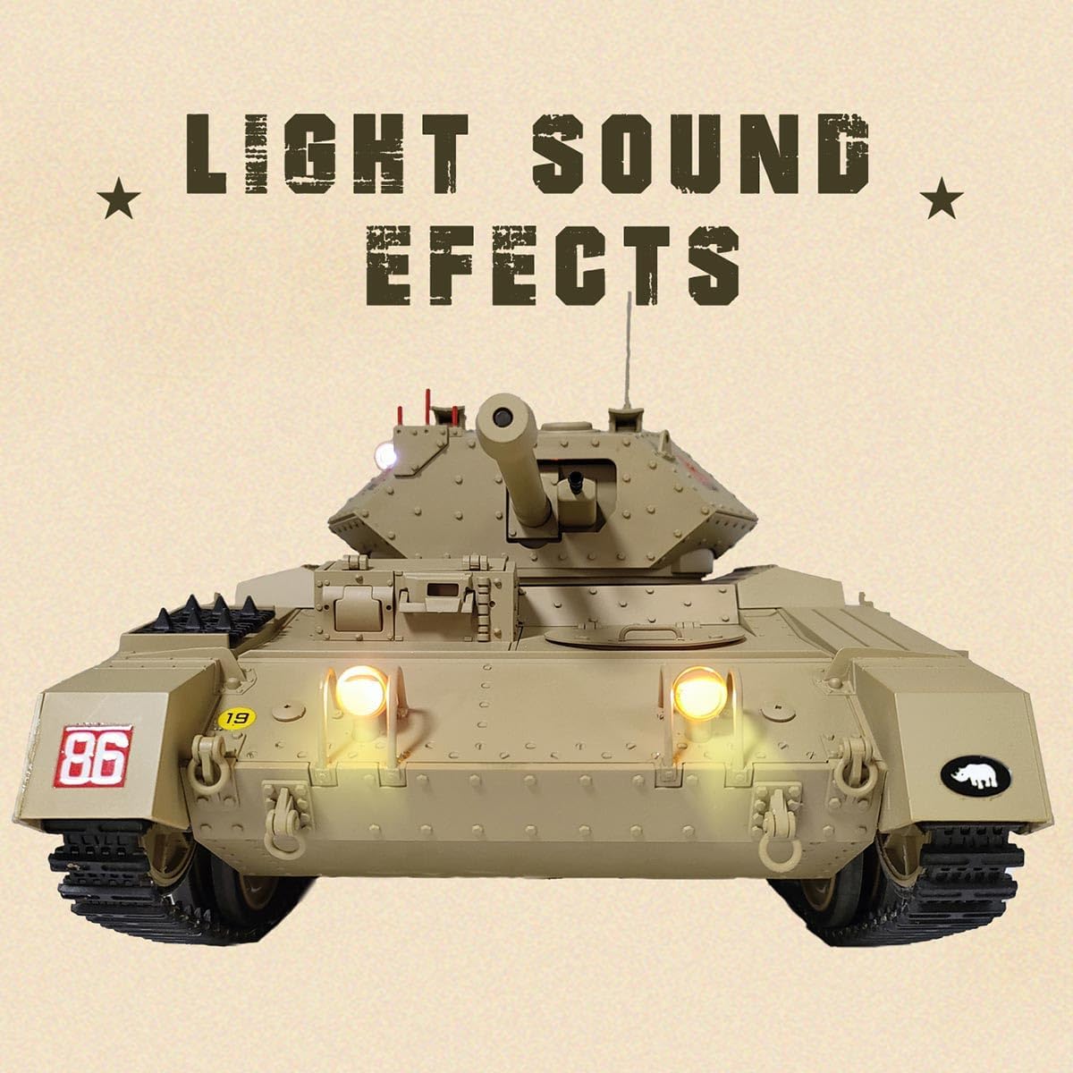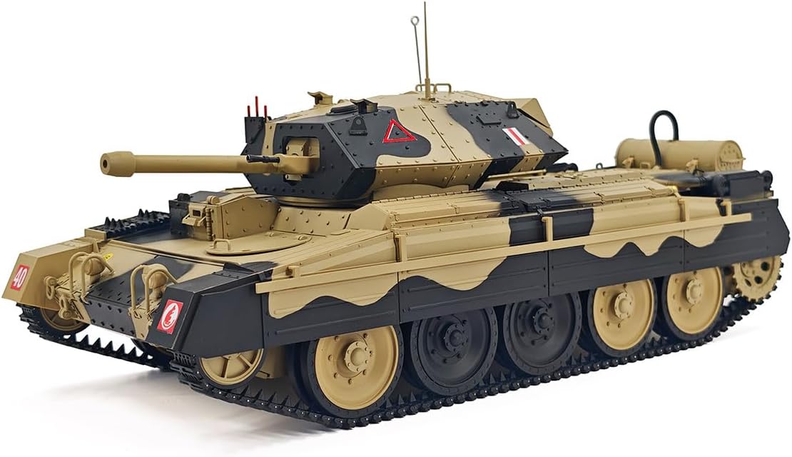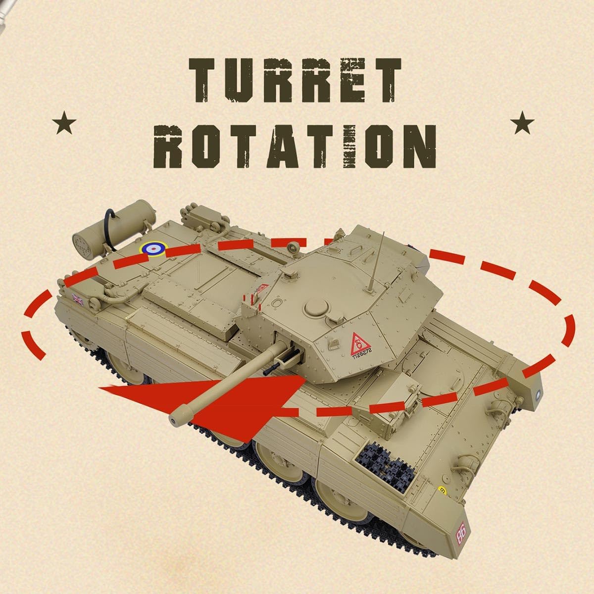 REALISMO E CONTROLLO SENZA PRECEDENTI: controlla il tuo carro armato britannico Crusader RC in scala 1:16 con assoluta precisione. L'avanzato sistema di controllo remoto 2.4G Full-Proporional & Sound and Lights consente uno sterzo avanti, indietro, regolare e una vera rotazione a 360° sul posto, consentendo di navigare su percorsi complessi e spazi ristretti proprio come un vero comandante di carri armati ESPERIENZA IMMERSIVA DI BATTLEFIELD: Prova l'emozione del combattimento corazzato! Questo modello presenta suoni autentici del motore, effetti di fuoco con un'azione di rinculo realistica e flash della museruola e un generatore di fumo funzionale per effetti di scarico (olio di fumo venduto separatamente). Combinato con un'illuminazione realistica, crea un'esperienza multisensoriale ideale per hobbisti e collezionisti di modelli di carri armati (RTR) CARATTERISTICHE AUTENTICHE E COSTRUZIONE ROBUSTA: Progettato per realismo e durata, questo carro armato RC vanta una torretta rotante a 360° con anello di contatto, un cannone elevatore a 30°, binari regolabili e ruote stradali rivestite in gomma per una trazione superiore. È dotato di robusti componenti interamente in metallo e minigonne laterali opzionali per un aspetto realistico e prestazioni su tutti i terreni Modalità a doppia velocità e protezione avanzata: scegli il tuo stile di guida con le modalità a doppia velocità e la simulazione del rinculo. Usa la "Modalità simulazione" per un ritmo realistico e controllato o passa a "Full Speed" per un'azione più dinamica. Il serbatoio include circuiti di protezione integrati per prevenire sovraccarico, sovracorrente e danni ad alta temperatura, garantendo un funzionamento sicuro e affidabile PRONTO PER L'USCITA E TELECOMANDO INTELLIGENTE: questa è la comoda versione RTR (Ready-to-Run), il che significa che puoi iniziare a giocare immediatamente. Il sofisticato telecomando a 15 canali offre commutazione delle funzioni, avvisi di batteria scarica e può memorizzare le impostazioni per un massimo di tre serbatoi. Dispone di controllo totale stick e opzioni di doppia alimentazione per una riproduzione prolungata