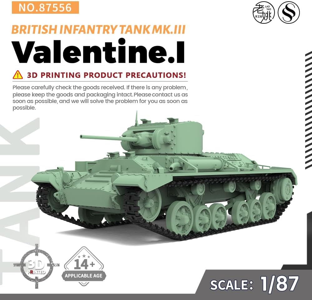 Carro armato dell'esercito non verniciato Kit modello militare ferroviario in scala 1/87 HO British Valentine.I Carro armato di fanteria Mk.III