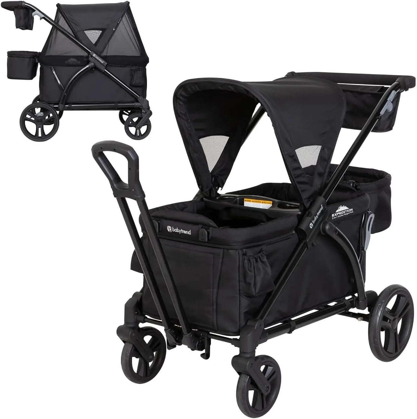 Expedition 2in1 Camping Wagon PLUS, Ultra Black La maniglia di traino consente al camper di trasformarsi dalla modalità "spinta" a quella di carro INCLUSO TAPPETINO: cuscino extra che si trasforma in materassino da lettino Il cestino pieghevole può essere utilizzato nella parte anteriore o posteriore del carro. Vano di carico super ampio con sedili integrati per due, inclusa cintura di sicurezza a 3 punti. Le soluzioni di stoccaggio includono vassoi per genitori e bambini con 2 portabicchieri e console centrale, nonché 2 portabicchieri aggiuntivi all'esterno dell'auto