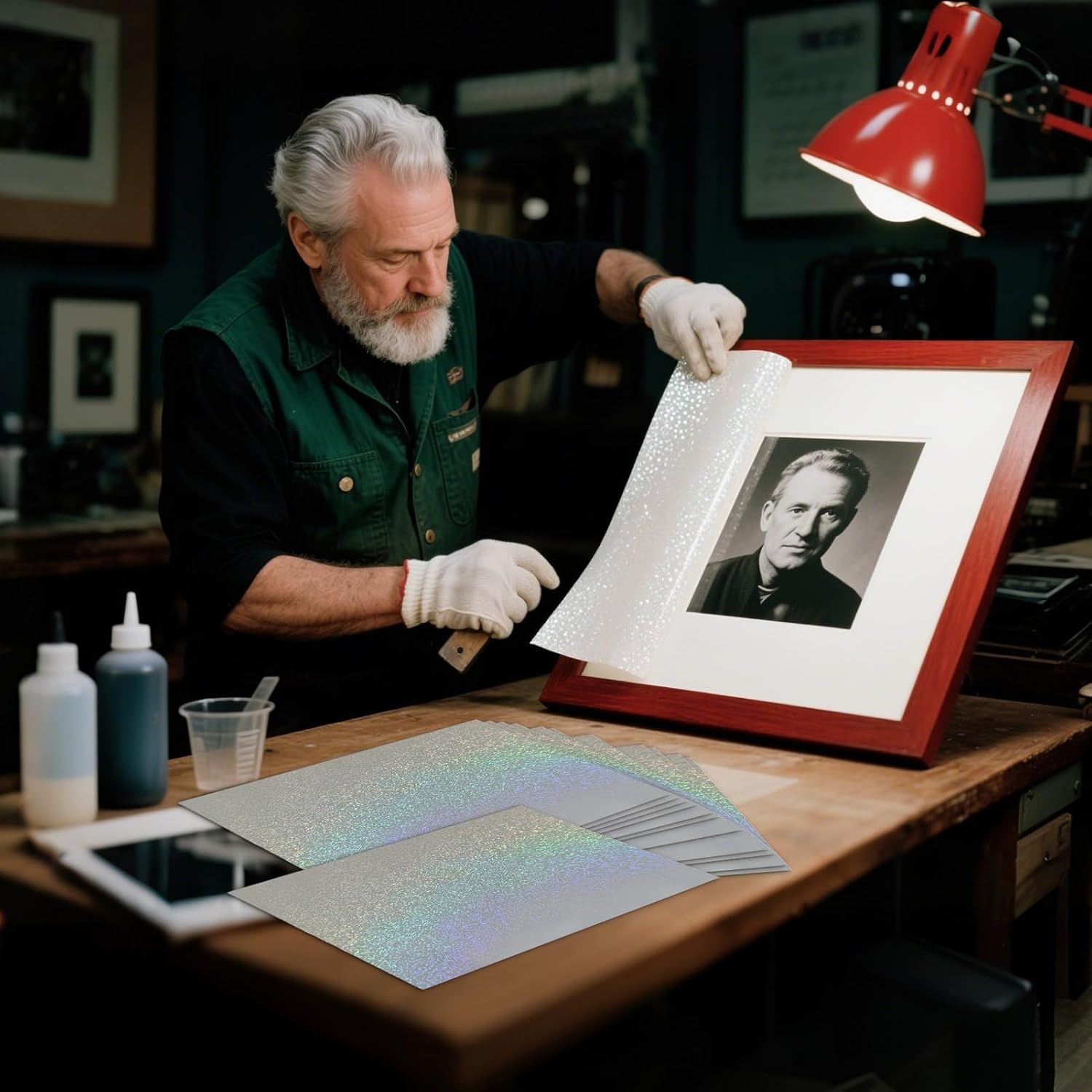 Riflesso mutevole: la trama olografica offre una variazione accattivante di brillantezza da diverse angolazioni di illuminazione, una scelta versatile per abbellire i progetti artistici con un impegno visivo dinamico e attraente. Applicazione semplificata: la carta autoadesiva olografica utilizza completamente il foglio A4 standard con adesione uniforme, per un utilizzo e la massima efficienza. Effetto olografico durevole: il design composito multistrato incorpora uno strato scintillante olografico brillante, resistente ai graffi e all'usura, mantenendo la sua lucentezza e attrattiva nel tempo senza sbiadire. Adesivo semplificato: consente un montaggio rapido di foto e carte grazie alle proprietà autoadesive, eliminando qualsiasi necessità di strumenti aggiuntivi o colla disordinata durante l'installazione Affidabilità e protezione: struttura protettiva affidabile che impedisce deformazioni e danni, garantendo una resistenza ottimale all'acqua e alla polvere per adesivi sempre piatti e intensi visivamente