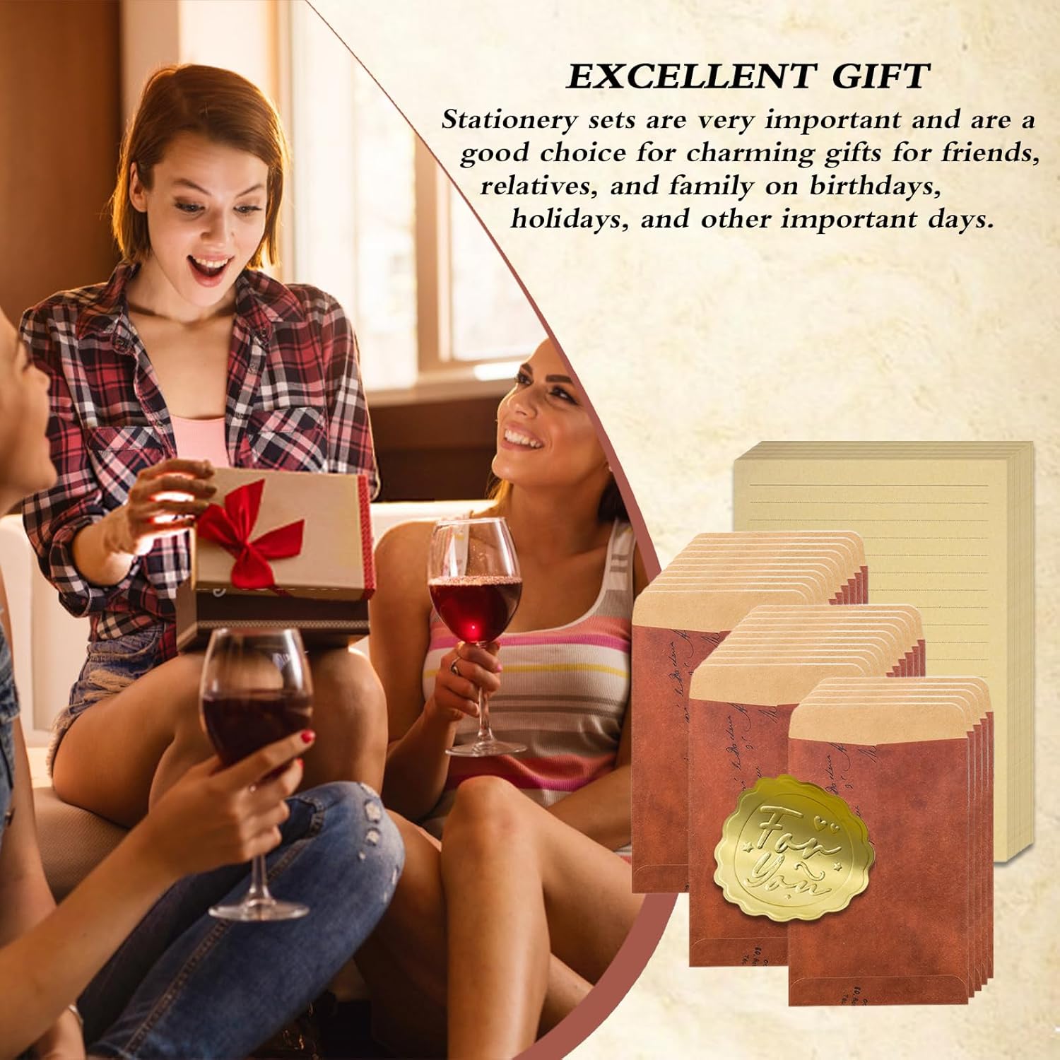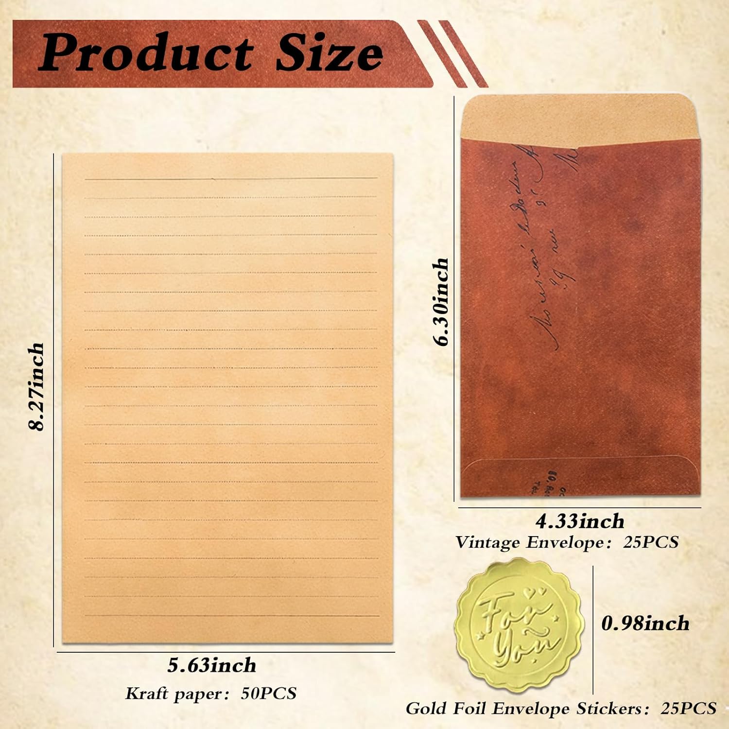 Pacchetto Completo: Questo set include 50 fogli di carta da lettere A5 con linee e 25 buste da 1611 cm. Completo di 25 adesivi in foglia d'oro 'for you', permette varie combinazioni secondo le tue esigenze. Design Vintage: Il set da lettere presenta un design con motivi, colori e abbinamenti vintage, per soddisfare i tuoi diversi requisiti ed esaltare il tuo stile unico. Carta di Qualità: Le lettere e le buste sono realizzate con carta di alta qualità, leggera e liscia al tatto, offrendoti un'esperienza di scrittura confortevole e senza sforzo. Adatto per Tutti: Indipendentemente dal genere, uomini o donne, questo set da lettere è l'accessorio perfetto per la tua scrittura. Versatile: Perfetto per l'uso in ufficio, a casa, a scuola, in negozi, in uffici postali, in negozi di regali, ristoranti ecc. Ideale per ringraziamenti, auguri, inviti, lettere d'amore, poesie e molto altro. Ideale per occasioni speciali come la Festa della Mamma, il Natale, il Ringraziamento ecc.