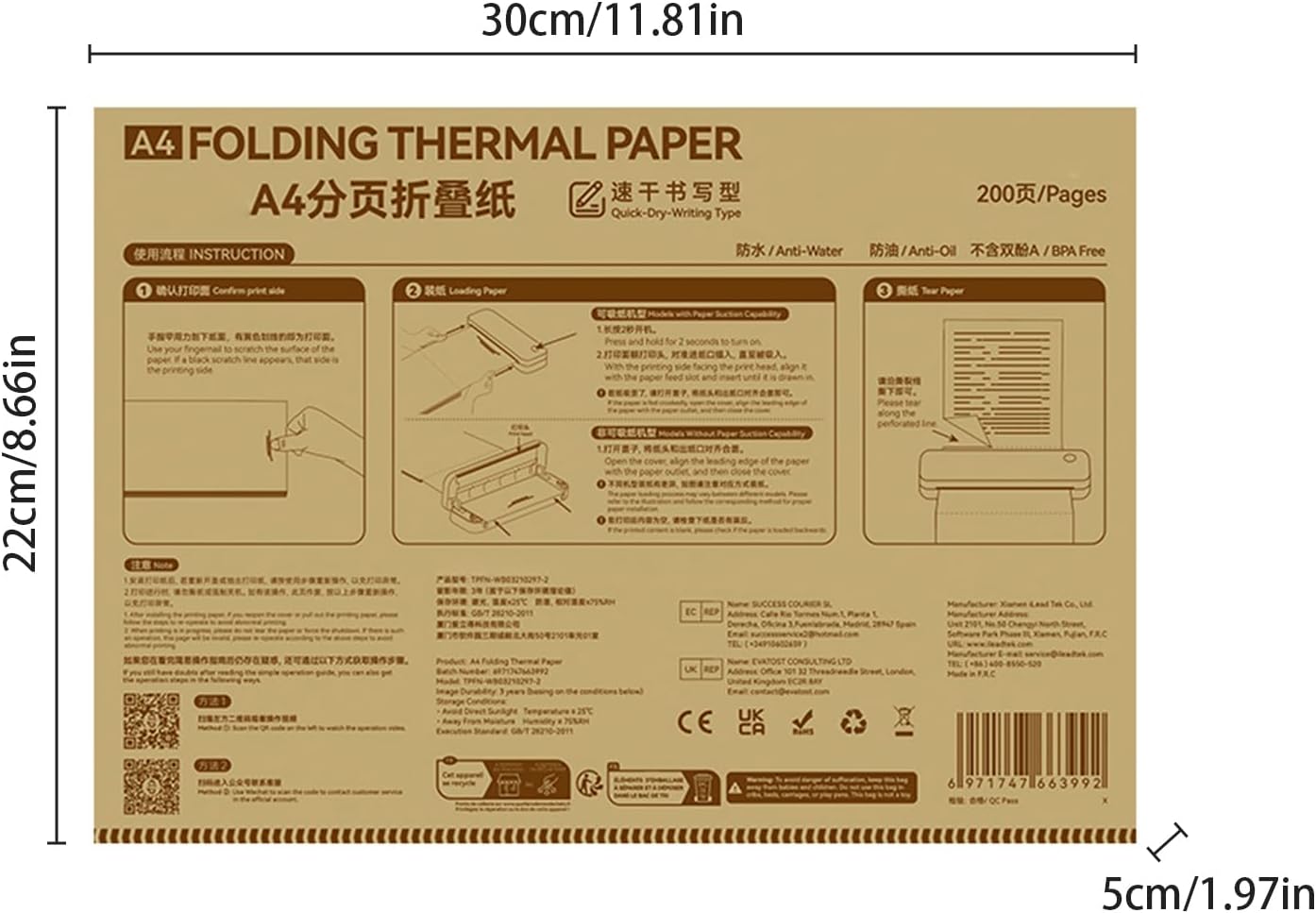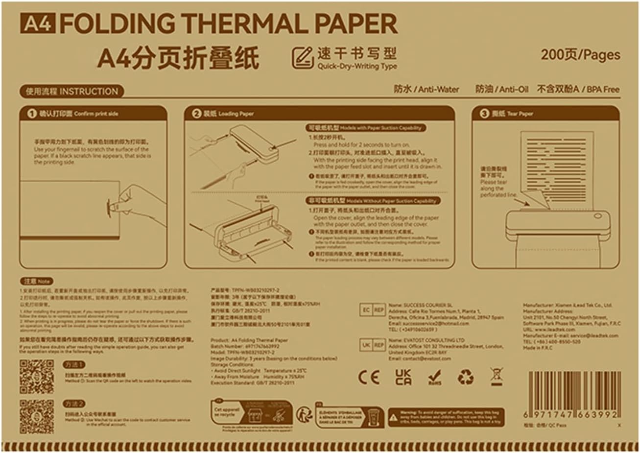 [CARTA TERMICA ECONOMICA] - Stampa fronte-retro continua come alternativa conveniente. [UTILIZZO VERSATILE] - Dalle informazioni per l'ufficio agli appunti di studio, questo documento soddisfa varie esigenze. [RESISTENTE ALL'ACQUA E ALL'OLIO] - Le stampe rimangono chiare e leggibili anche in condizioni difficili. [AMPIA FORNITURA] - Ogni confezione contiene 200 fogli di carta termica A4 per un uso prolungato. [COMPATIBILITÀ] – Funziona perfettamente con le stampanti termiche PeriPage A40 e P81 per stampe di alta qualità.