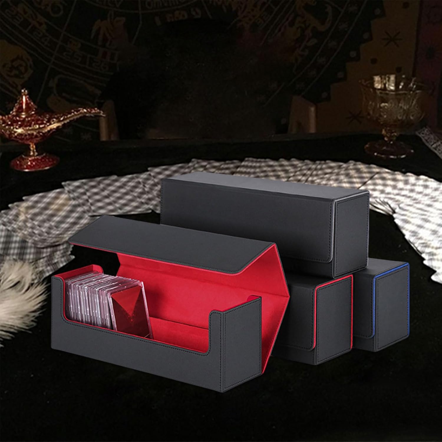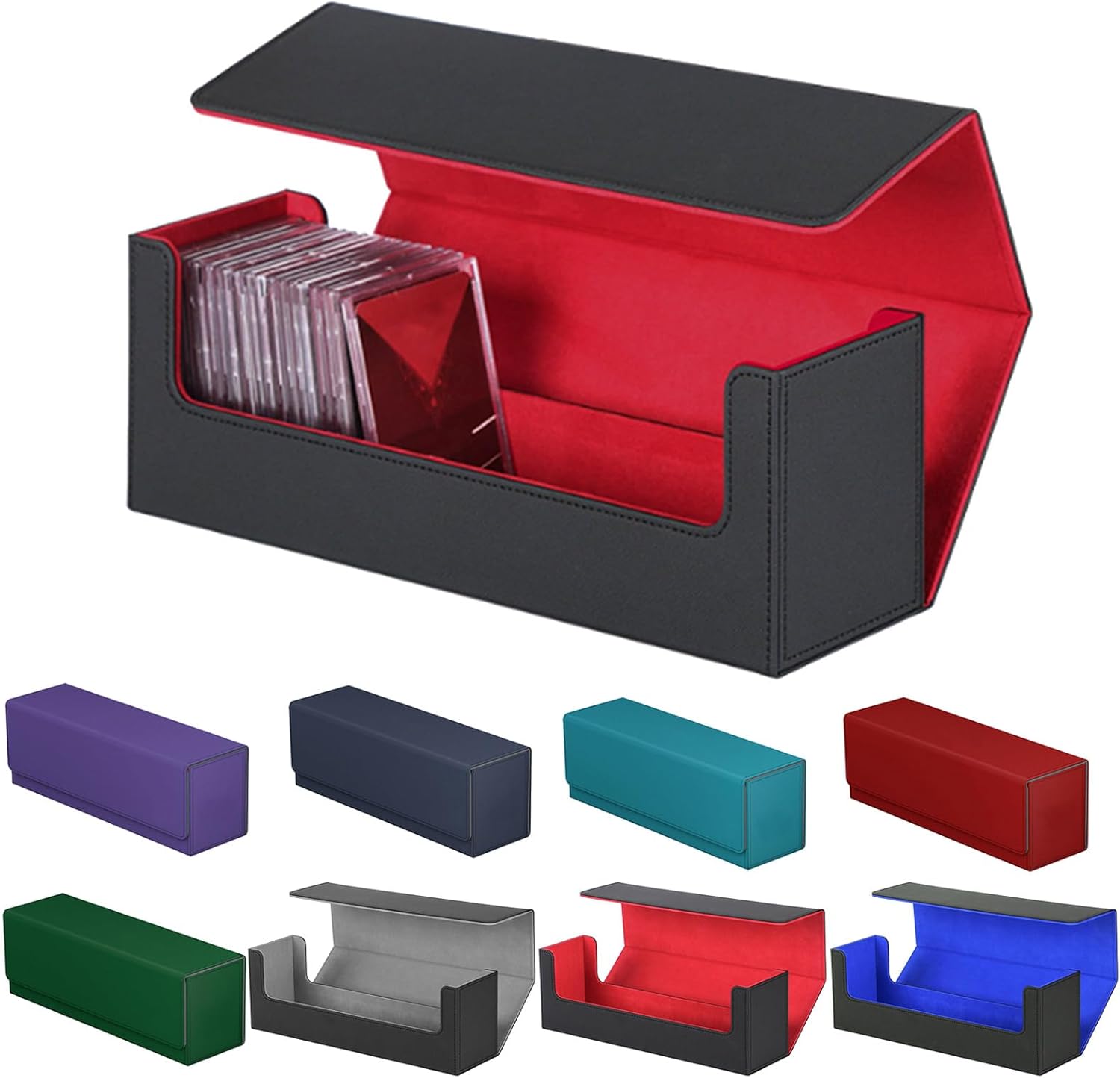 Questa scatola di carte è progettata per giocatori di carte e collezionisti. Dispone di pratiche chiusure e scomparti separati per una facile organizzazione Questa scatola di carte combina funzionalità e stili. E fornisce una soluzione fluida ed efficiente per riporre e proteggere la tua preziosa collezione di carte Realizzato in pelle PU, questa scatola garantisce una lunga protezione temporizzata. Salvaguardare e organizzare le tue carte collezionabili con questa scatola per carte Porta il tuo gioco di carte alla prossima altezza con questo contenitore per carte di credito! Il suo design intuitivo consente un accesso rapido e senza problemi alla carta Che tu stia giocando a casa tua e in movimento, questa scatola di carte è un must per gli appassionati di carte. Può contenere molte carte a maniche singole