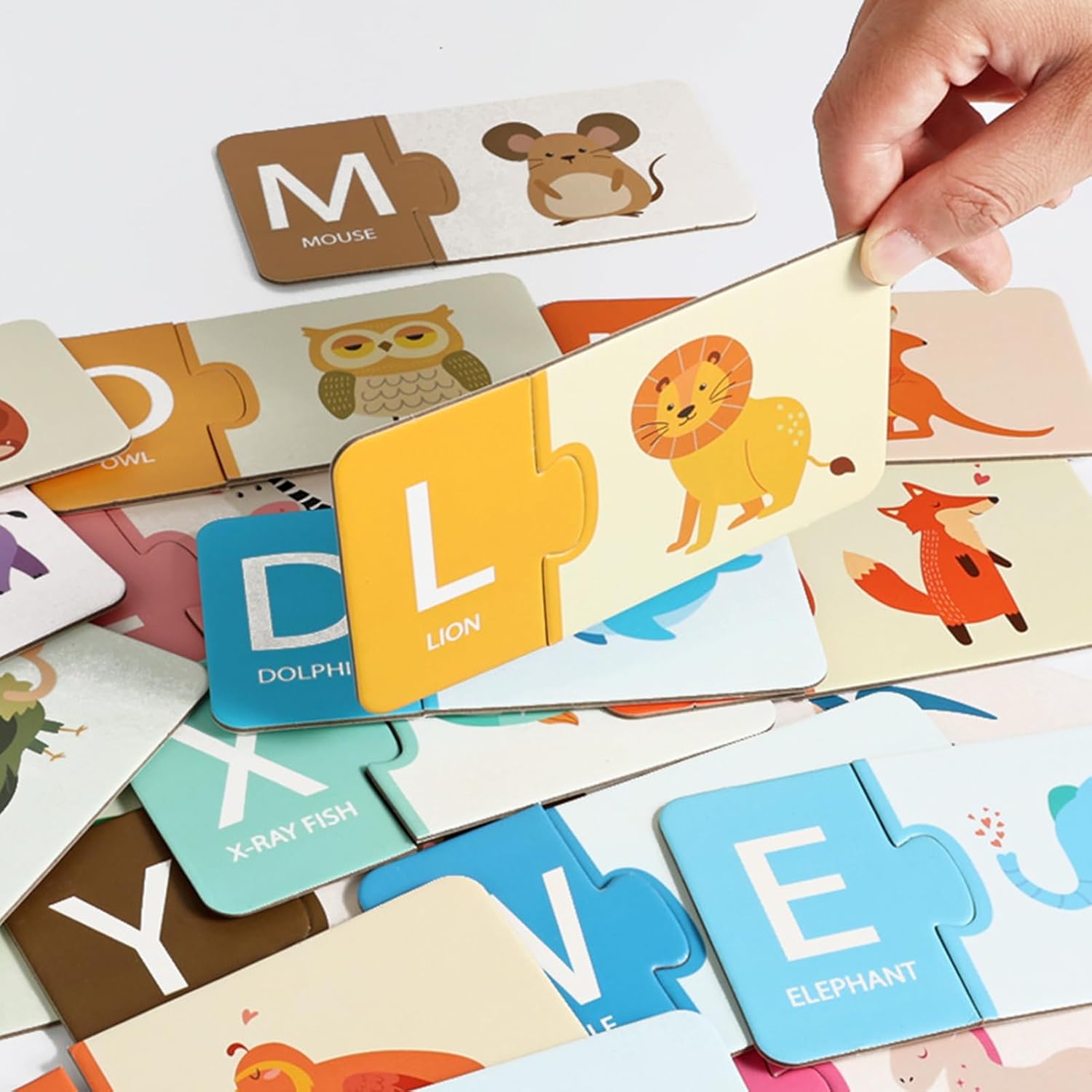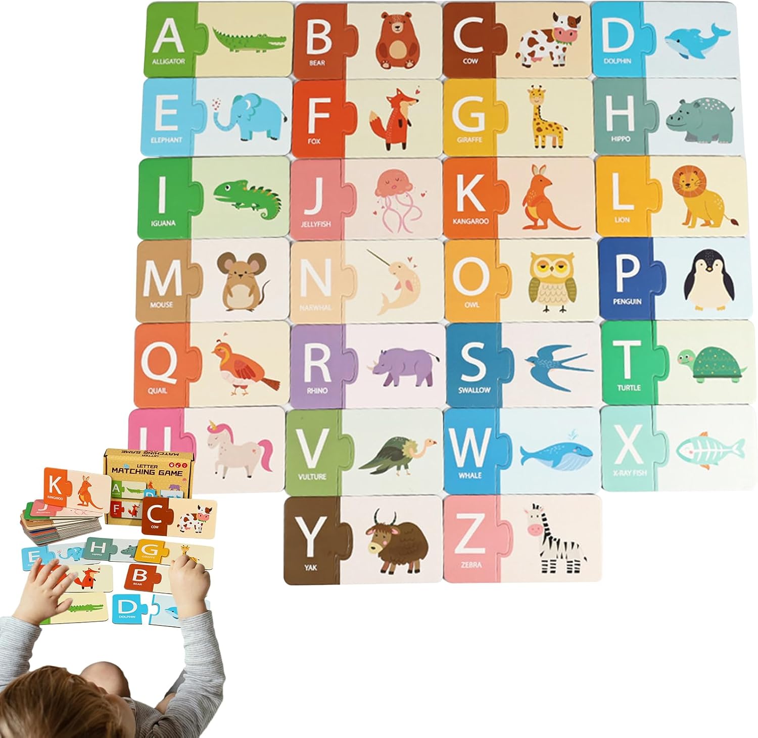Aumenta la coordinazione: questo gioco di abbinamento delle carte allena l'associazione di lettere-numeri e il riconoscimento dei simboli. Promuove la coordinazione occhio-mano attraverso coinvolgenti esercizi visivo-cognitivi per un apprendimento precoce giocoso. Leggero e trasportabile ovunque: facile da trasportare grazie al design leggero e alla scatola portaoggetti integrata. Promuove l'apprendimento giocoso all'interno e all'esterno ovunque. Carte adatte ai giocattoli: il materiale in cartone extra spesso e il design a misura di bambino consentono un gioco frequente, i bordi lisci del manico e gli angoli arrotondati si adattano perfettamente alle mani dei più piccoli. Design adatto all'età: struttura che promuove lo sviluppo per bambini da 1,5 a 6 anni attraverso il gioco interattivo, supporta il naturale progresso cognitivo con passaggi di apprendimento graduati con precisione. Doppia scelta di argomenti: offre due opzioni di apprendimento con lettere o numeri per supportare processi di apprendimento attivi, promuove la lettura di base e l'aritmetica e una migliore comprensione cognitiva attraverso esperienze ludiche