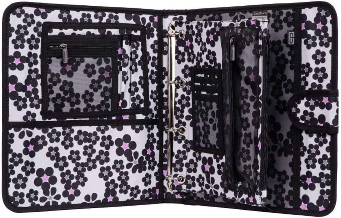 Cartella Mate Cruell Coolpack Quattro anelli e uno separato in tessuto con una grande tasca A4. Organizer interno realizzato in tessuto a rete per poter riporre piccoli accessori di scrittura Dimensioni: 33x29,5x4,5 cm