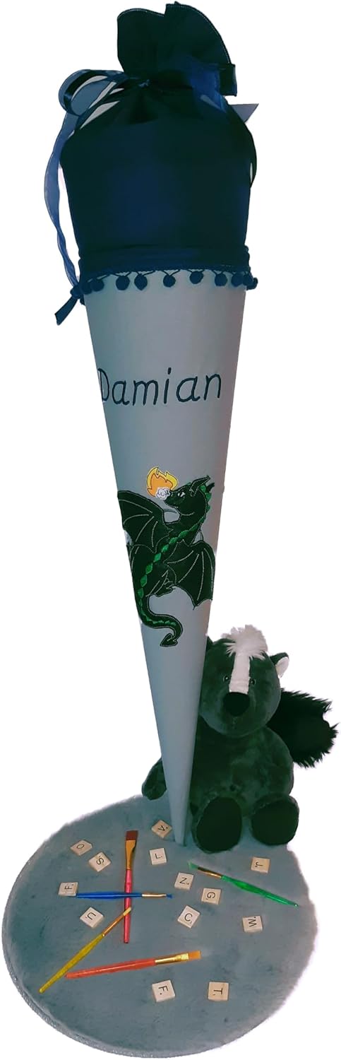 Un bellissimo cono scolastico per il primo giorno di scuola del tuo bambino. I nostri coni scolastici personalizzati non sono solo un fantastico regalo, ma anche un prezioso ricordo per gli anni a venire. Ogni cono scolastico è realizzato a mano. Sul cono della scuola potete far ricamare il nome del vostro bambino e/o la scritta "Schulkind 2024". Questo lo rende un compagno unico nel percorso verso la scuola. Dopo l'inizio della scuola, il cartoncino può essere semplicemente rimosso e sostituito con un apposito "cuscino a cono scolastico". Questi cuscini sono disponibili anche da noi e hanno la stessa qualità del cono scolastico stesso e degli altri nostri cuscini. Questo cuscino è un'ottima decorazione e un meraviglioso eye-catcher anche dopo l'inizio della scuola. La decorazione utilizzata in alcune immagini è solo a scopo di presentazione e non fa parte dell'offerta. Vengono utilizzati materiali di alta qualità (ad esempio tessuti della Westfalia, filati di Madeira, ecc.). Ogni cono scolastico contiene un foglio di cartone standard che garantisce la stabilità necessaria. Il pezzo grezzo misura 70 cm. Abbiamo una vasta selezione di design e colori nel nostro negozio, quindi ce n'è per tutti i gusti. Non importa se si tratta di una principessa, una ballerina, un unicorno, animali o veicoli: abbiamo lo zaino giusto per ogni piccolo avventuriero.